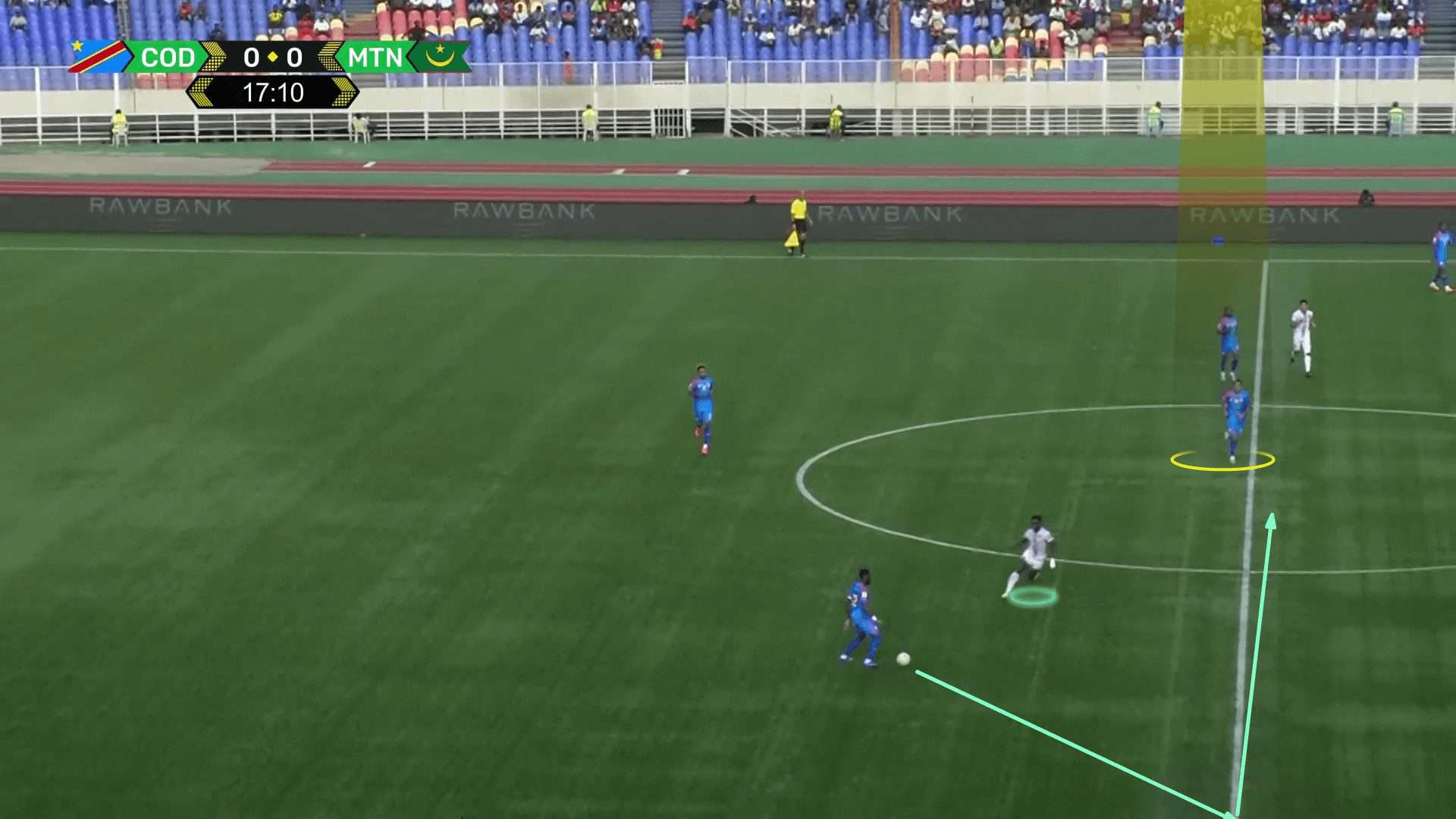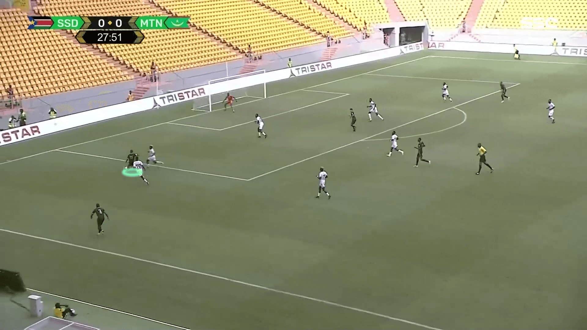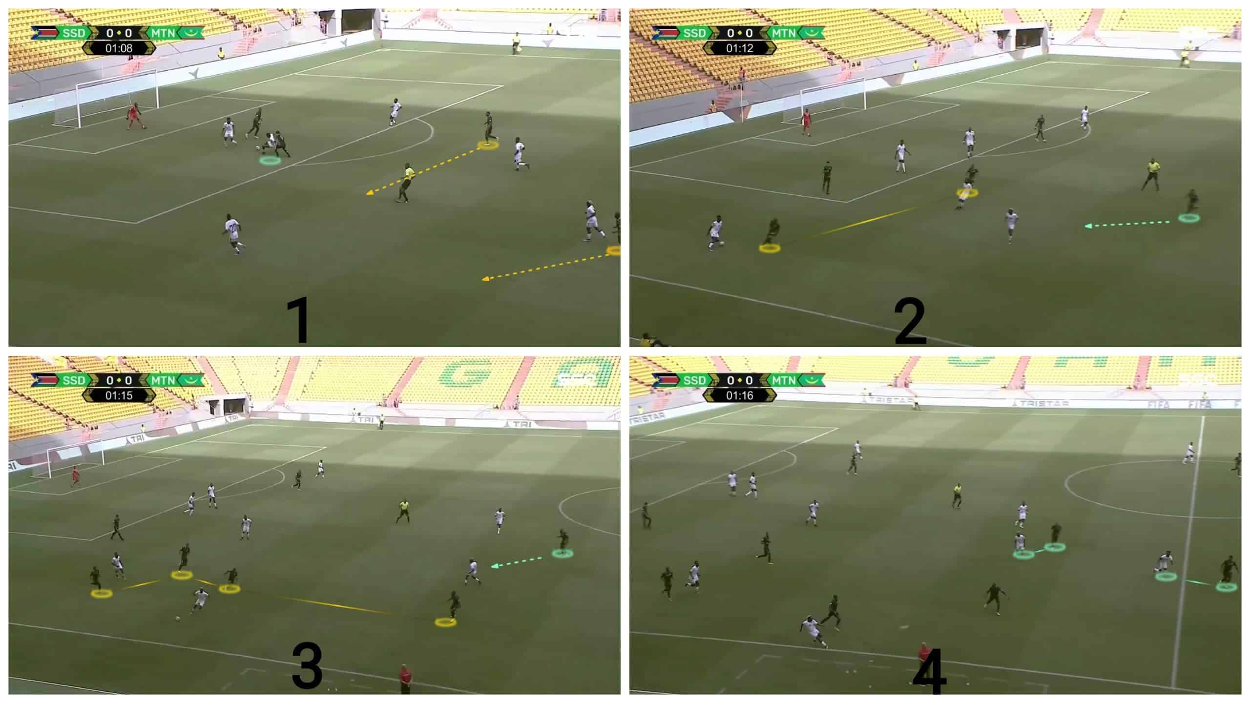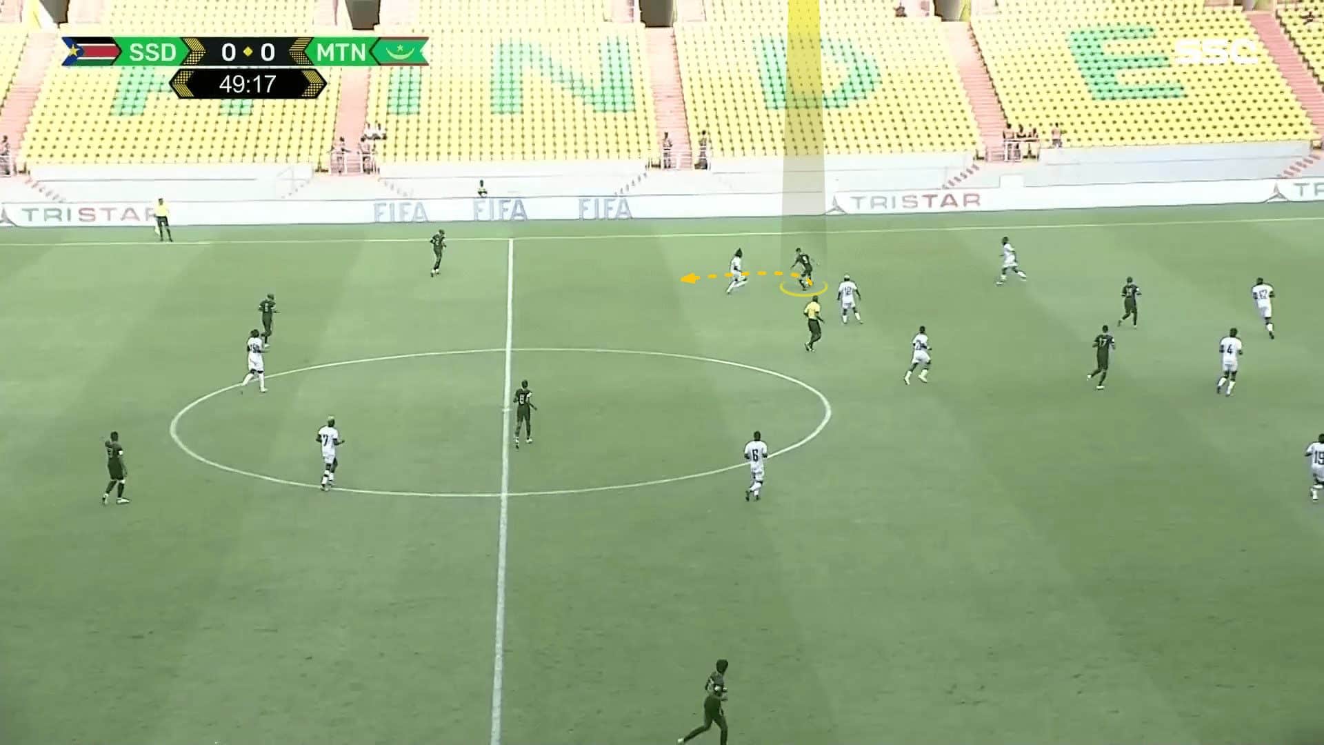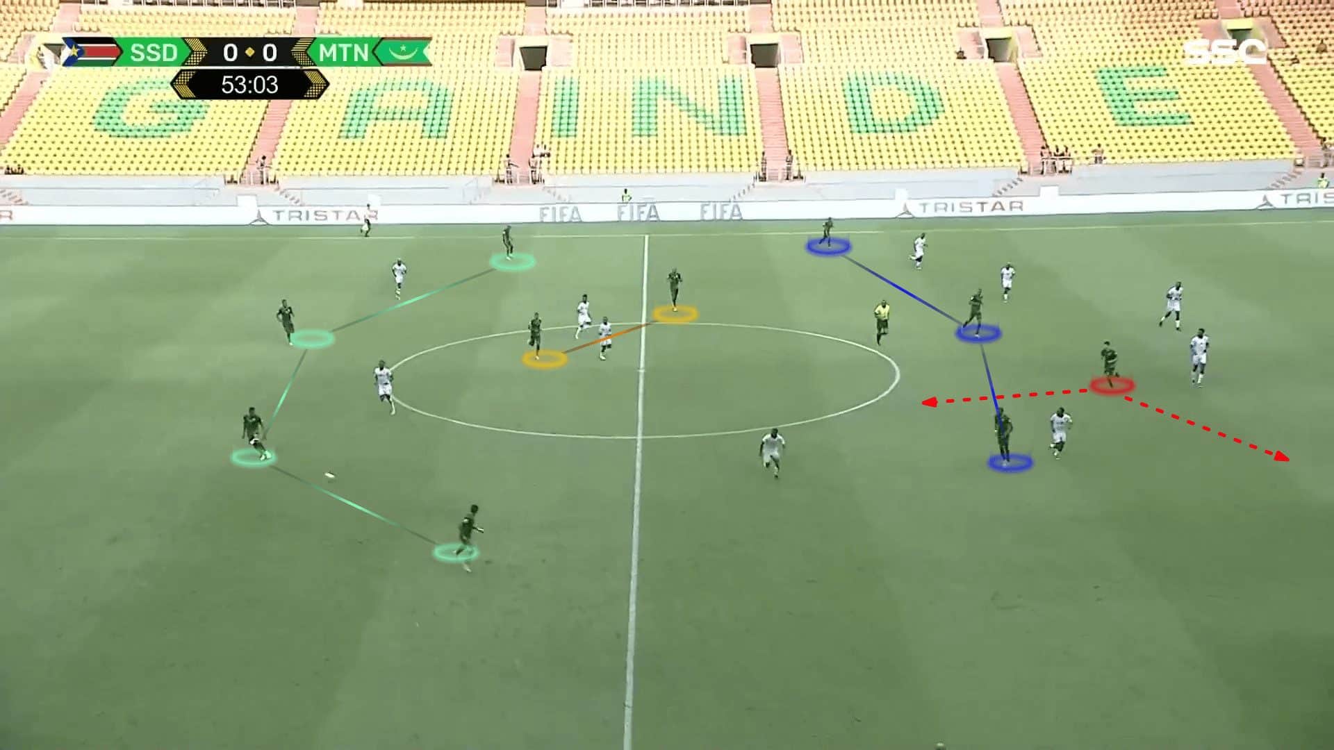 The opponent’s midfielder dragged him widely while the far attacking wing joins number 10 in a 2-v-1 position against the Mauritanian midfielder. The Mauritanian right winger, who should help in the middle, is still far.