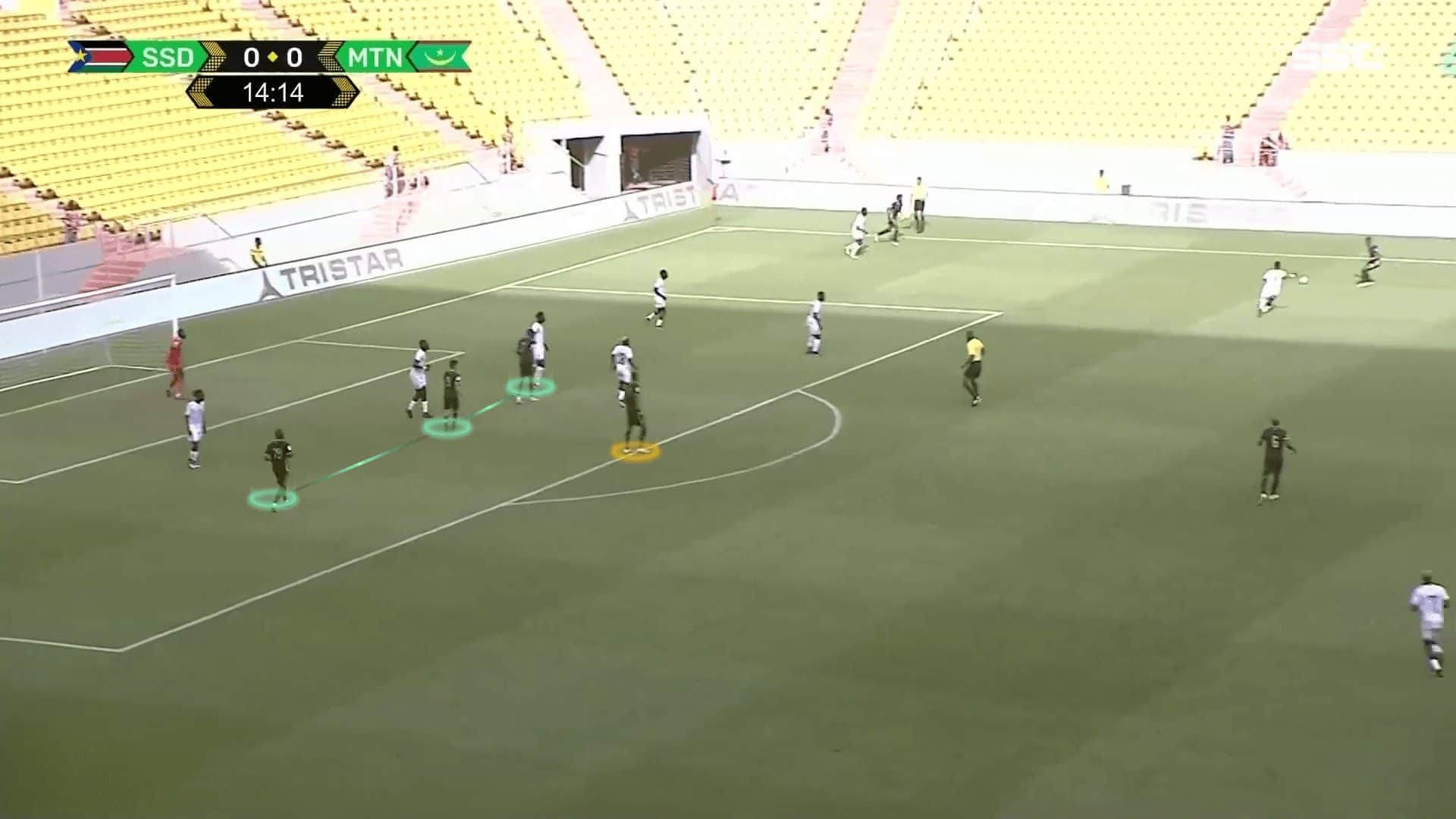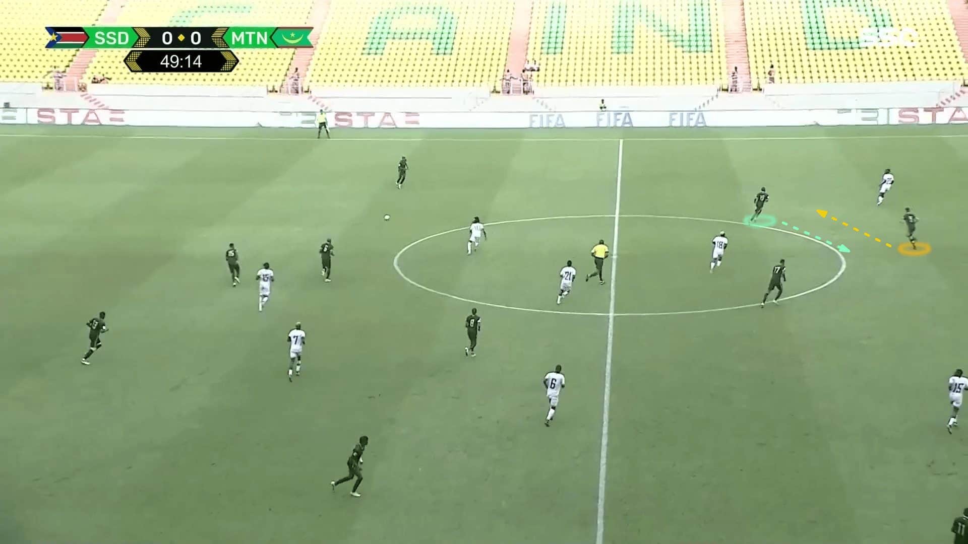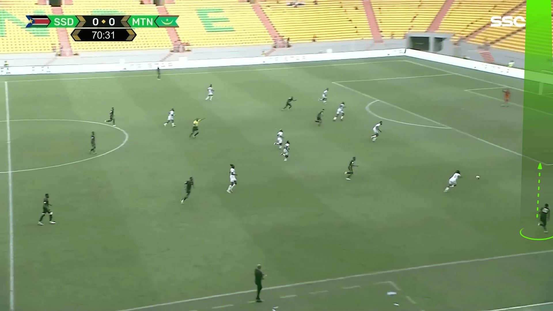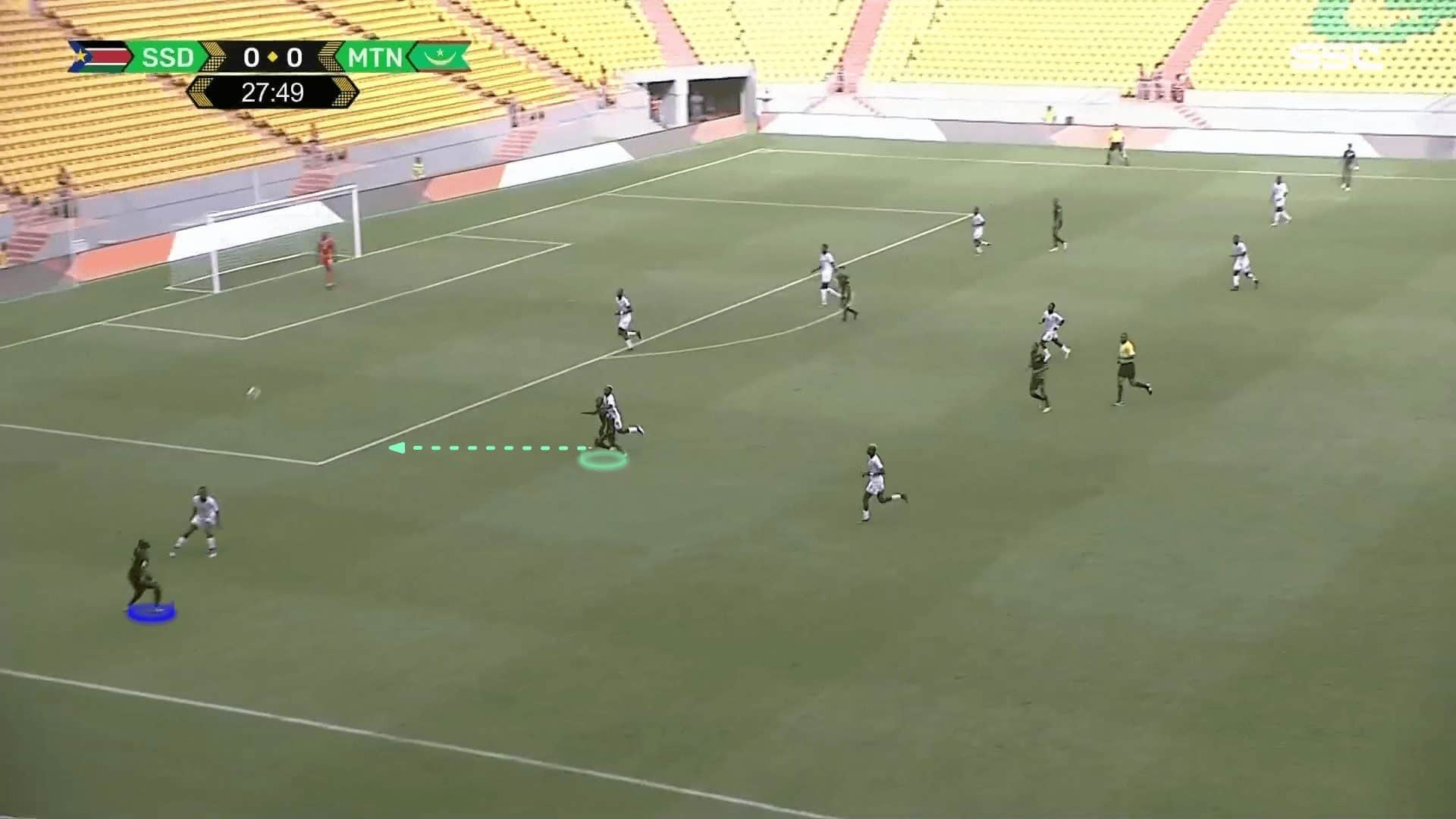 The opponent’s midfielder dragged him widely while the far attacking wing joins number 10 in a 2-v-1 position against the Mauritanian midfielder. The Mauritanian right winger, who should help in the middle, is still far.