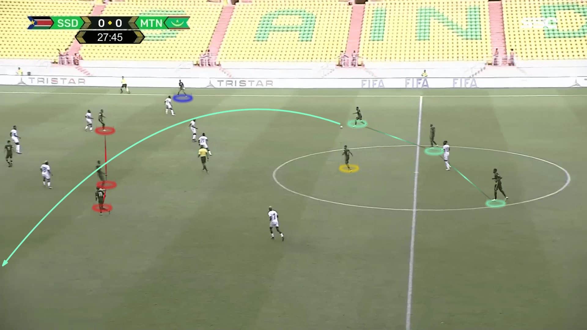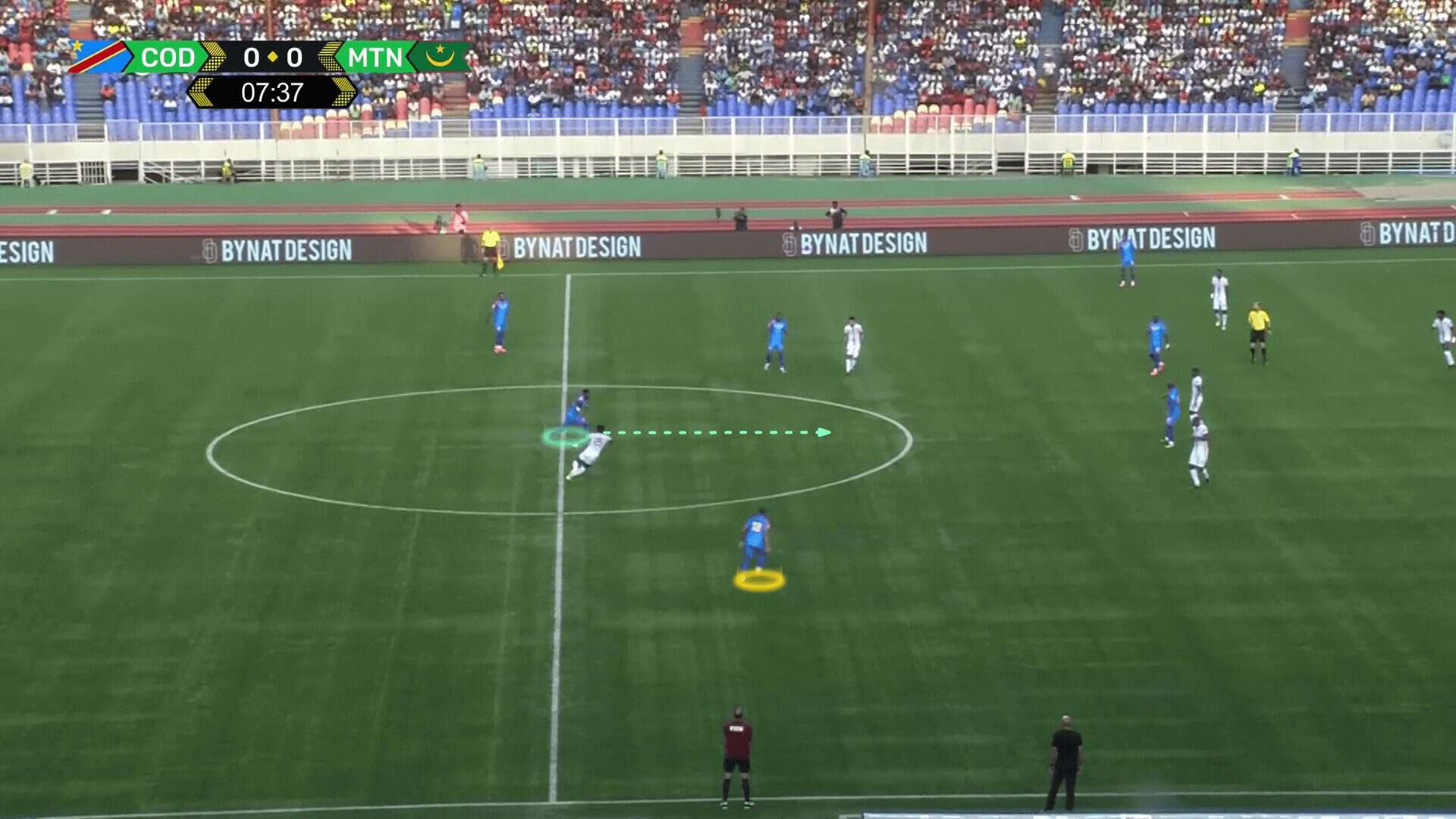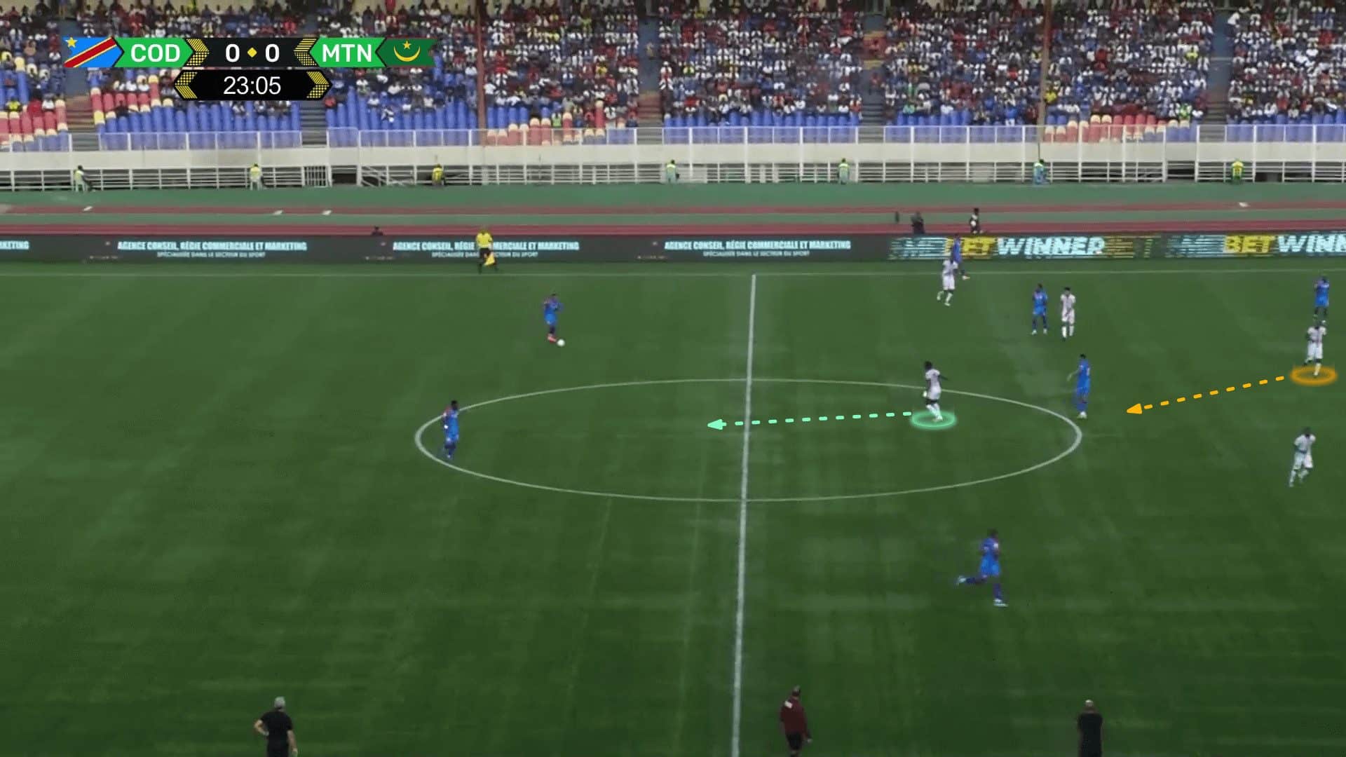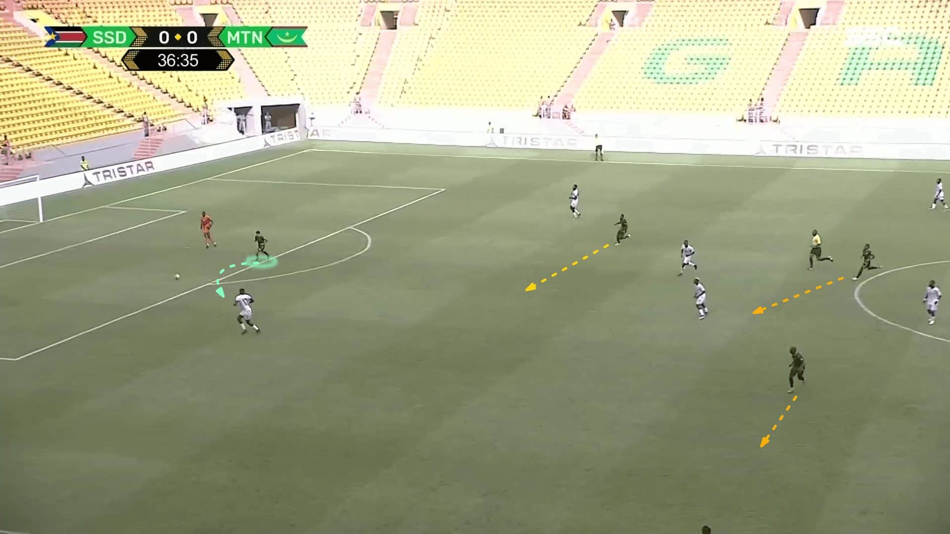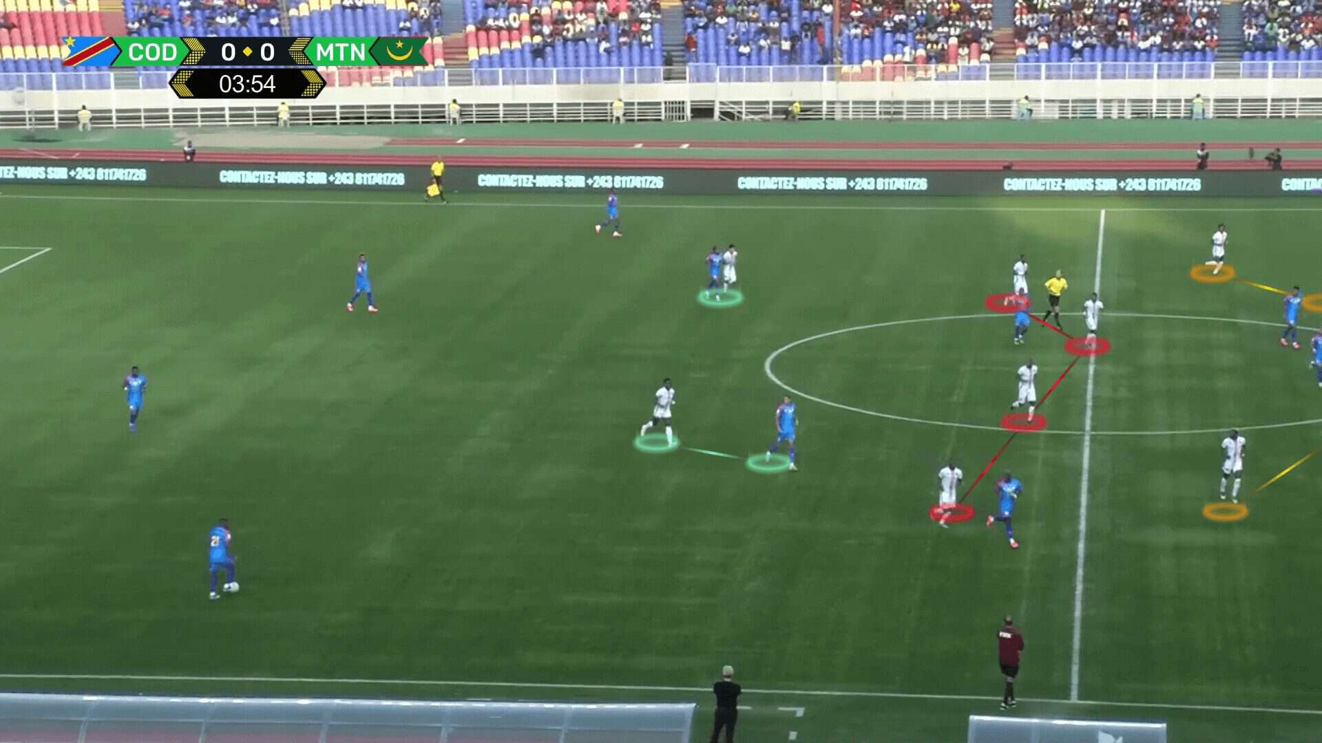 The opponent’s midfielder dragged him widely while the far attacking wing joins number 10 in a 2-v-1 position against the Mauritanian midfielder. The Mauritanian right winger, who should help in the middle, is still far.