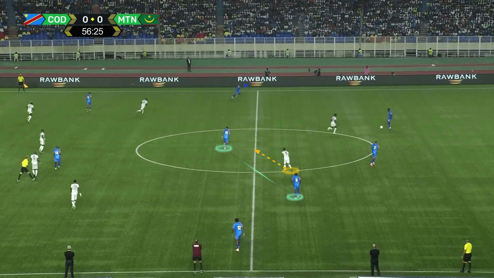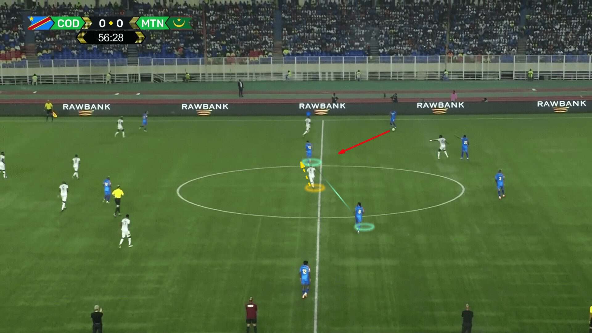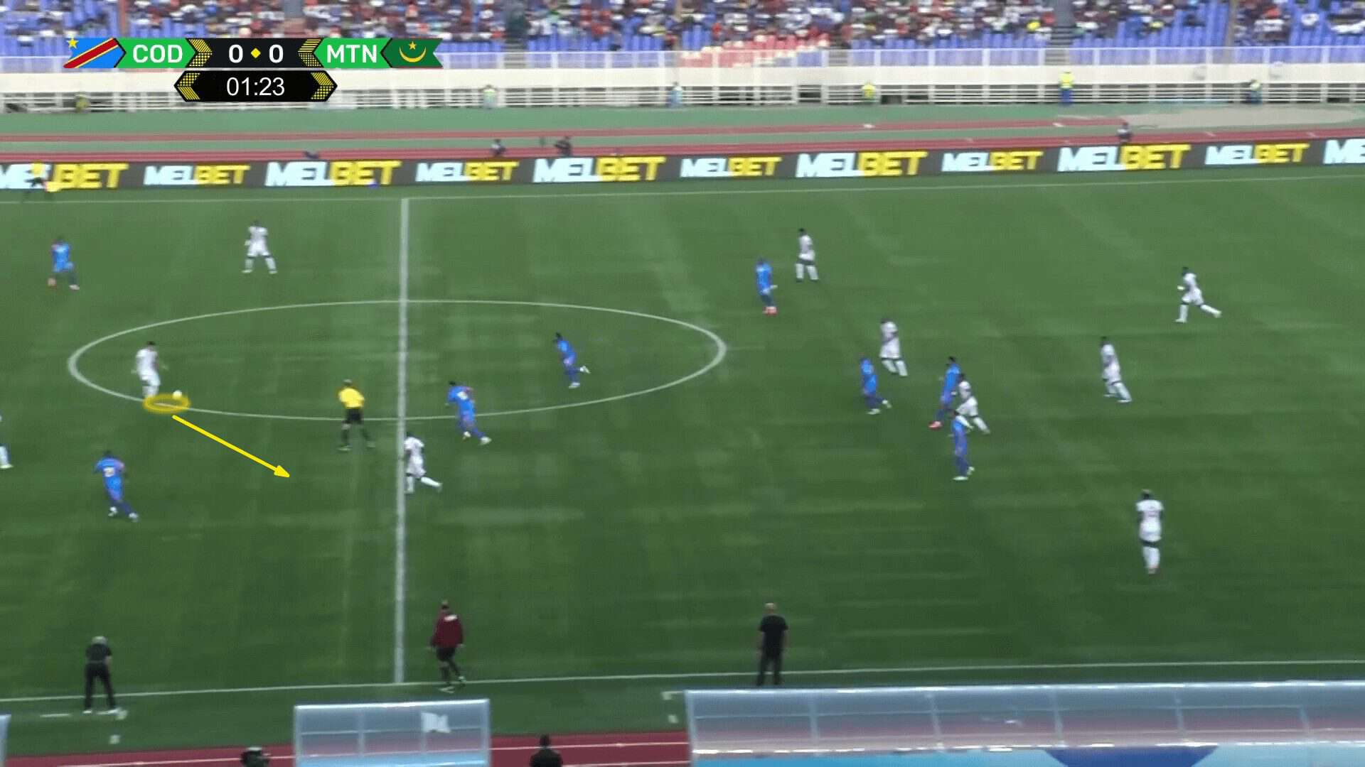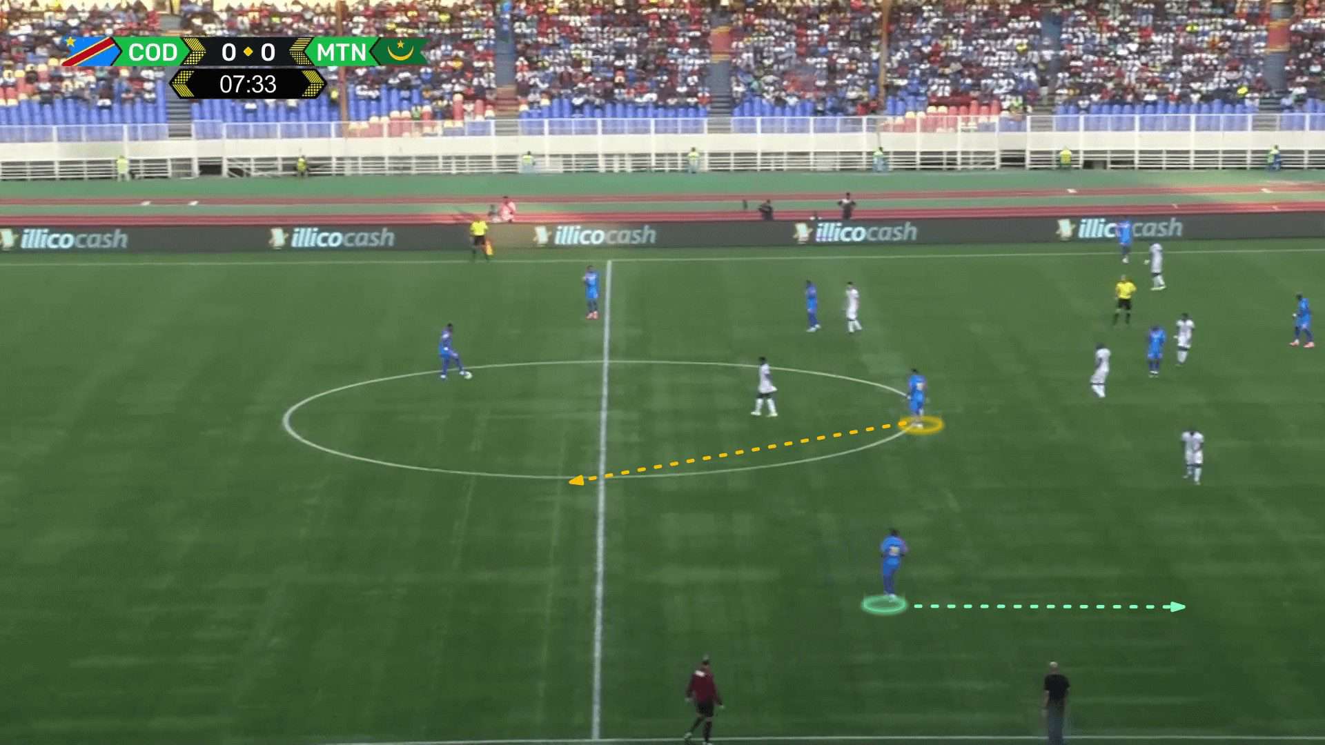 The opponent’s midfielder dragged him widely while the far attacking wing joins number 10 in a 2-v-1 position against the Mauritanian midfielder. The Mauritanian right winger, who should help in the middle, is still far.
