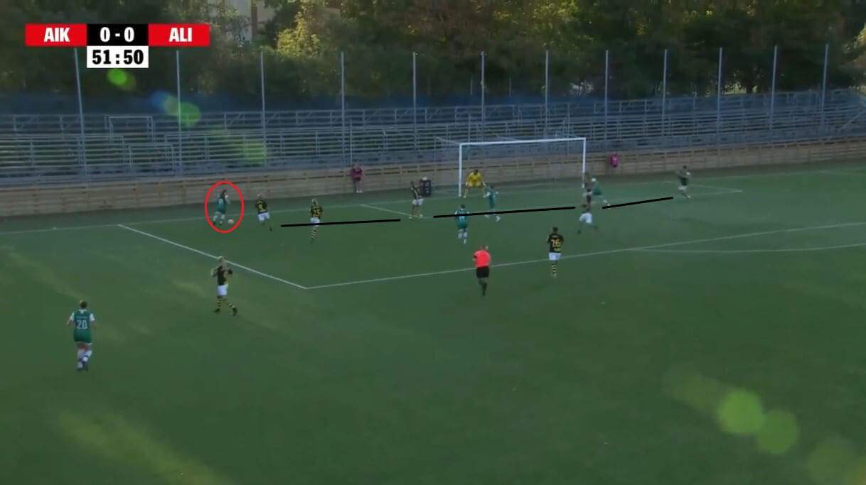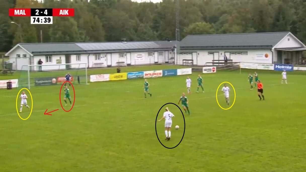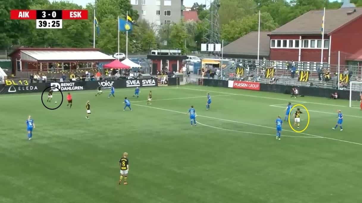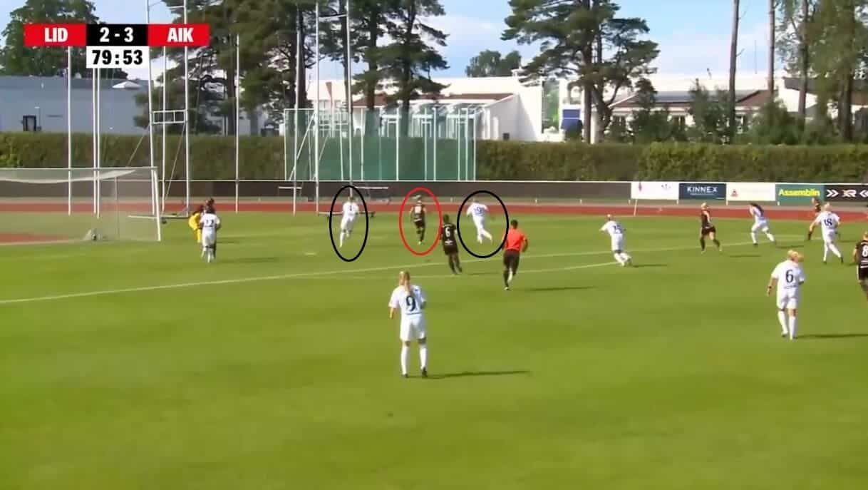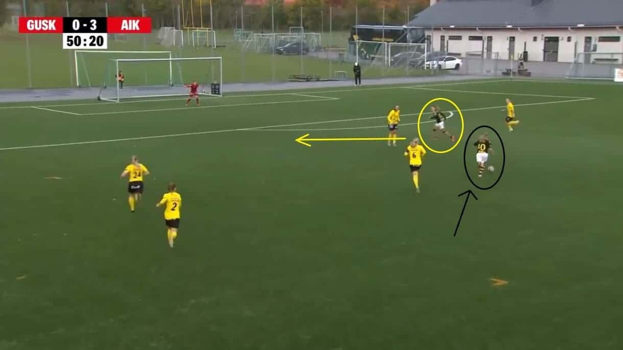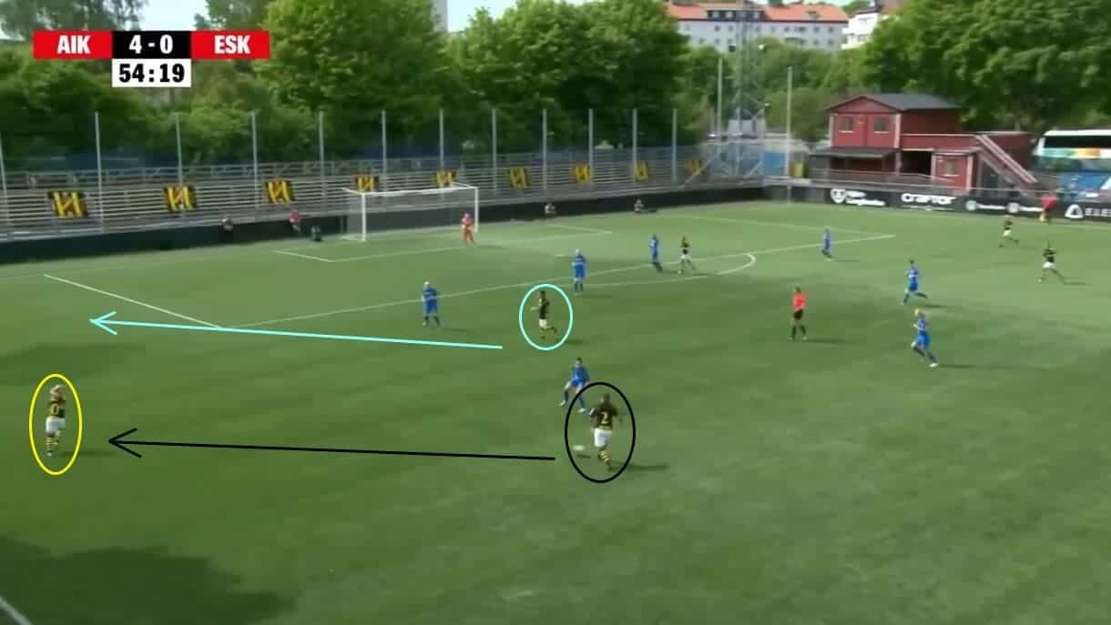 In this case, she does do as expected, with the ball travelling towards Nildén, and it pays dividends for AIK as they are able to draw Linnéa Berger out of position and to create additional space for them to move the ball into the middle from.