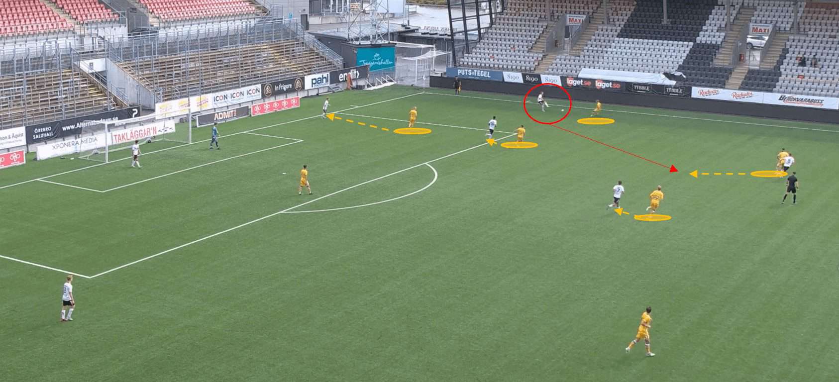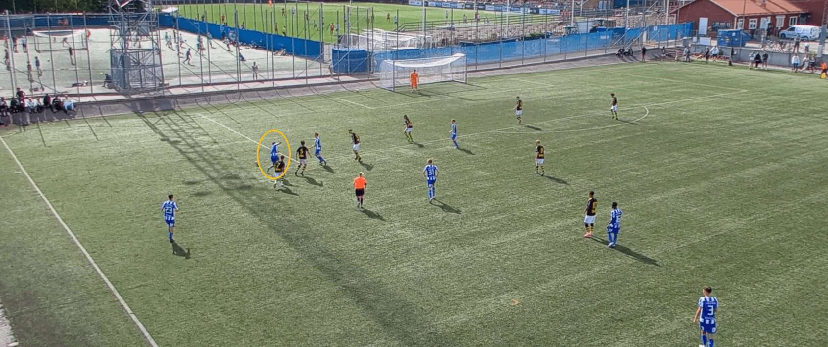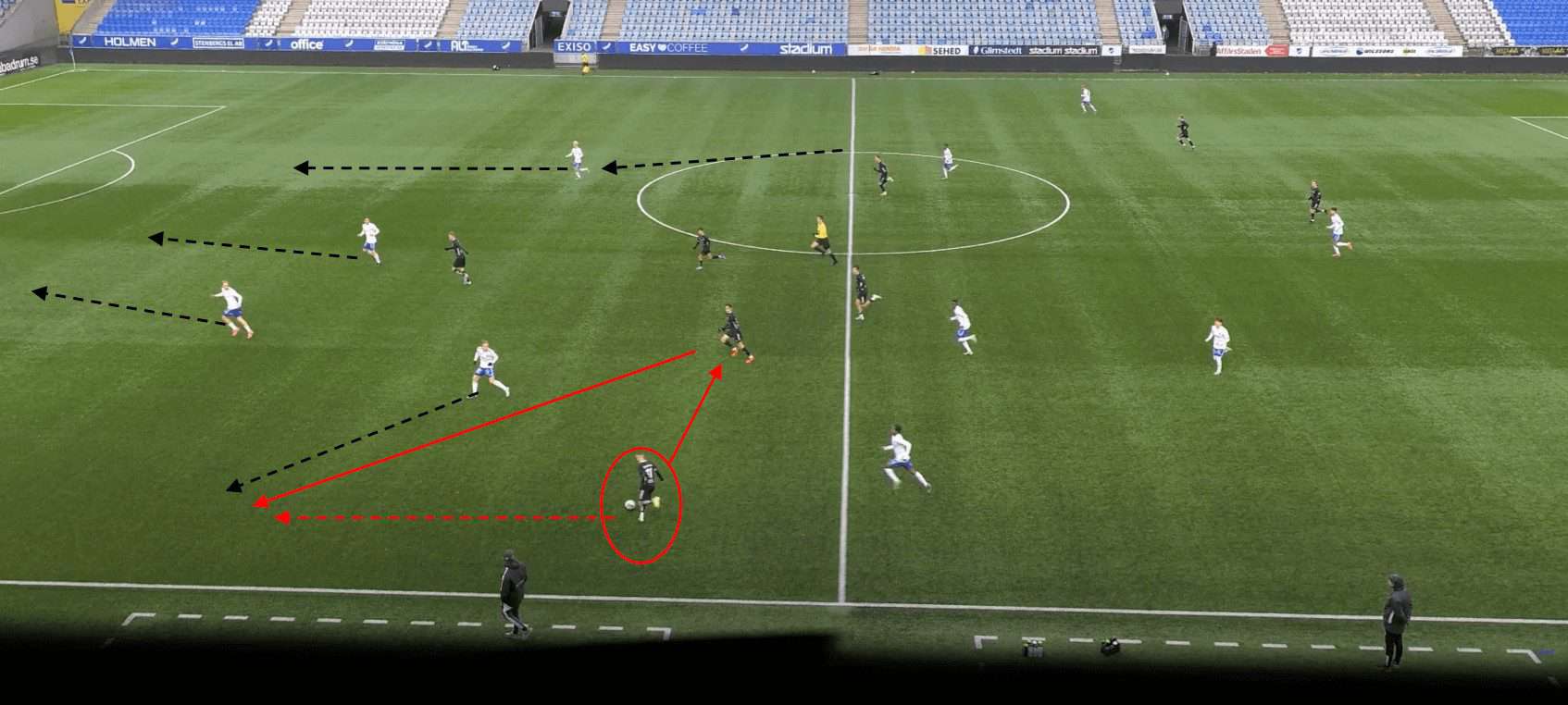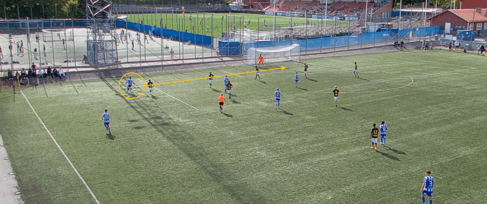 This proves to be incredibly fruitful as, with no open passing lanes, the opposition full-back hits a rather hopeful pass into space which is promptly picked up by a Göteborg player.