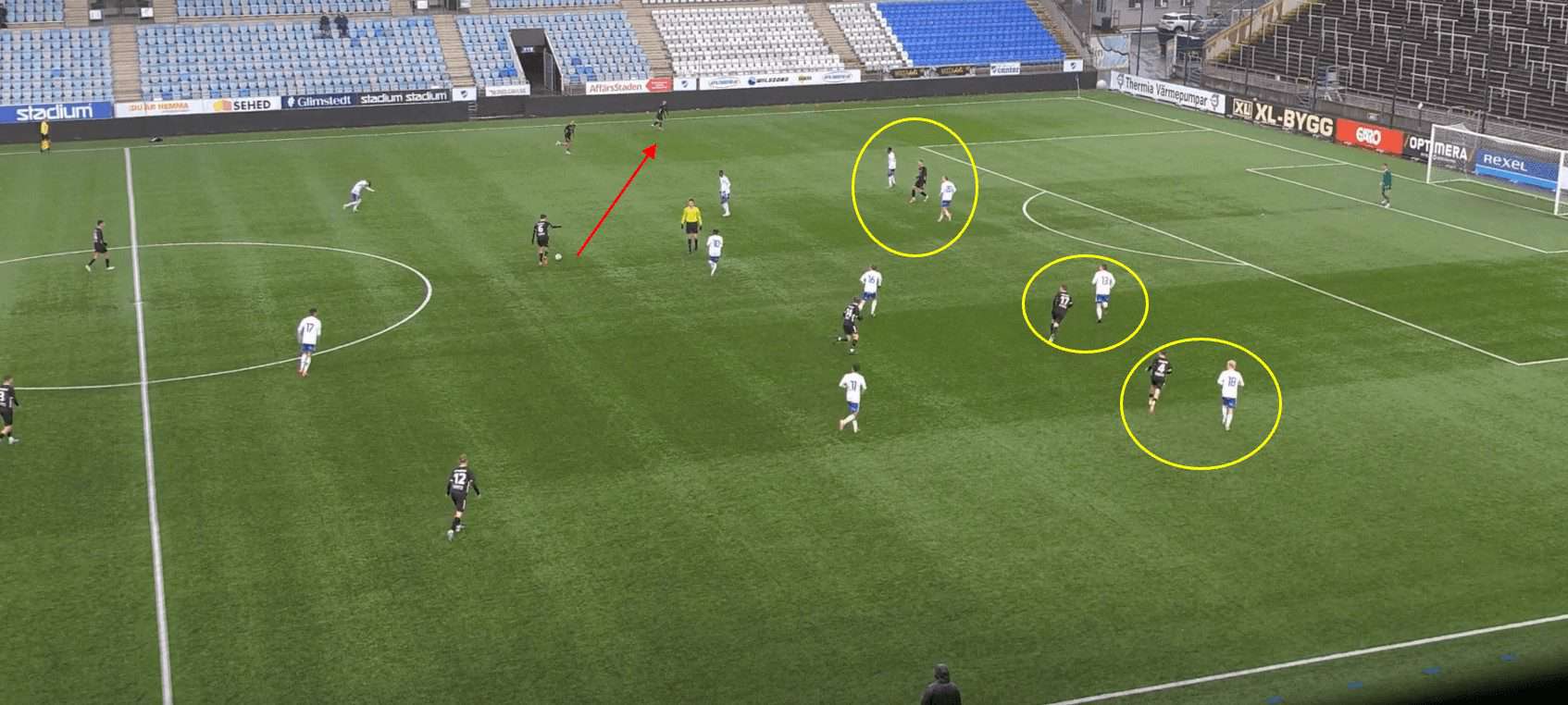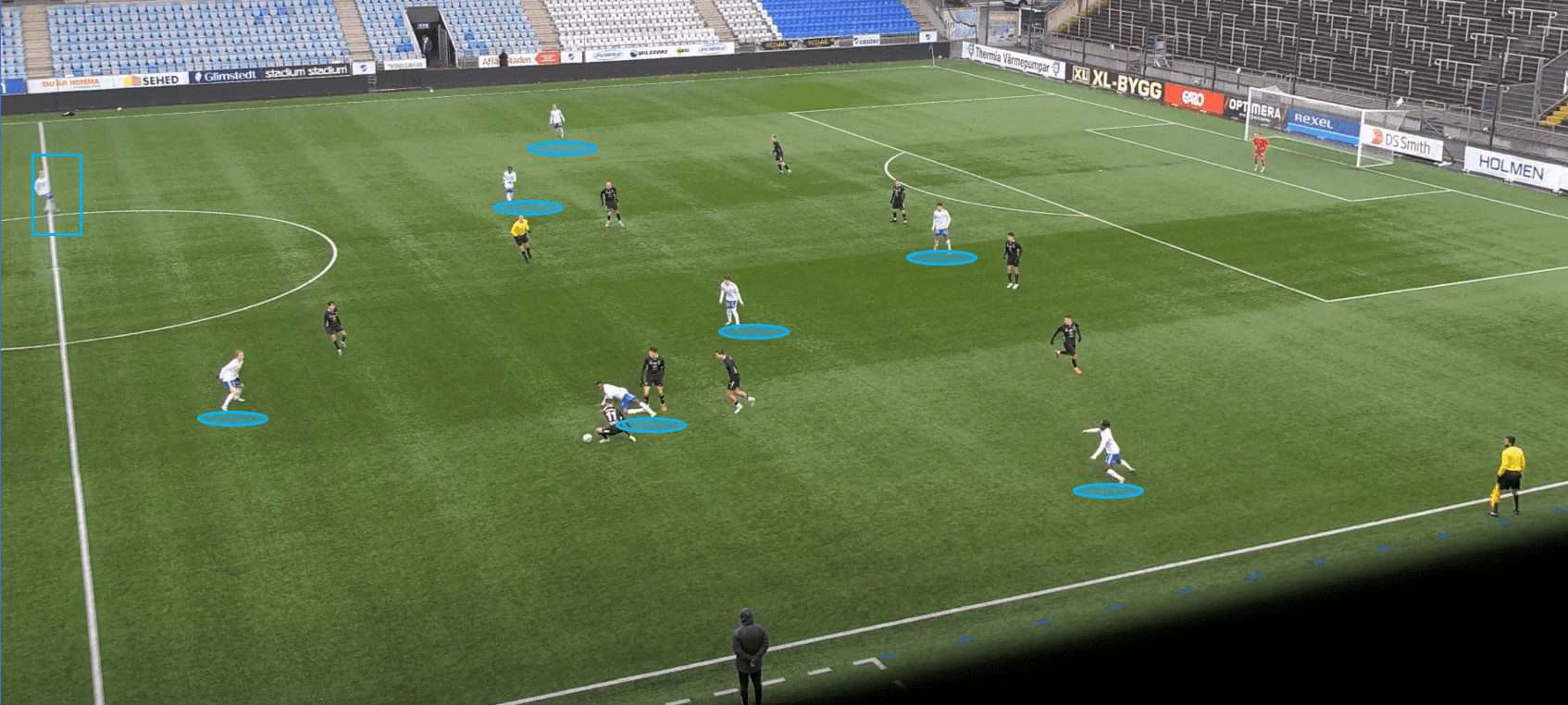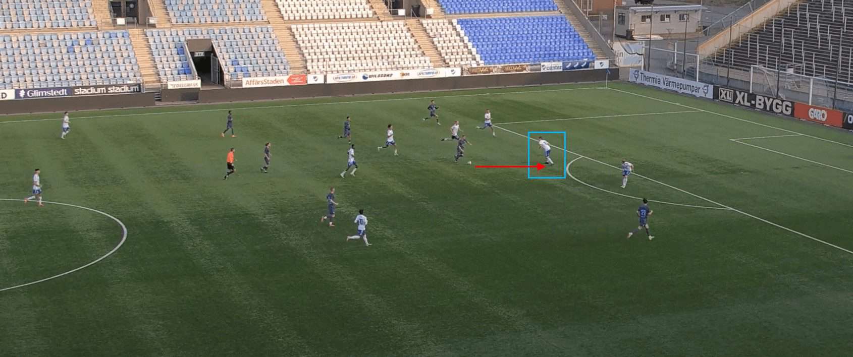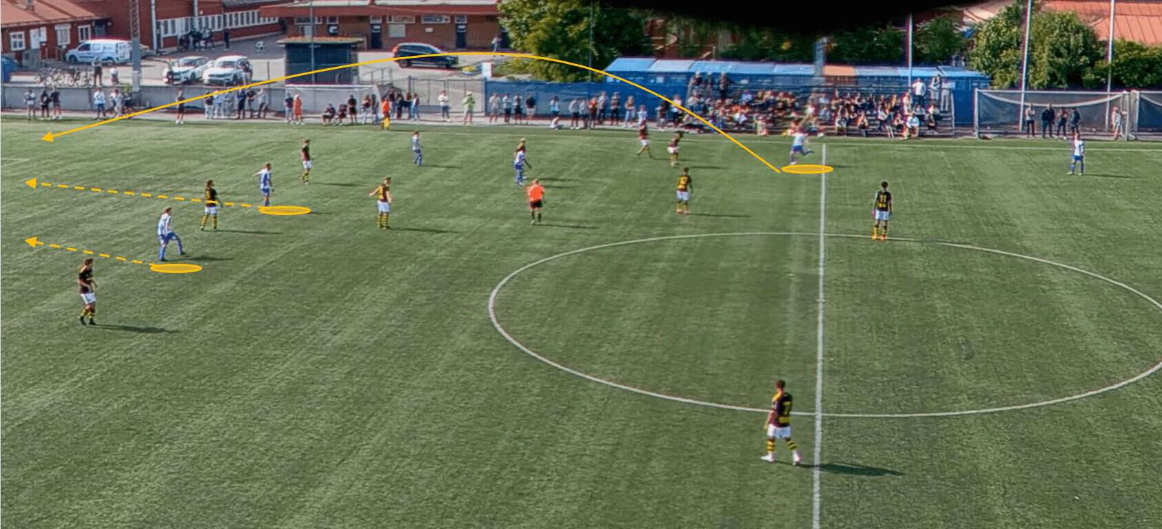 This proves to be incredibly fruitful as, with no open passing lanes, the opposition full-back hits a rather hopeful pass into space which is promptly picked up by a Göteborg player.