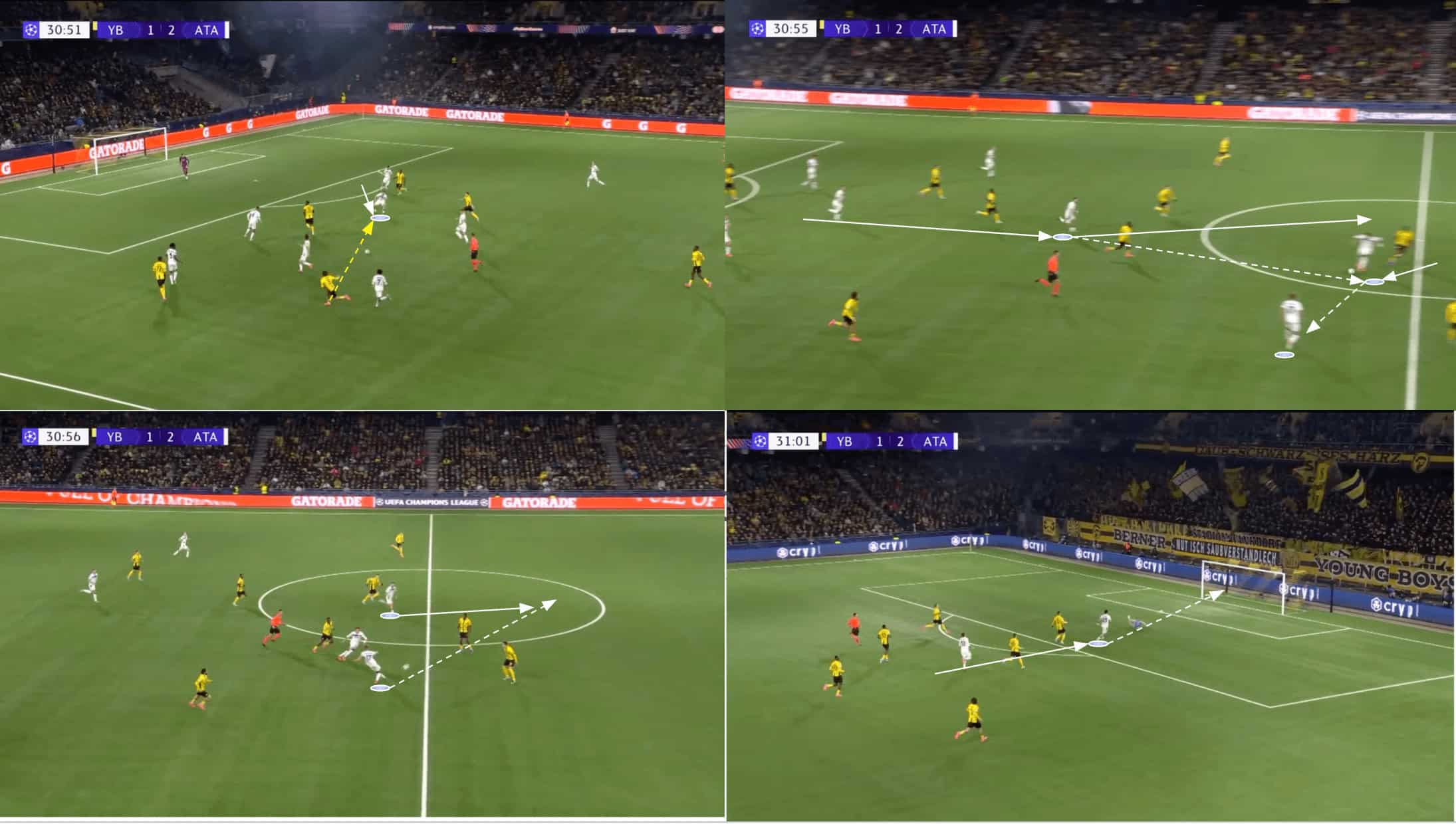 The passage of play above shows a great example of Atalanta counterattacking Young Boys in the Champions League.