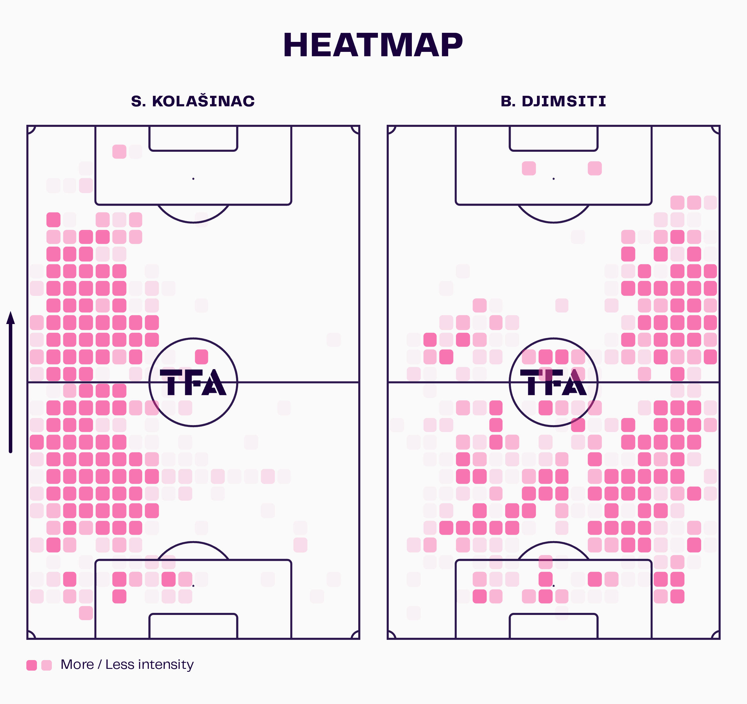 Still, their respective heat maps find both players spending a significant amount of time inside the opposition’s half.