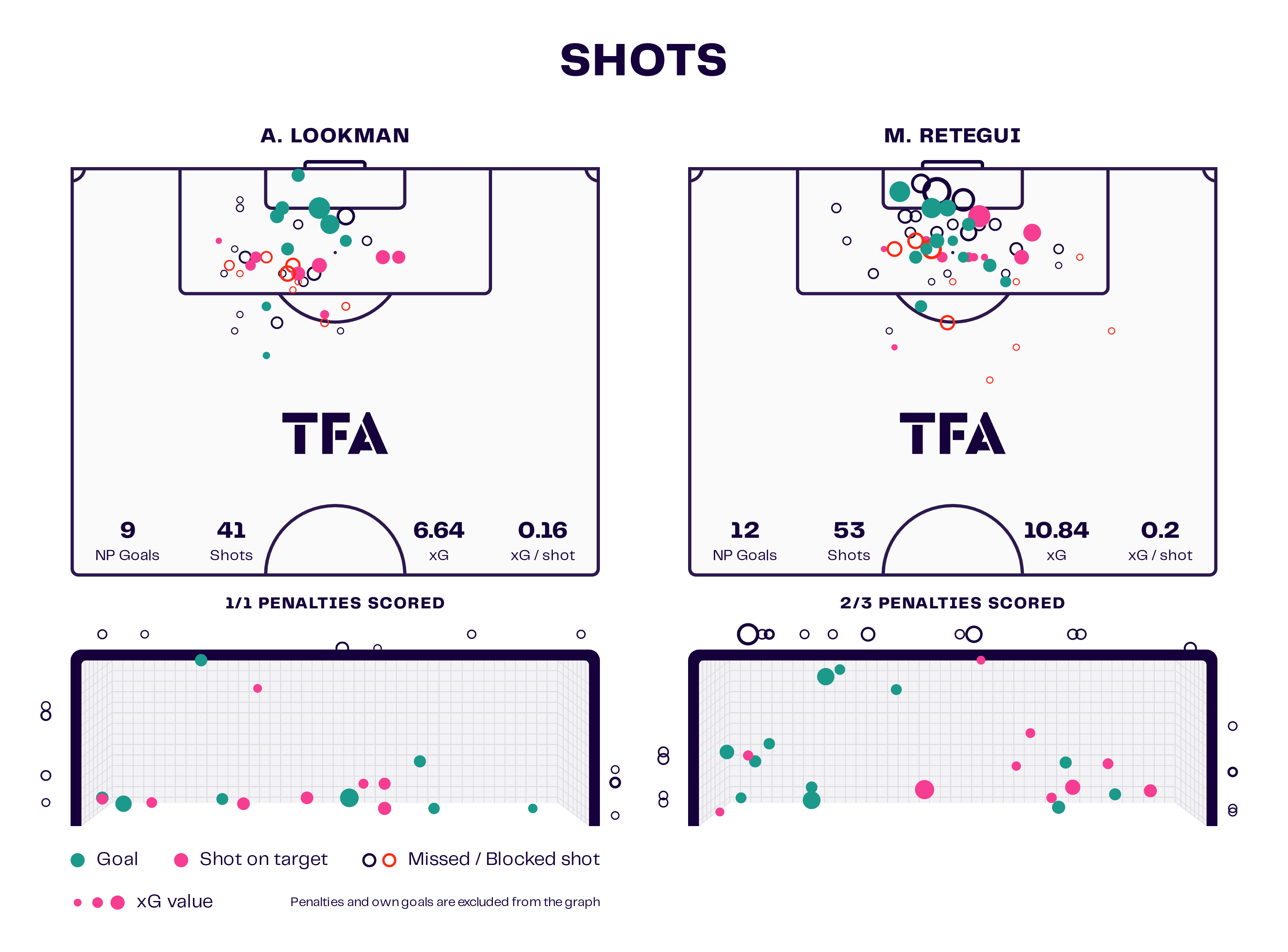 Ademola Lookman & Mateo Retegui Shot Map 2024/25