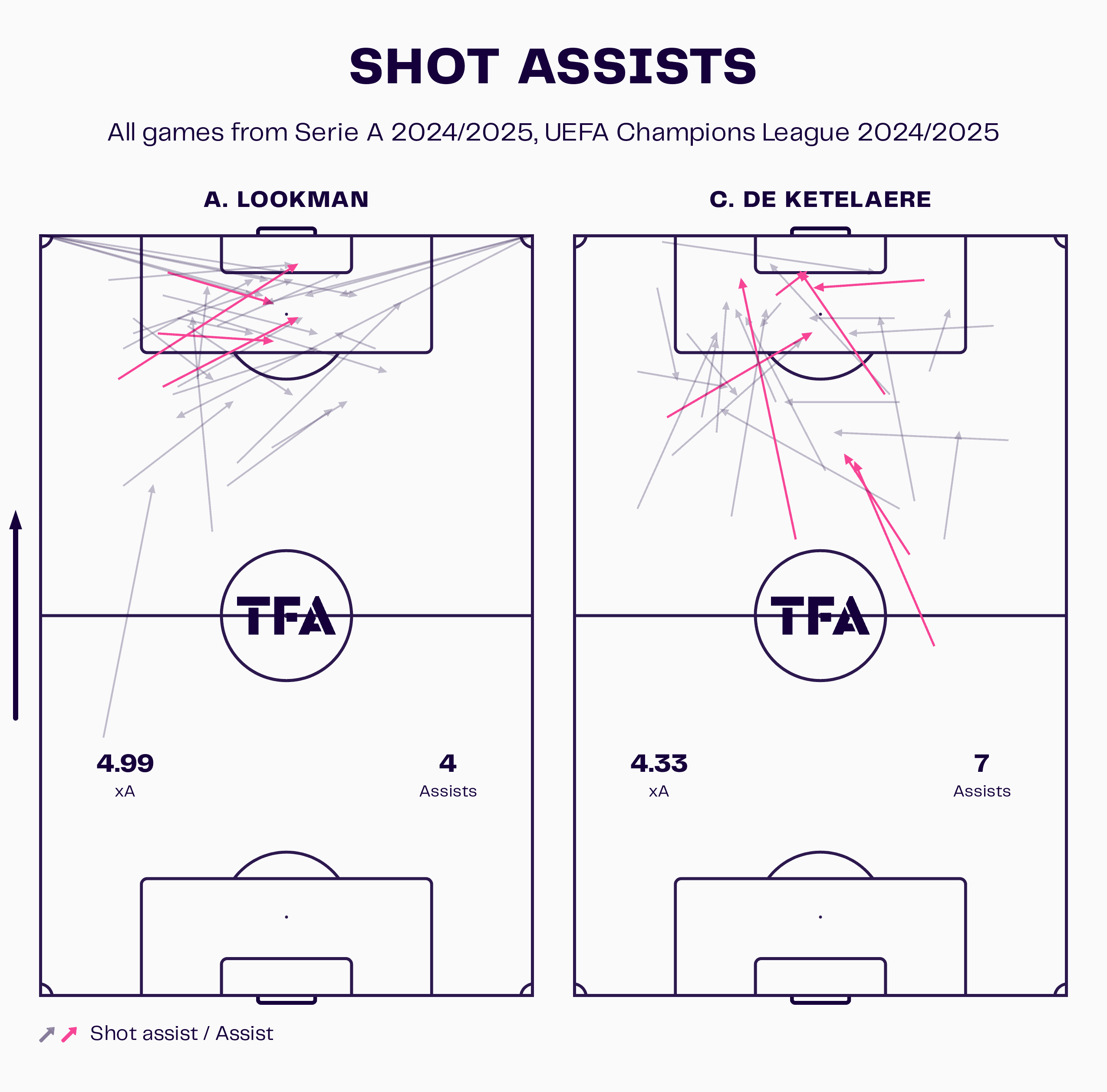 Ademola Lookman & Charles De Ketelaere Shot Assists Map 2024/25