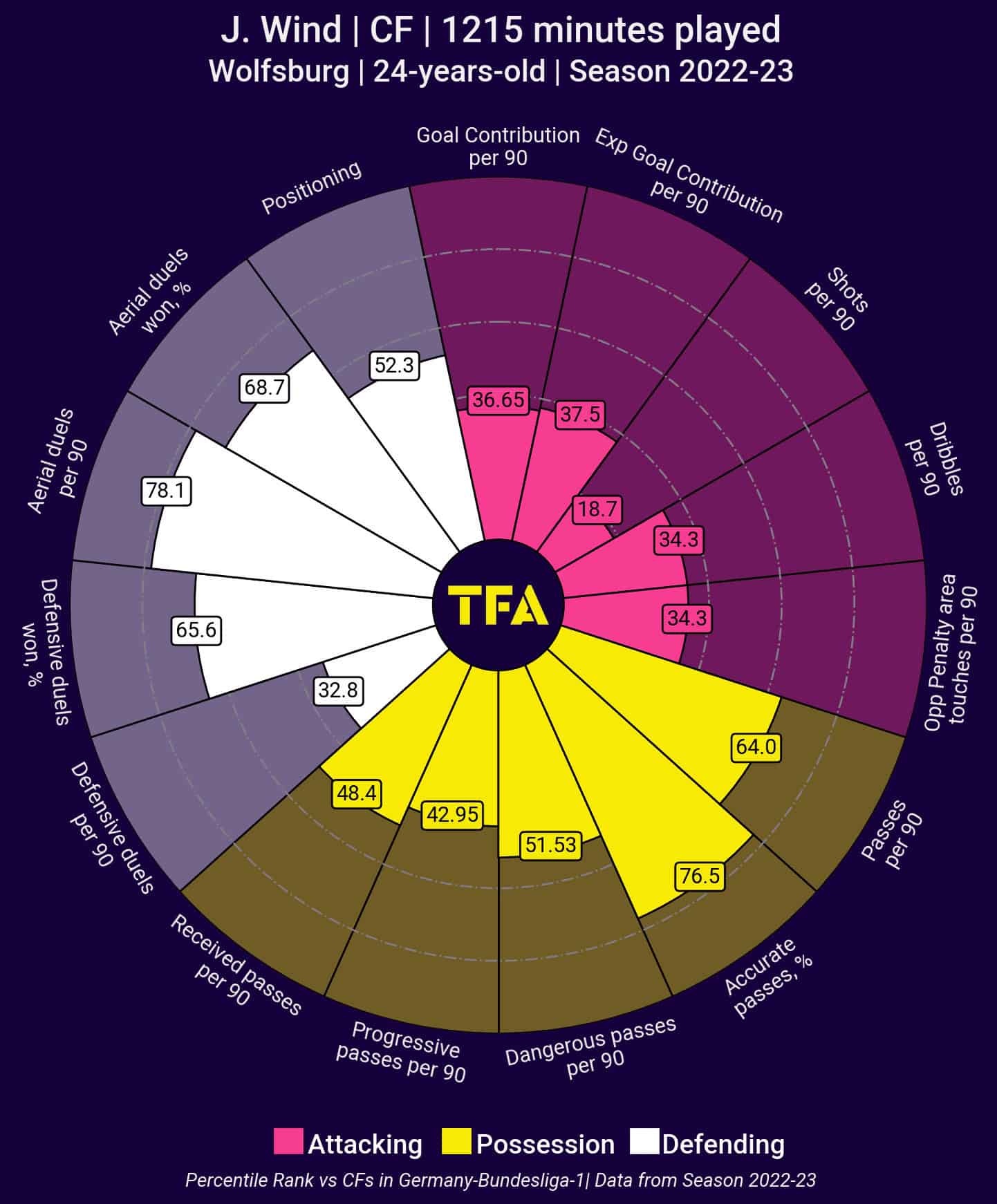 Standing at 6 foot 3 inches tall, Wind is a formidable physical presence up front, scoring 11 goals in 14 starts for the German side this season.