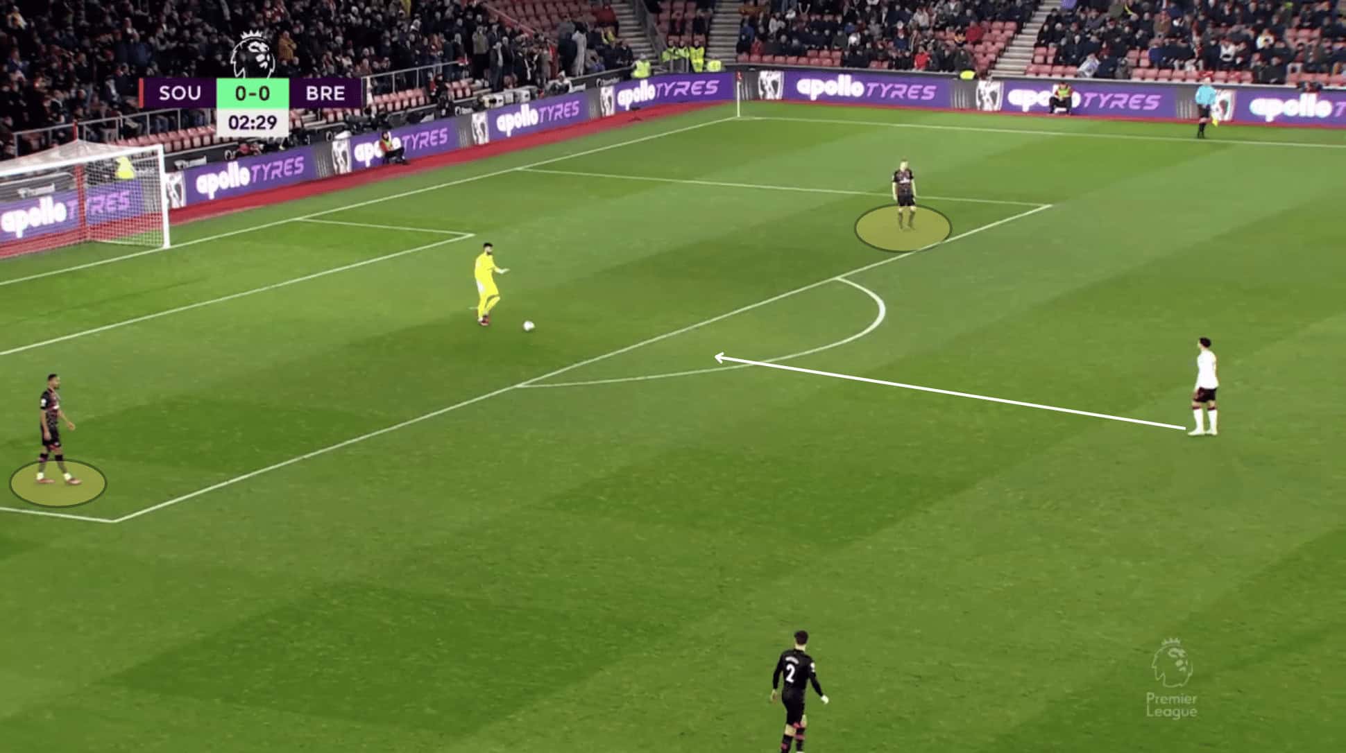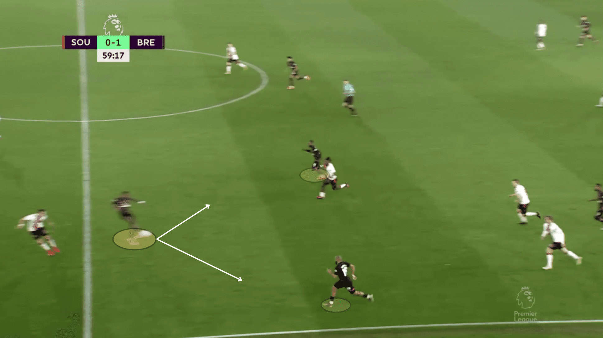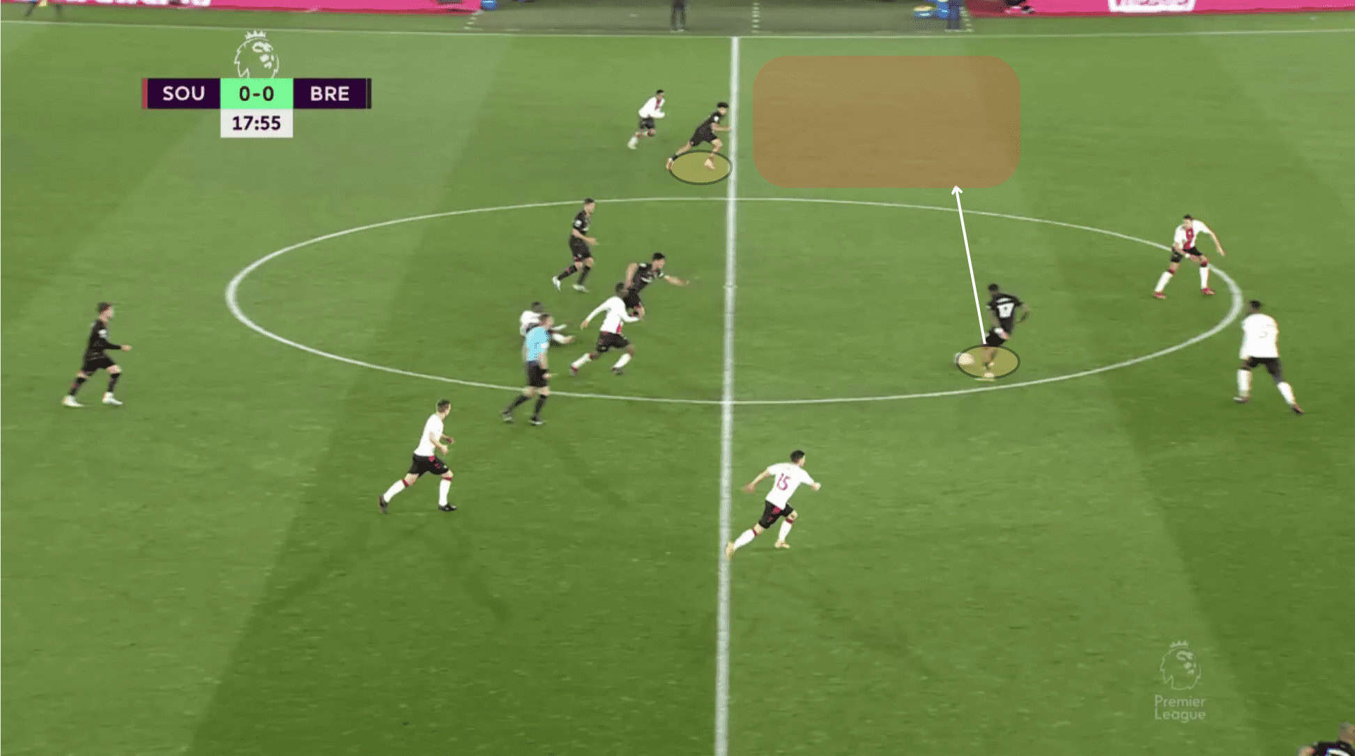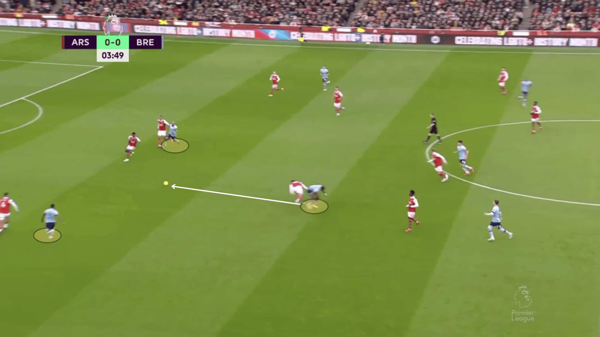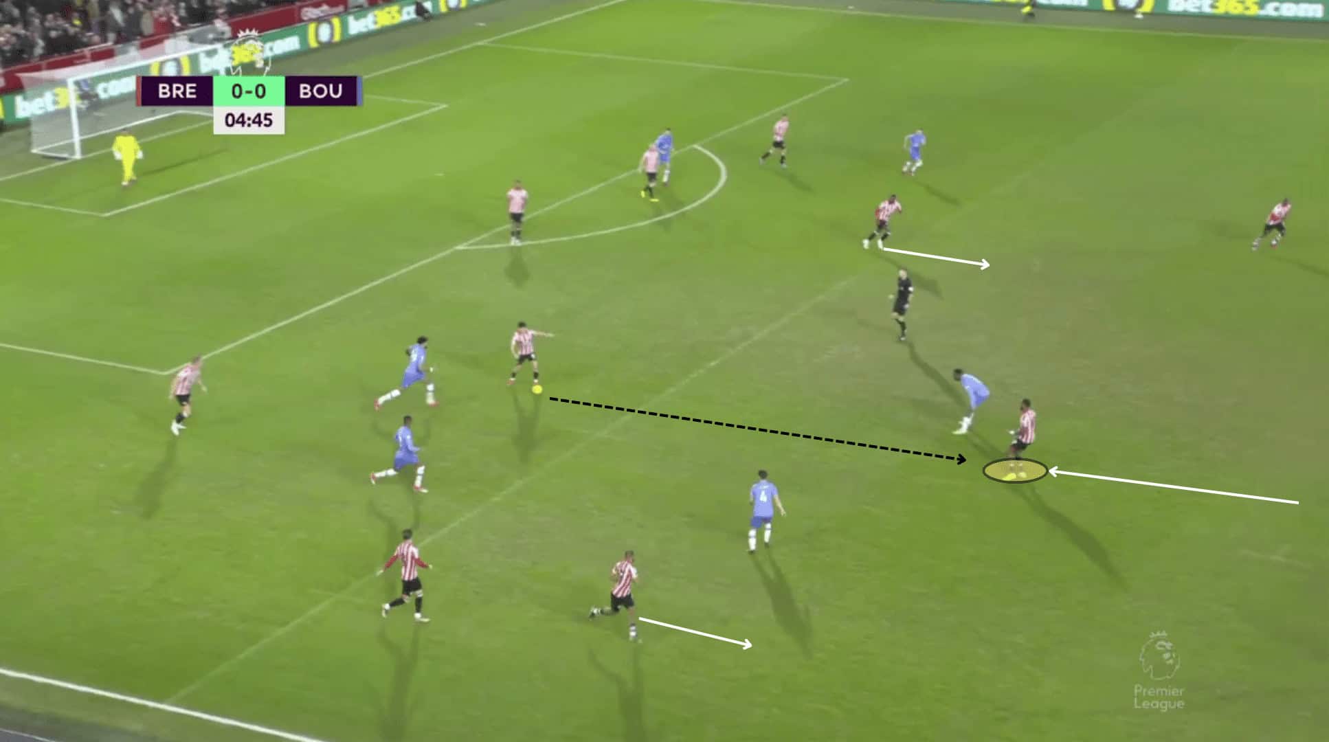 This commitment of players to the centre of the pitch benefits the likes of Mbeumo, Yoane Wissa, and Kevin Schade by giving them more space down the channel and opportunities for 1v1s, causing problems for the opposition with their pace and direct running.