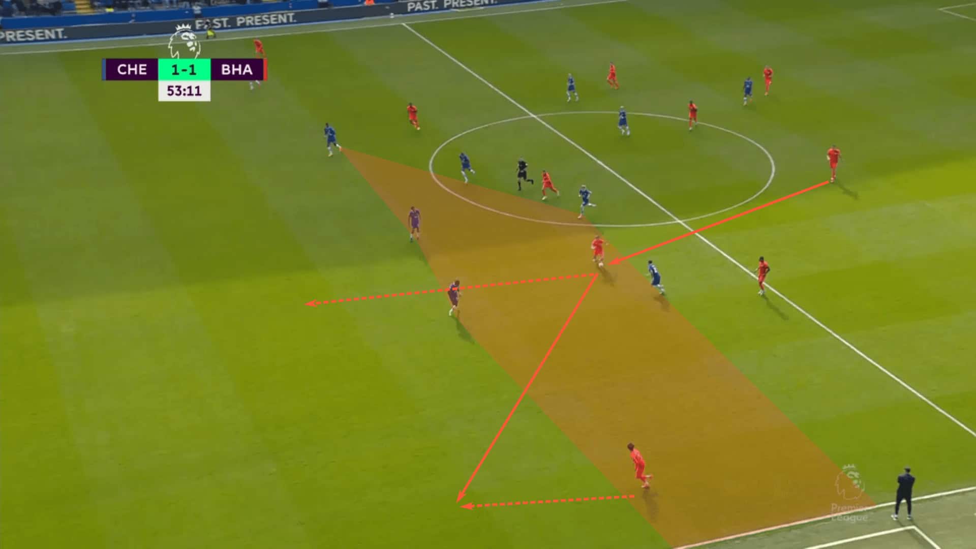 At this point, lines are broken and Brighton typically has favourable matchups to attack the box.
