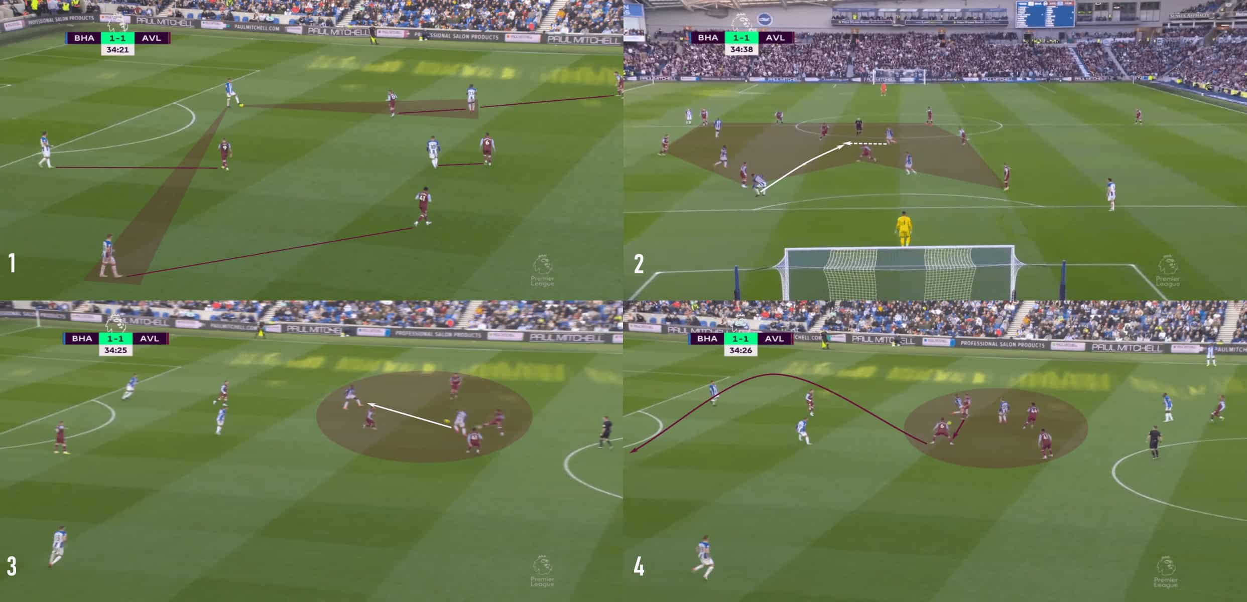 The first image gives a really good tactical overview of Brighton’s asymmetric build-out.