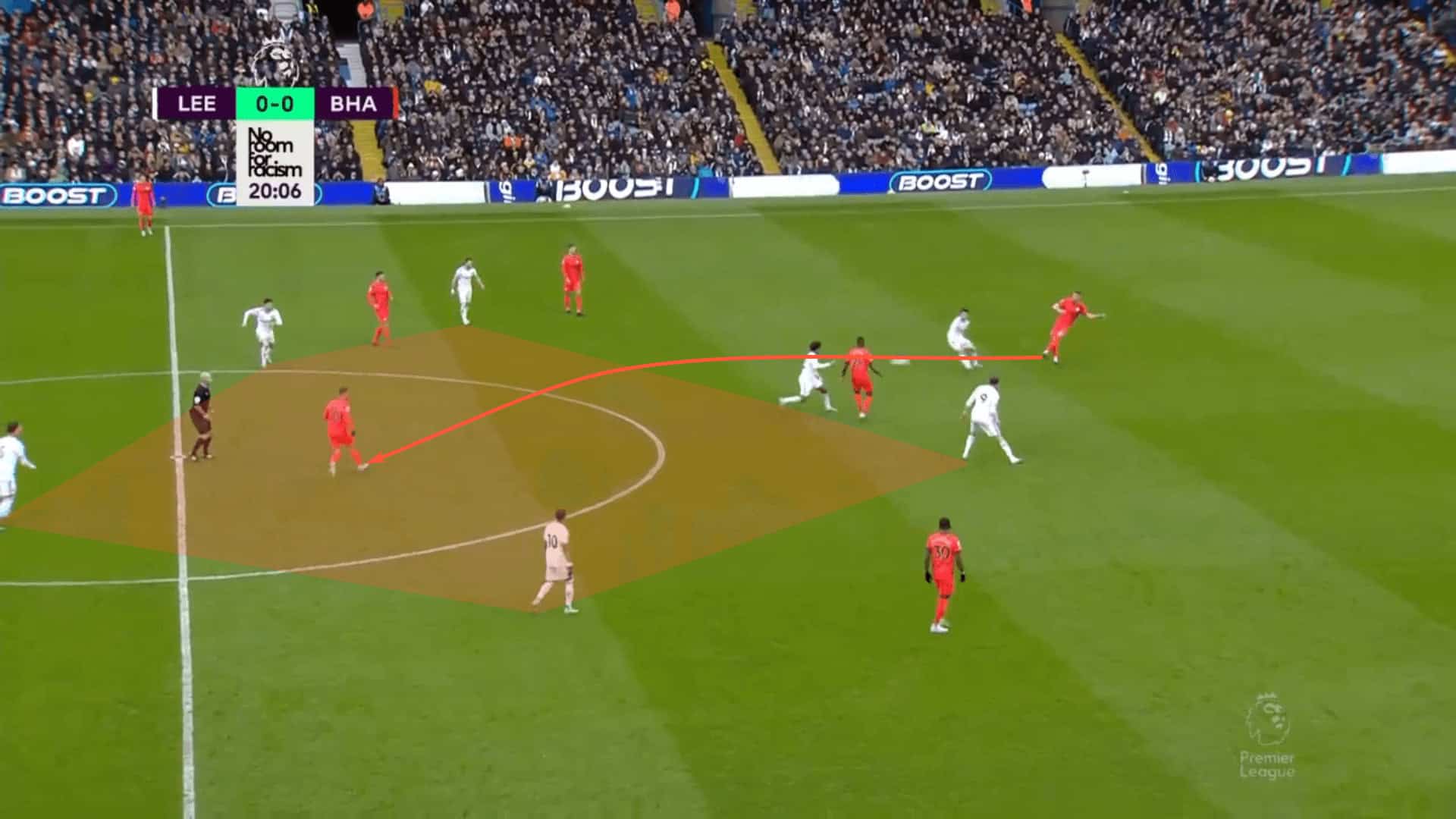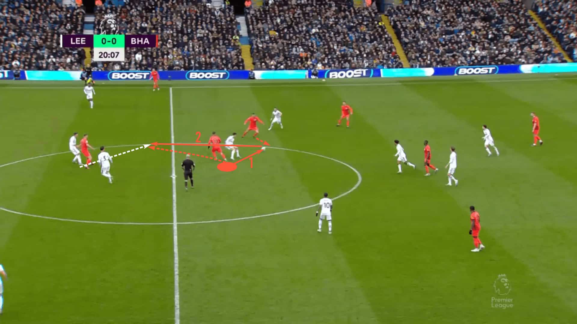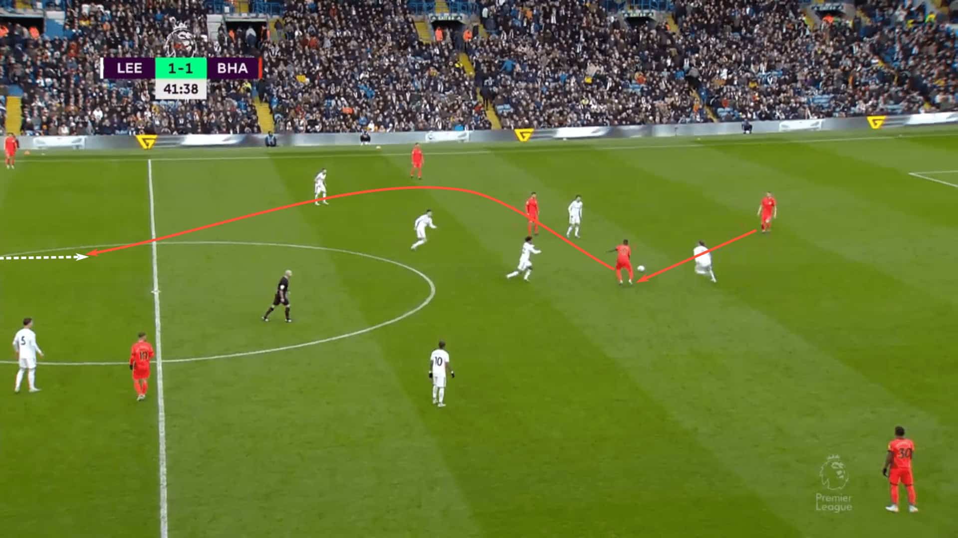 Leeds gave Brighton this space between the lines fairly consistently.
