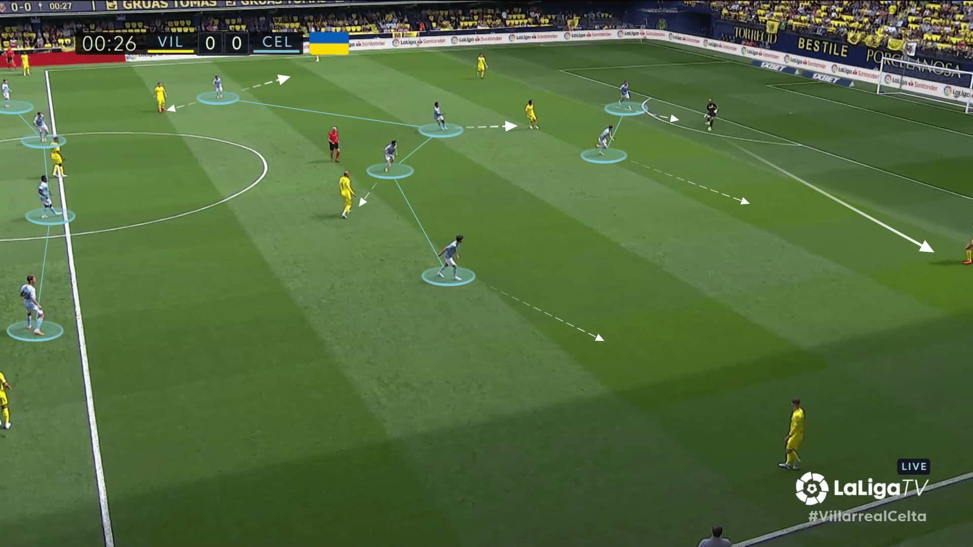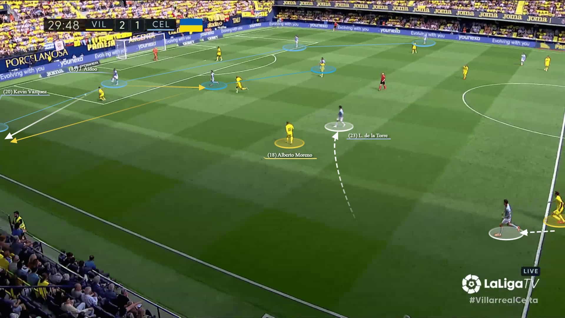 In a game against Villarreal, Celta Vigo was building up through their right-back Kevin Vázquez.