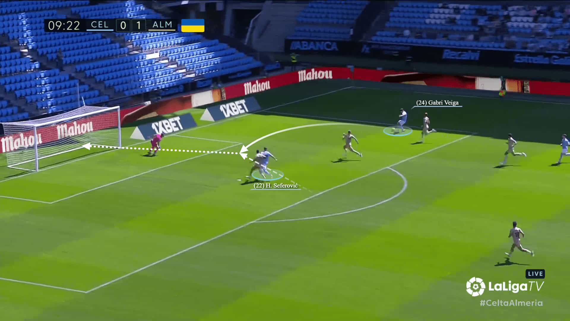 At the same time, Gabri Veiga made a vertical run into the space behind the backline, gaining dynamic superiority over his marker, while Haris Seferović drew the attention of the other centre-back.