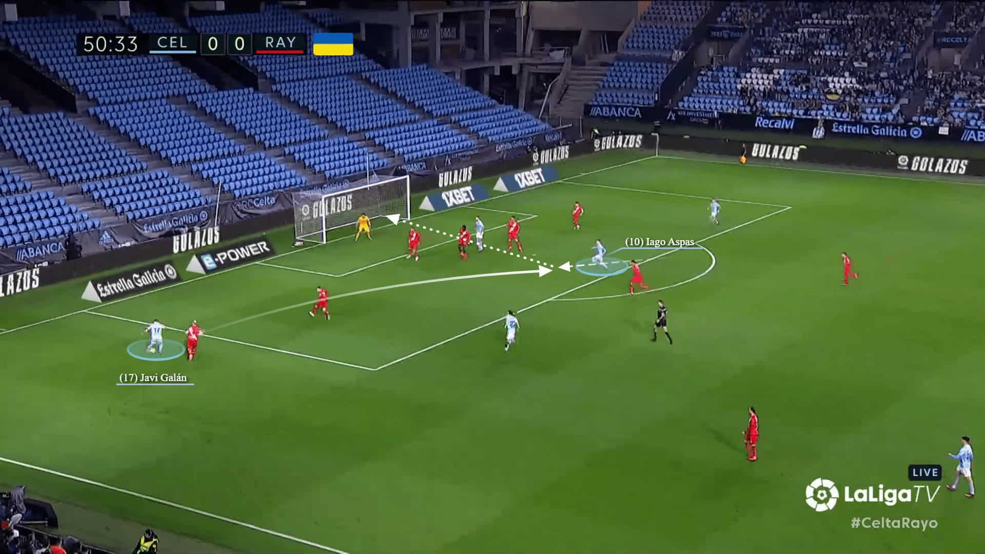 In this instance, Aspas received a pass without any pressure and turned quickly.
