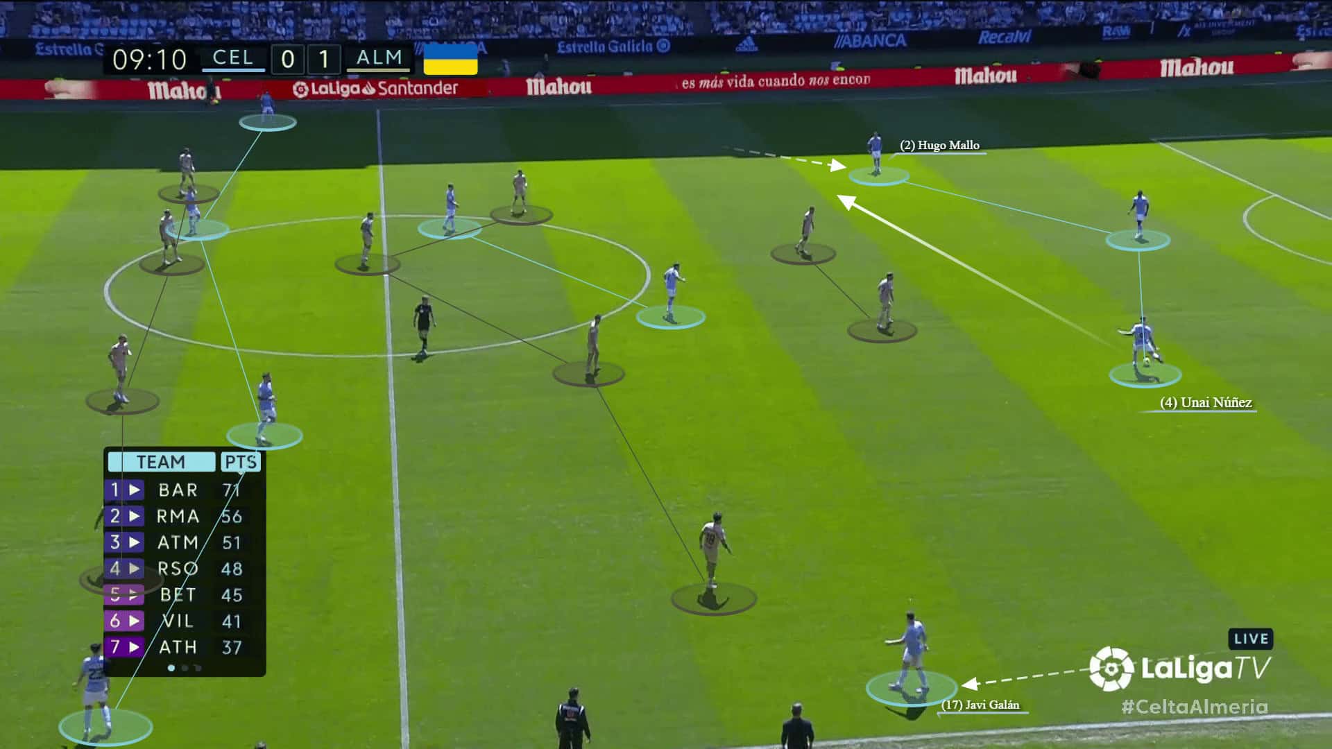 This allowed Hugo Mallo to progress forward after receiving a pass from Unai Núñez.