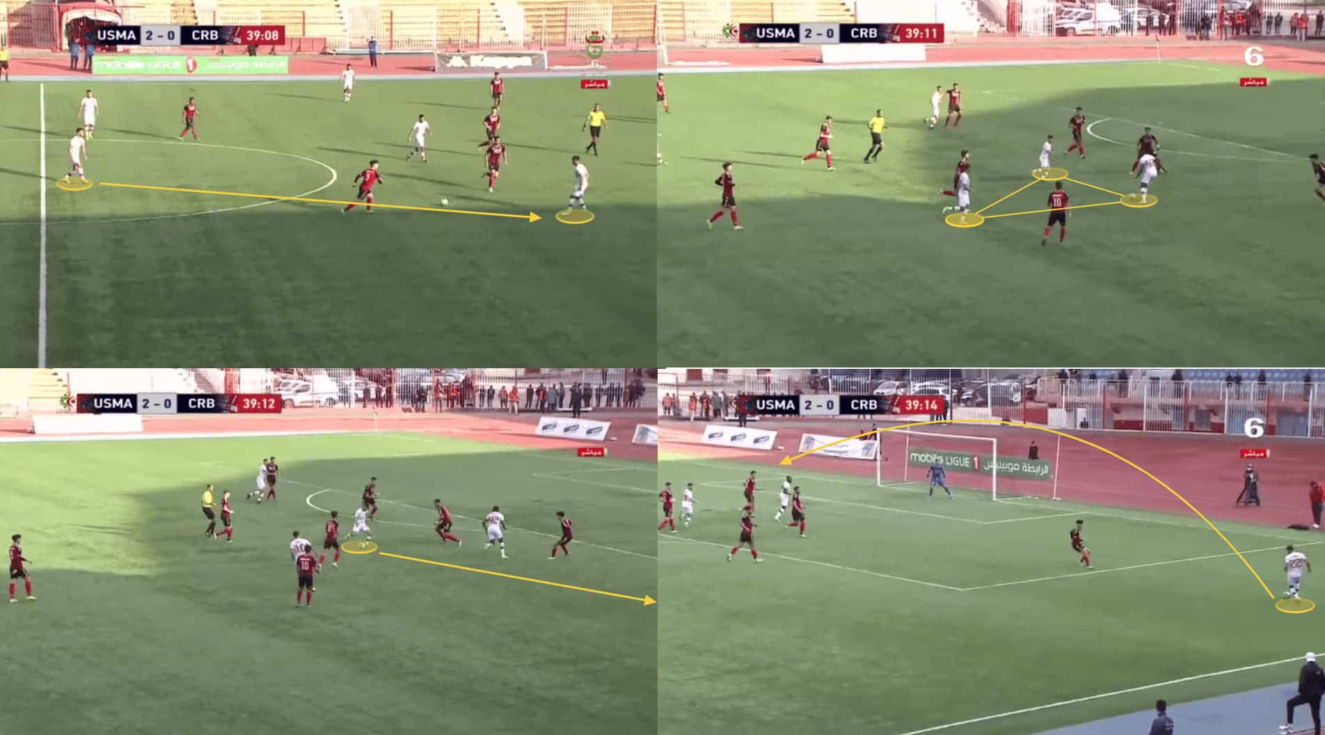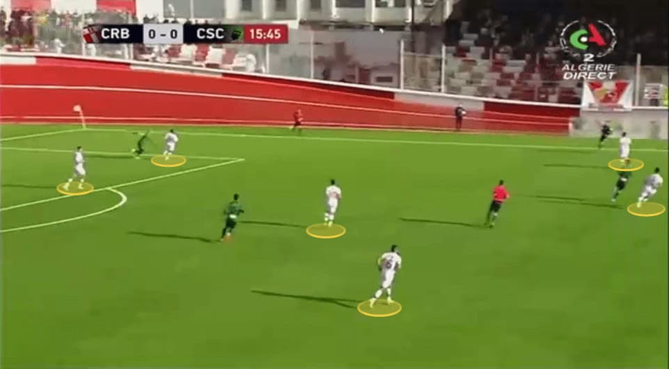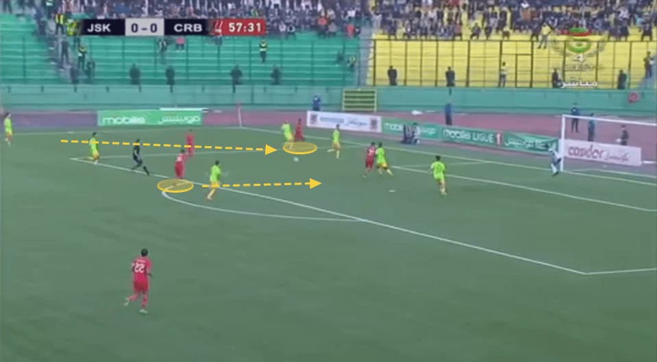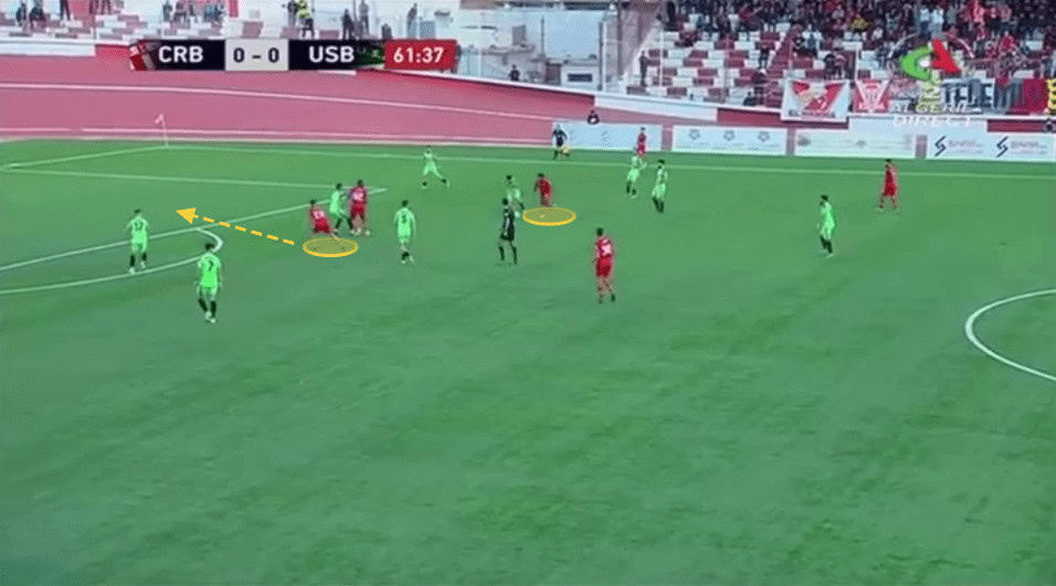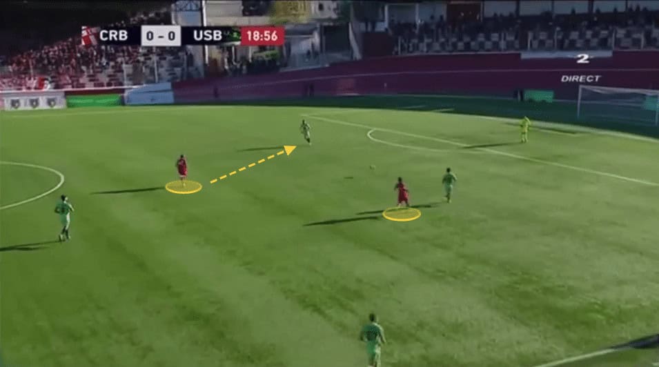Belouizdad build-ups may seem a bit simple but when you already play in such a powerful team status, meaning you’re going to play against teams that put little pressure on you close to your box, and you have players with a high technical level who can constantly break and receive in pockets of spaces between the lines, it becomes very easy to generate that chemistry and synergy in the team, with the off-the-ball movements of the players, being the most vital thing in Kouki’s team and even at football.