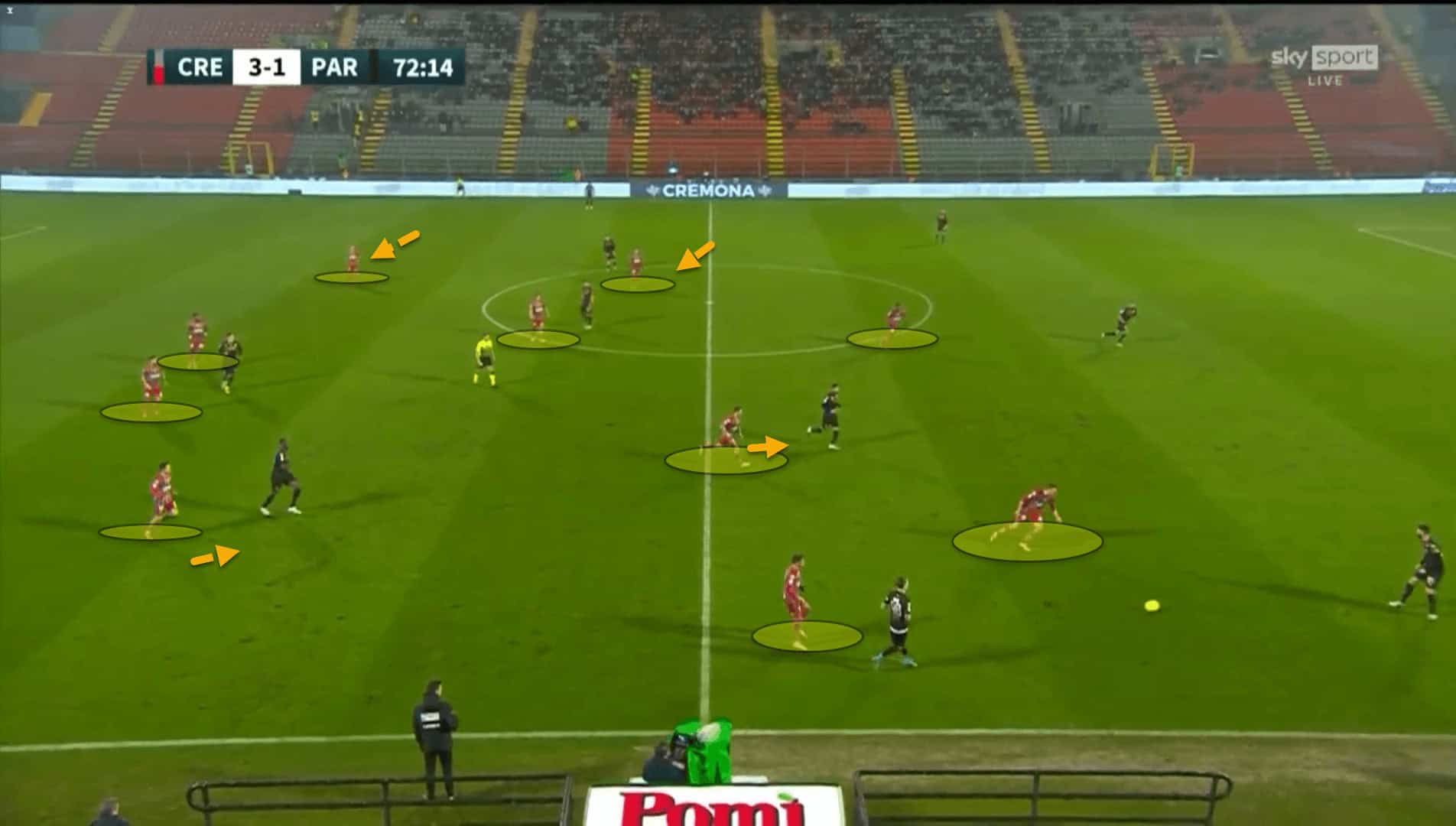 Basically, Cremonese tend not to press too high but hit hard when they do apply pressure to the ball.