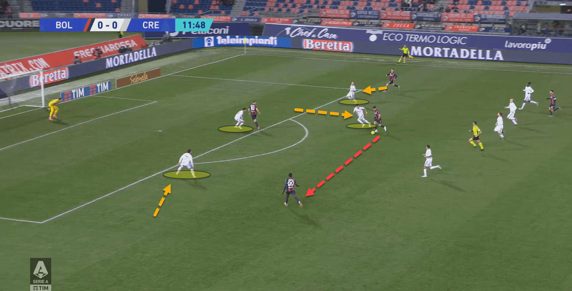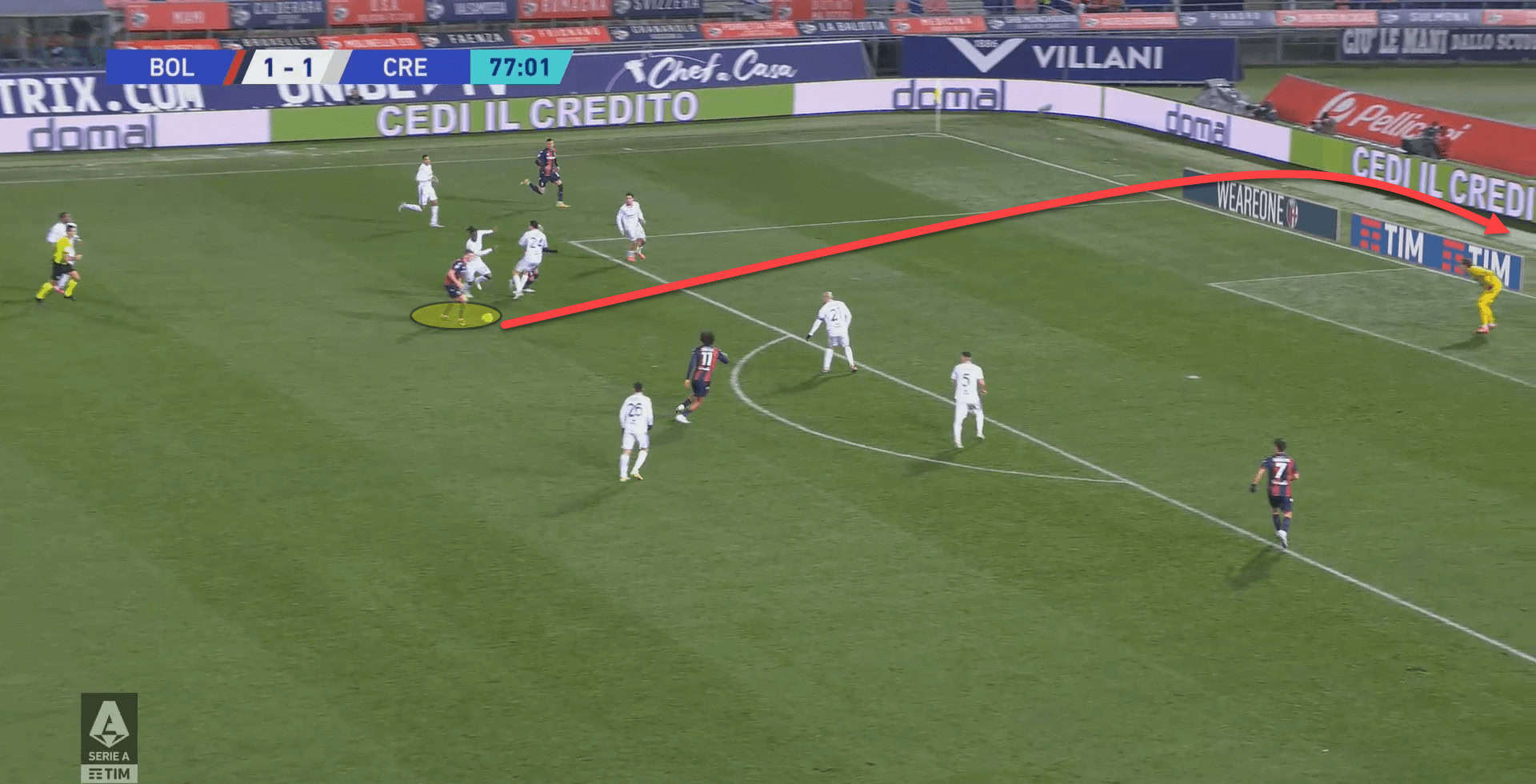 Here, Cremonese did really well to prevent Bologna from scoring in a dangerous position.