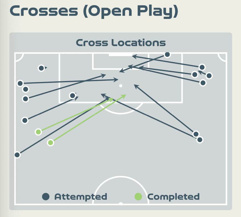 The defensive midfielders were also used to shield the back line and cut off passing lanes in central areas. Additionally, Colombia forced Germany to swing crosses in from deep or from the half-spaces, which were much easier to deal with as there were several players back defending who were available to clear their lines.