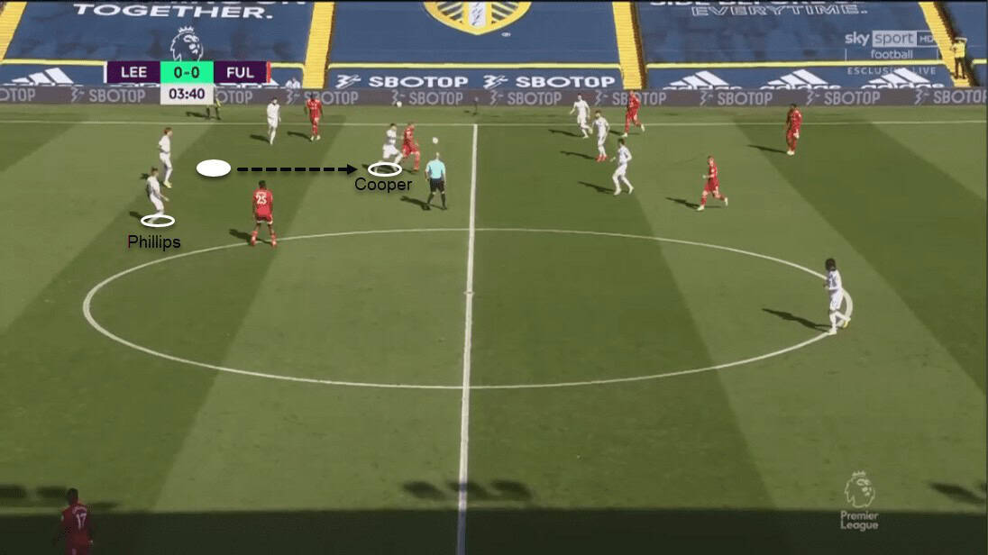 Opposition teams have also shown intelligent moves where the players pin the Leeds’ marker and drag them wide to pave way for pivots and centre-backs. It is especially effective when Phillips’ target player drags him wide. His positional sense is brilliant otherwise and is very capable of stopping such runs. The freedom offered to these pivots or centre-backs can hence be punishing if they find the final pass. They have been fortunate to not suffer from it. Therefore it is a risk Leeds are ready to take as not many teams are brave to commit their centre-backs all the way up the field.