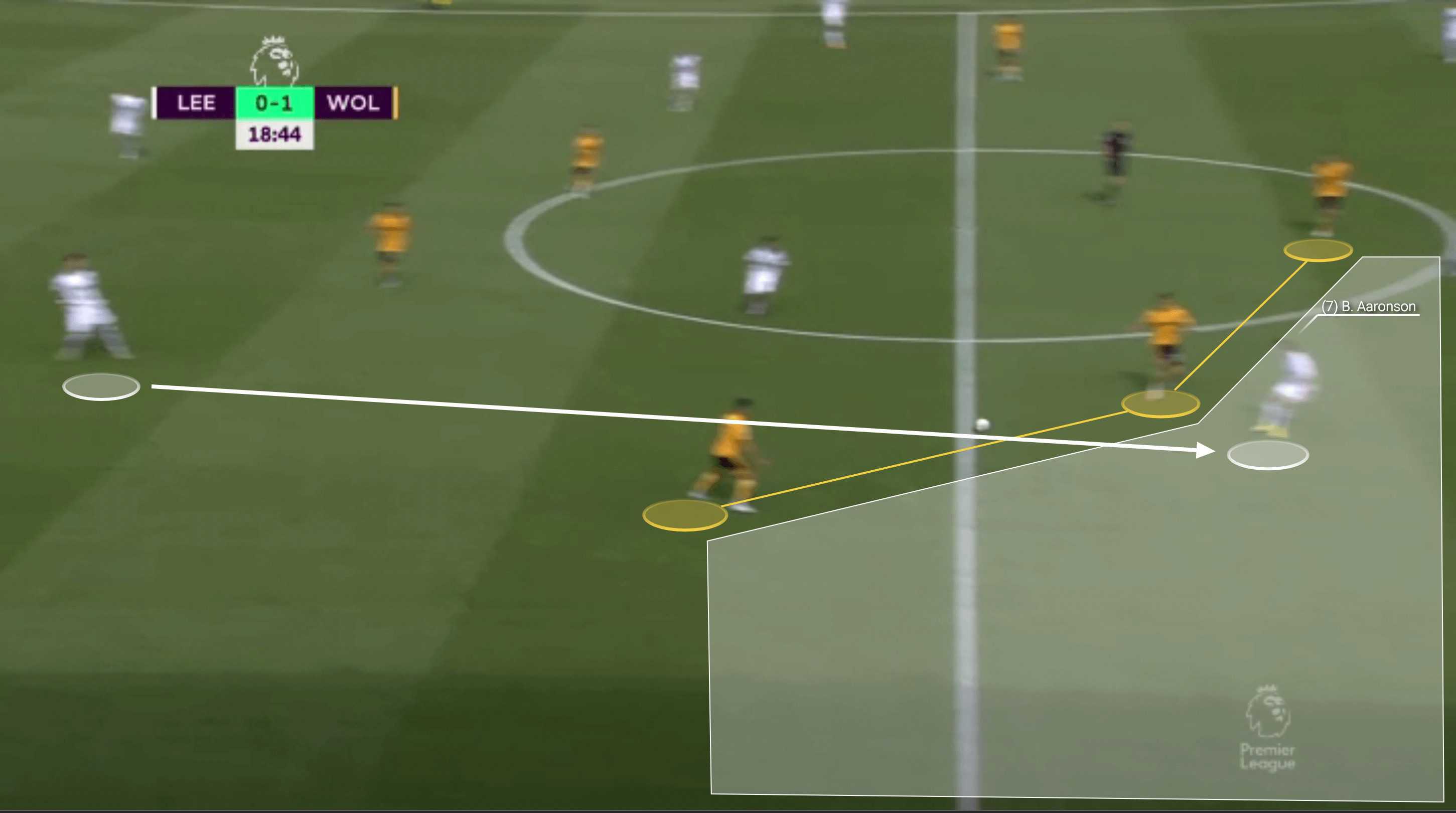 Out of possession, the energy and aggression from Aaronson really helped Leeds to limit the threat from Wolves as they were looking to build out from the back.