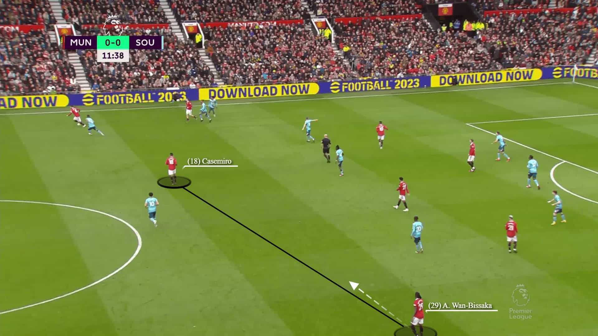 Therefore, Wan-Bissaka’s presence is essential here due to his defensive attributes and his role in the rest of the defence alongside Casemiro when in possession.
