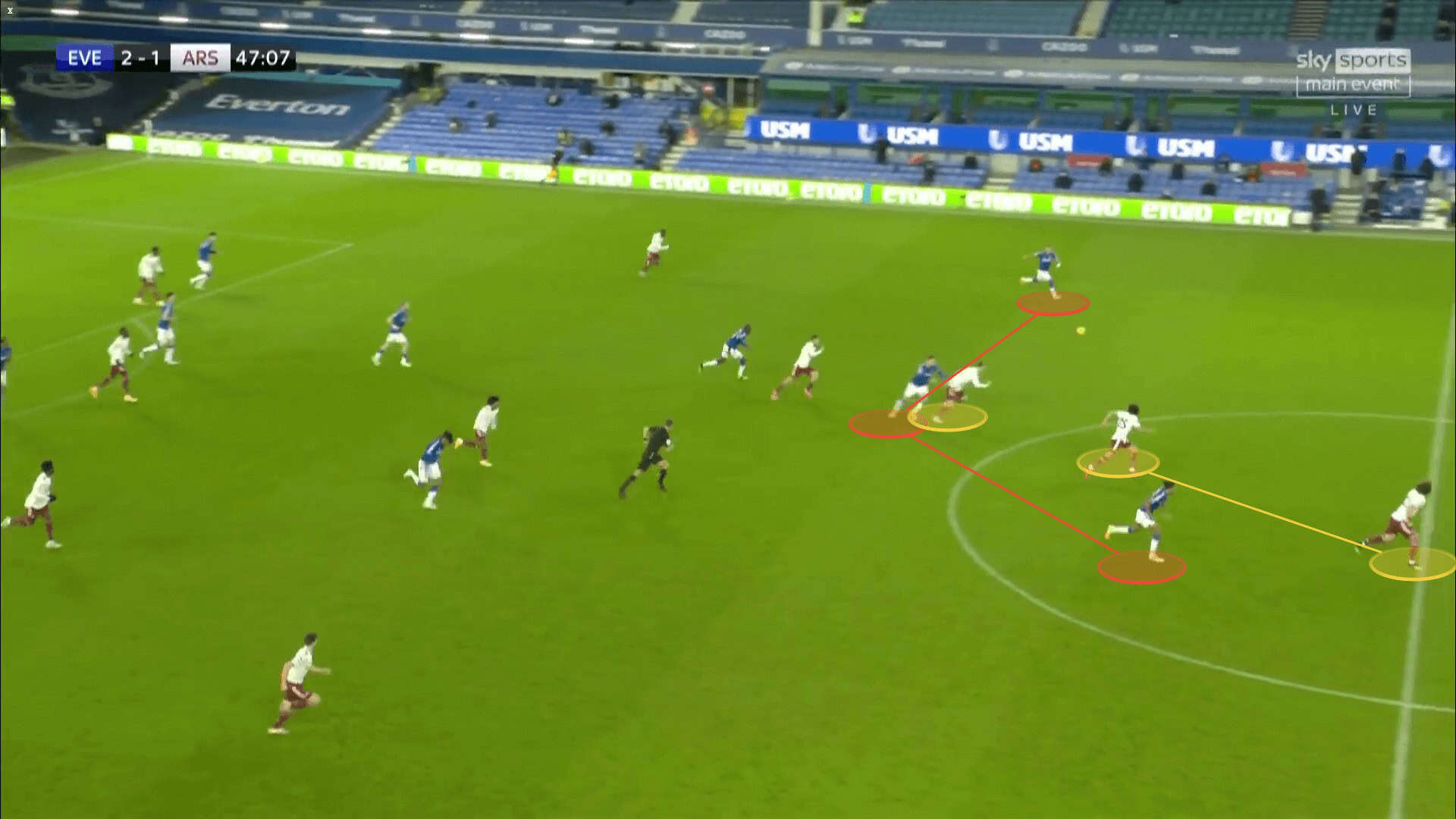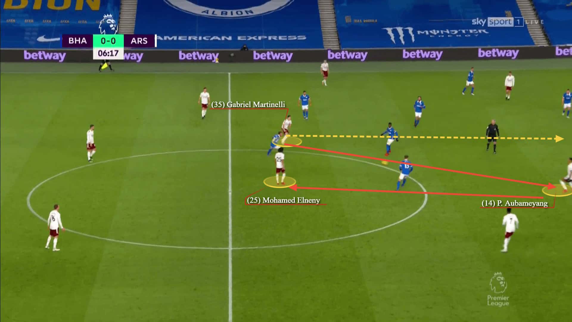 Since Arsenal don’t have a typical target man with strong aerial abilities as they previously had in the likes of Olivier Giroud, the current forwards might need additional support in overloading the advanced areas, should they lose the high ball.