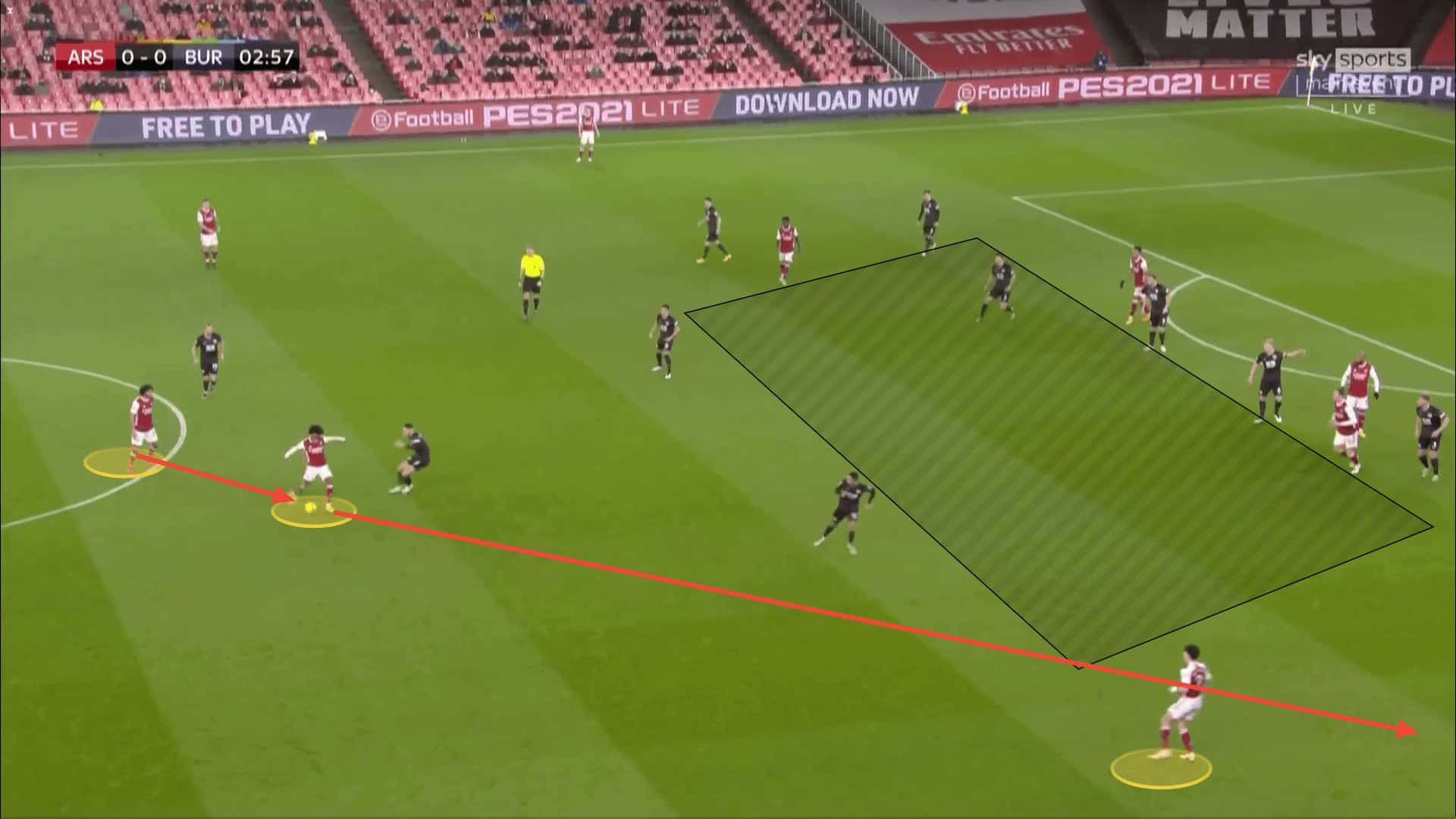 One thing that was extremely underlined by Gabriel Martinelli’s comeback was the desperate need of increasing the pace and outrunning their opponents in aim to penetrate. Arsenal’s performance on speed is one of the very few positive things that can be pointed out in their performance in the last few seasons and their speedy and smooth build-up was something they could be proud of. It isn’t relevant to force players like Kieran Tierney, Martinelli, Héctor Bellerín and Aubameyang, who can easily use their speed and movement to outplay their markers and quickly advance the ball, to play possession football and stay narrow in the opposition half, trying to break through overloads of opposition players and looking for the tiniest gaps. This isn’t Arsenal’s current squad’s strength.