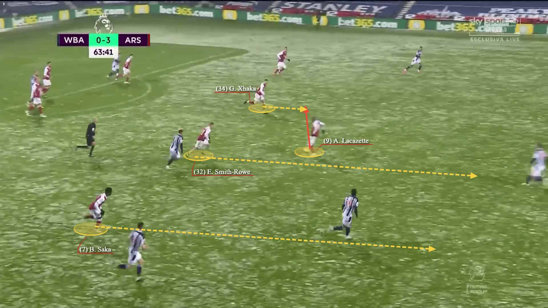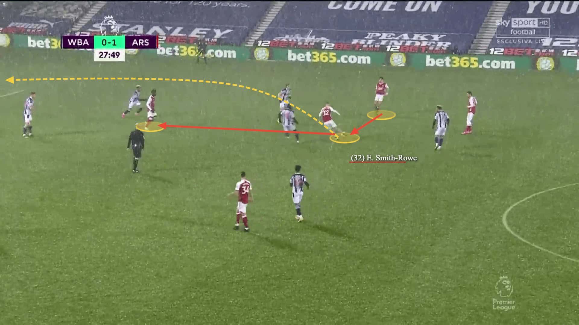 The reason for Arsenal’s complete transformation in their last three games is exactly the use of an attacking midfielder. Emile Smith-Rowe met the expectations and wonderfully adjusted, helping the team in creating more opportunities, be more versatile and explosive. Serving as a passing outlet allowed Arsenal being more creative and exploit spaces better, which immediately resulted in increasing their efficiency. He has provided additional threat centrally in case the team rely on crossing but also a good presence in the half-spaces allowing the team to create different passing combinations and drag players out of position. He could also be used for link-up-play on the flanks and help the team with ball progression and exposing their opponents through the wide areas.