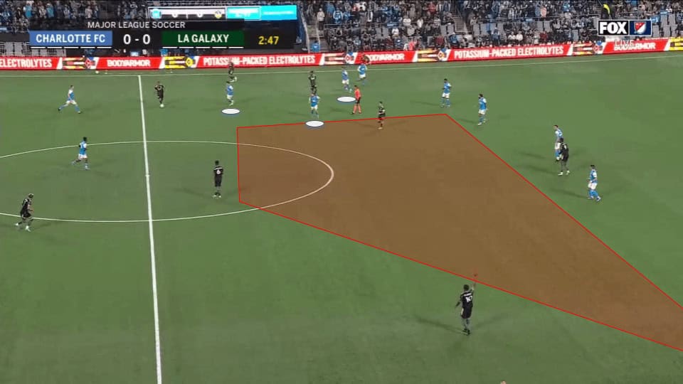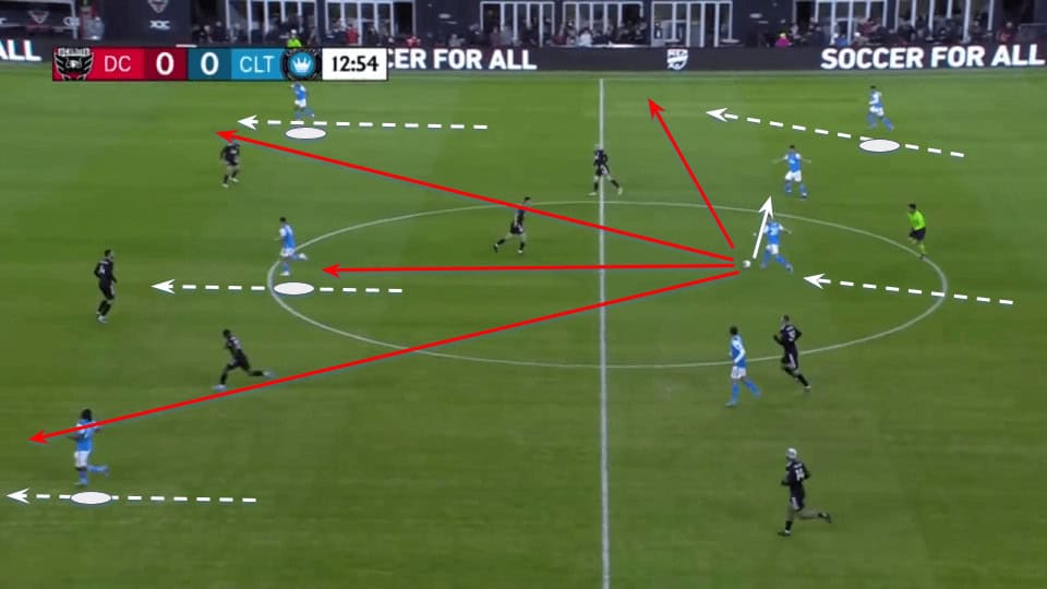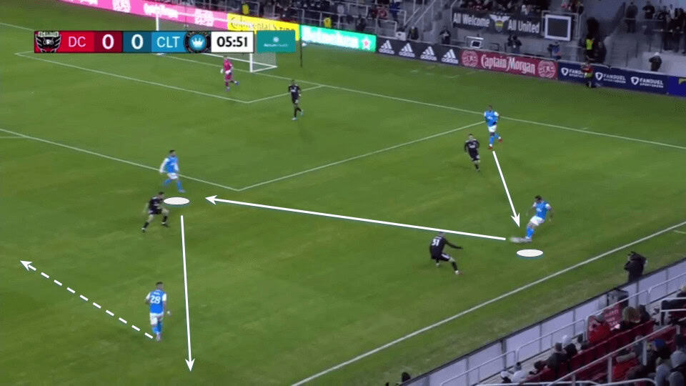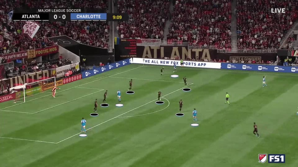 However, the main issue in Charlotte’s defensive system has been the distance between the defensive and midfield lines and also the space around the defensive midfielder.