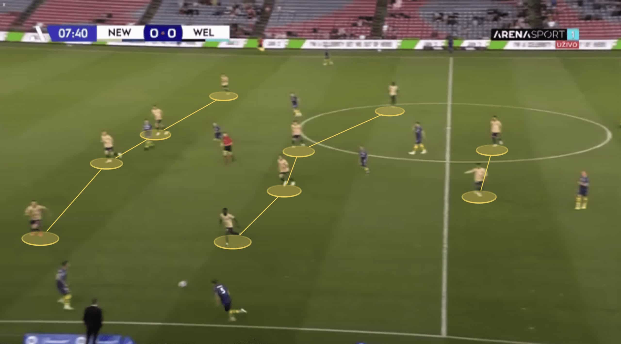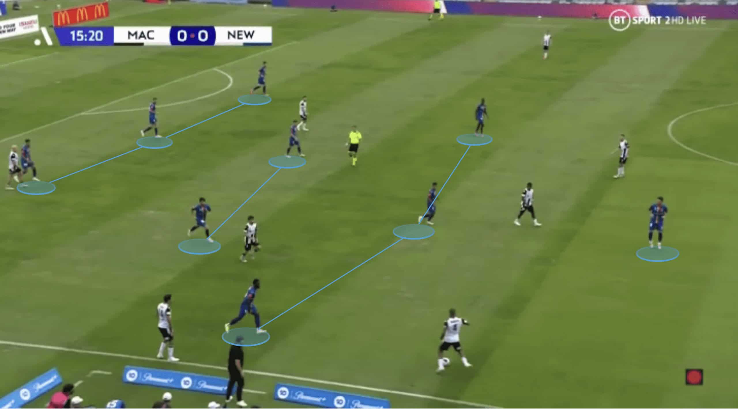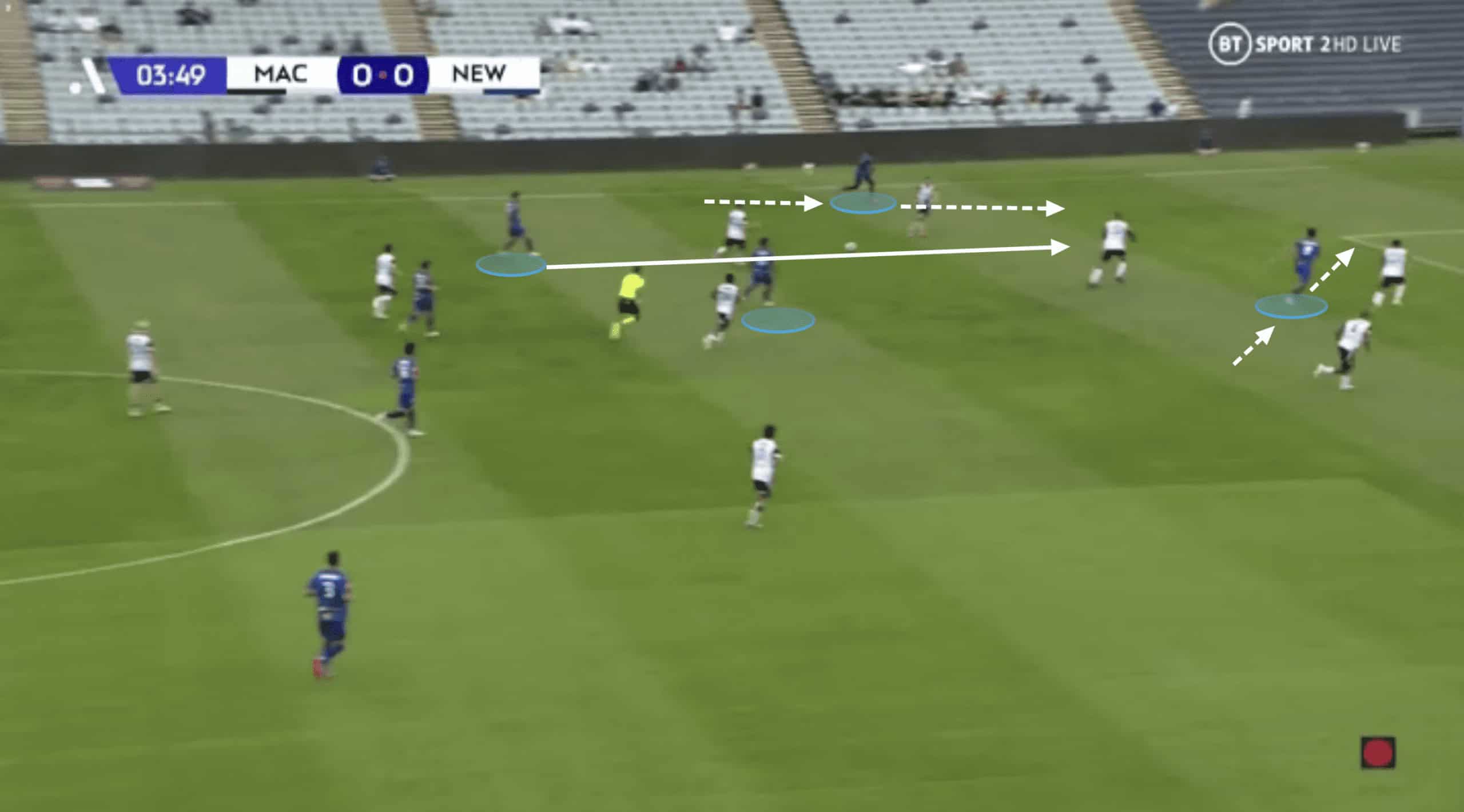 In this image we start to see the build-up structure from Newcastle as discussed above.