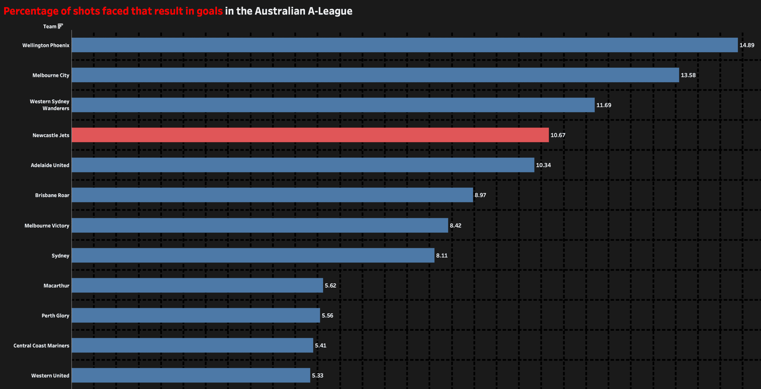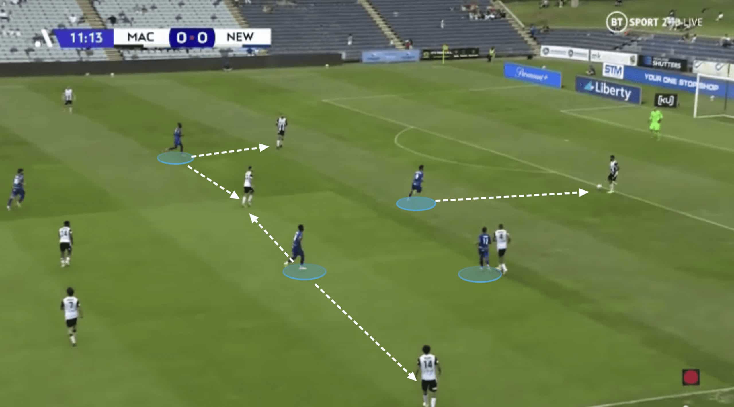 Indeed, in a recent league match against Macarthur we saw Newcastle with 71.68% of the ball.