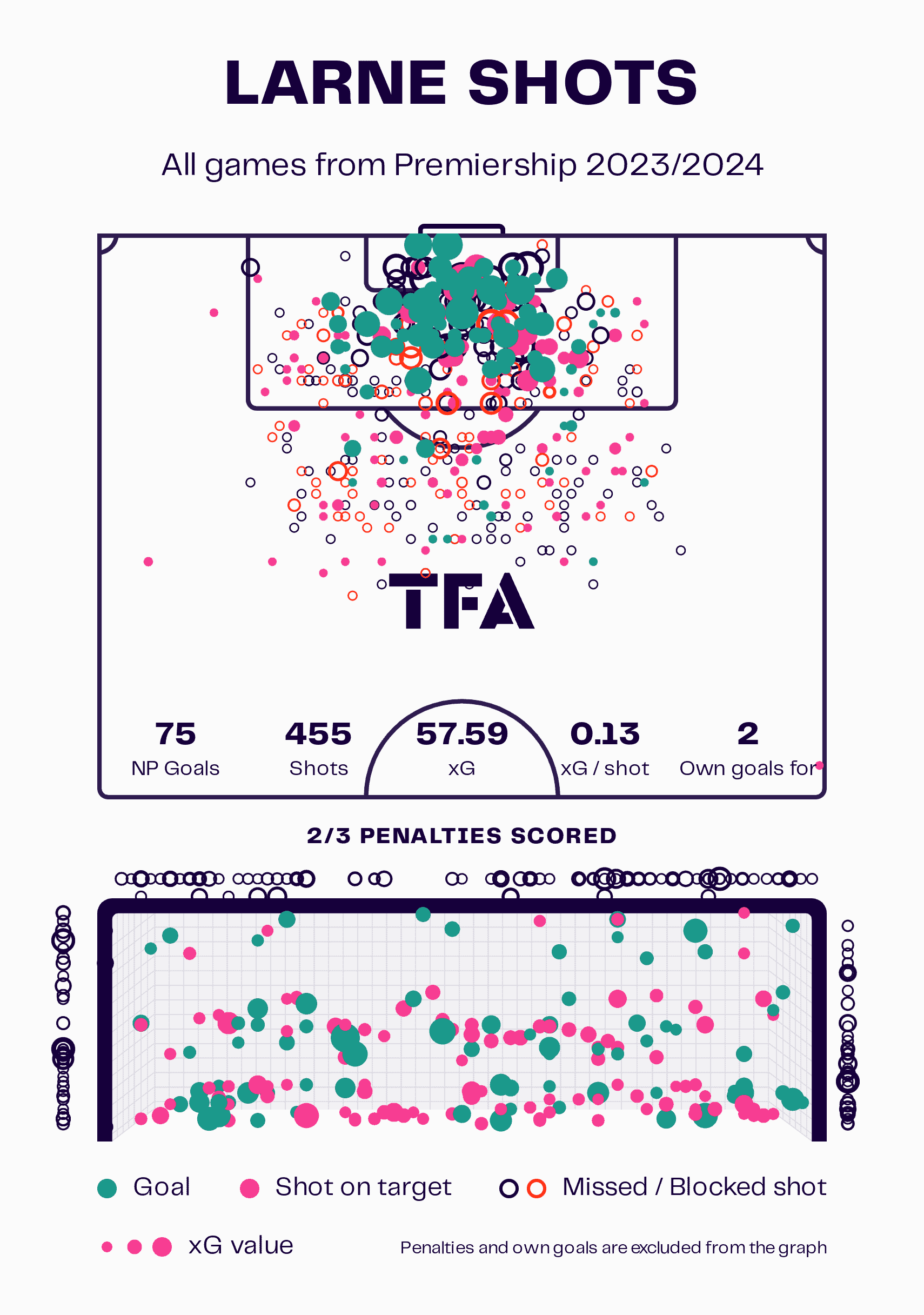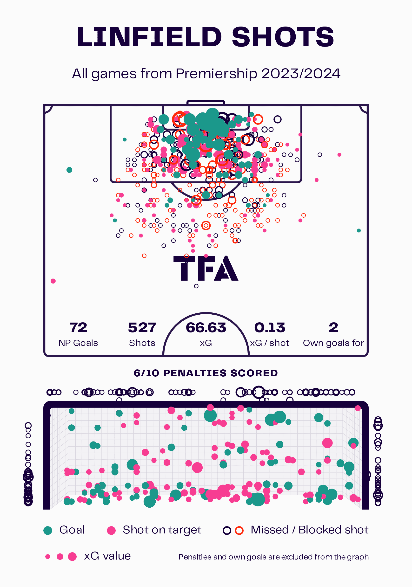 With 72 non-penalty goals from an xG of 66.63, Linfield certainly knows how to find the back of the net, as we noted with Larne.