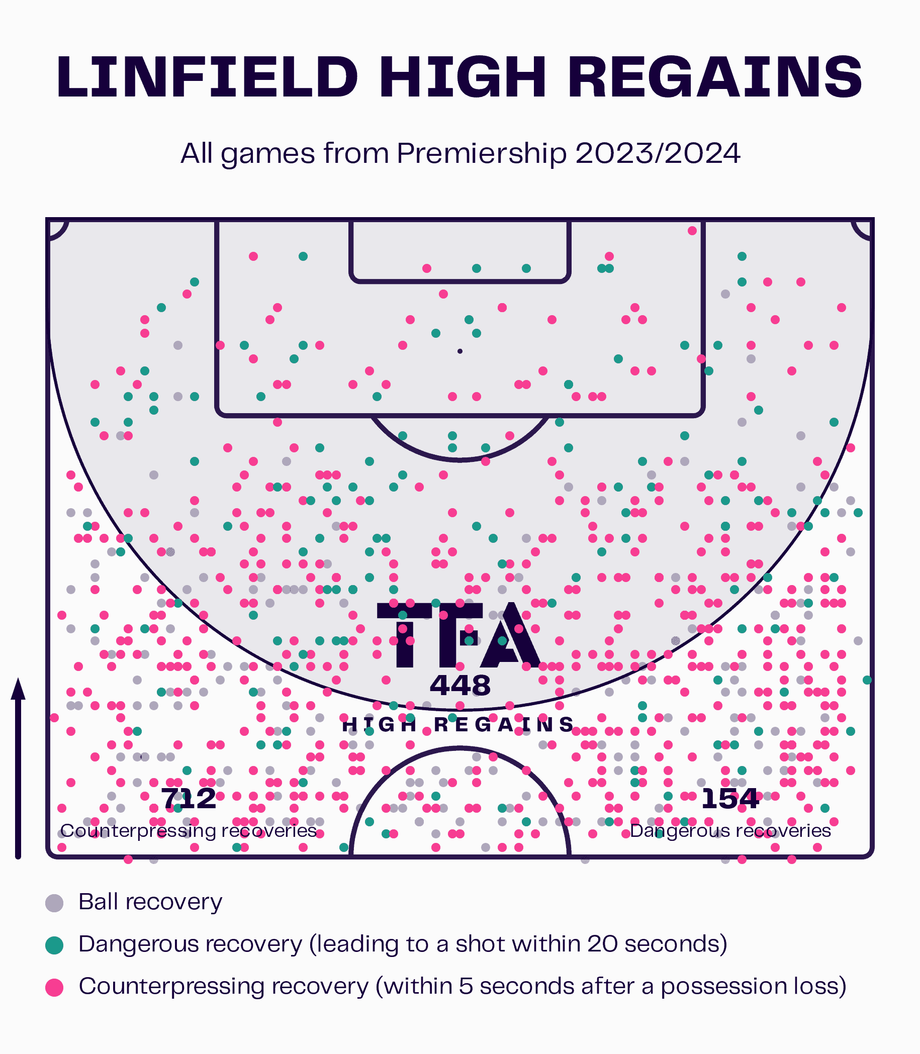 We can see in this data visual that Linfield have made 448 high regains so far this season,