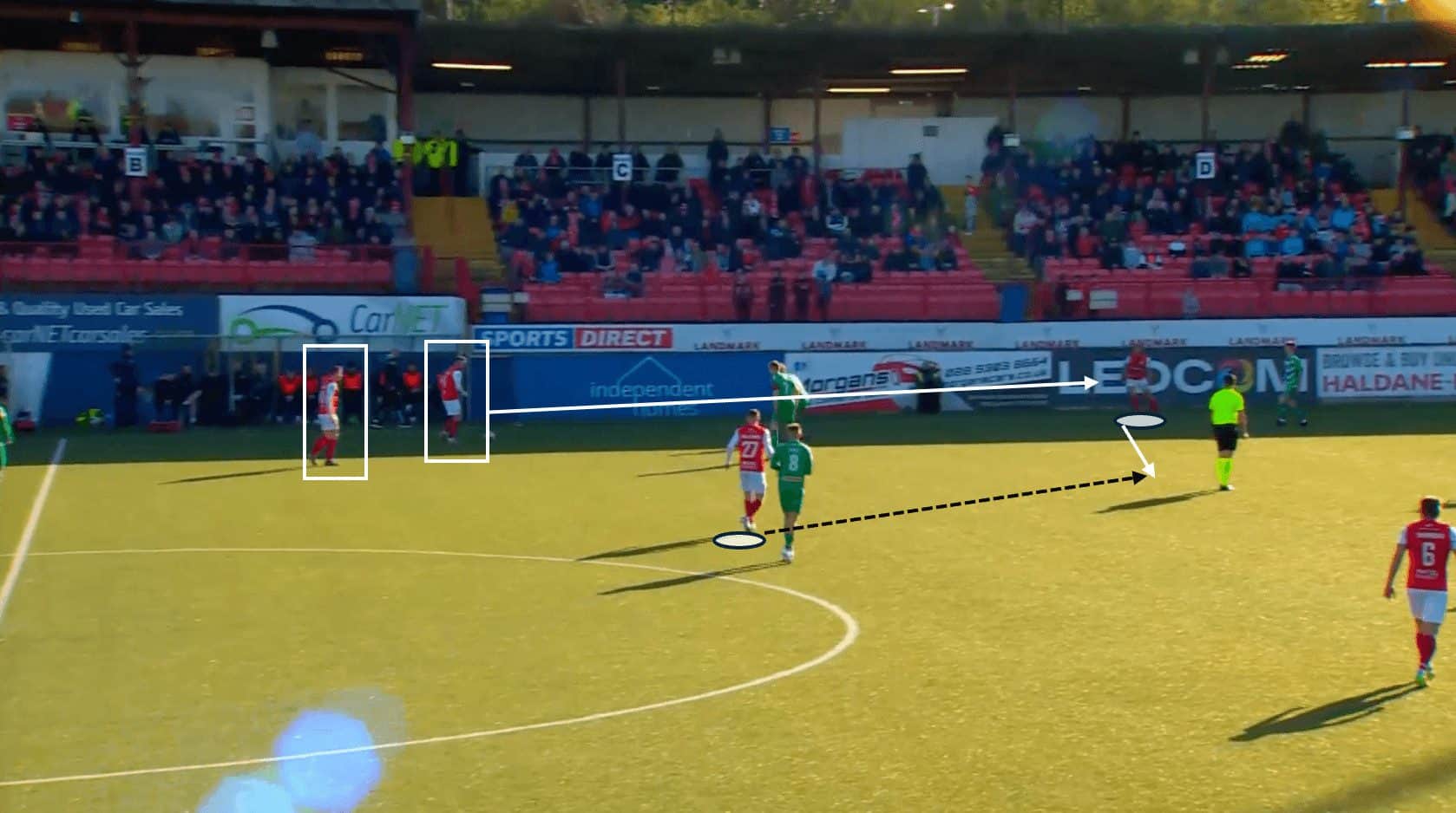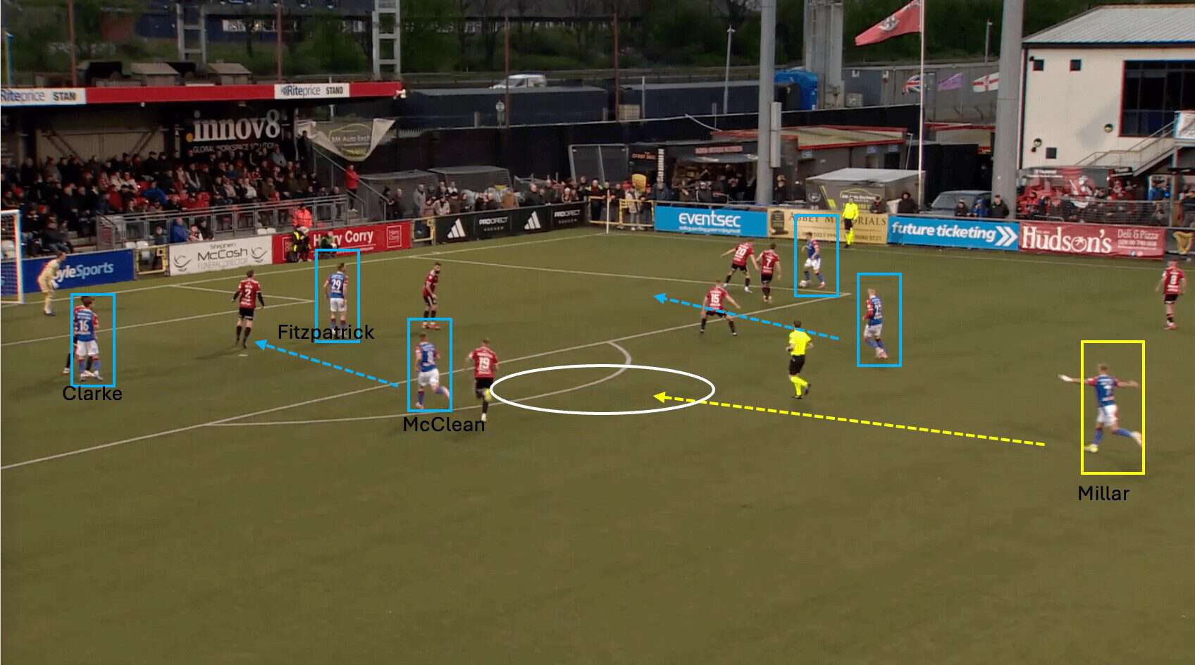 In this instance, we can see that Clarke and Fitzpatrick are already in the opposition penalty area, anticipating a cross coming in from the right.