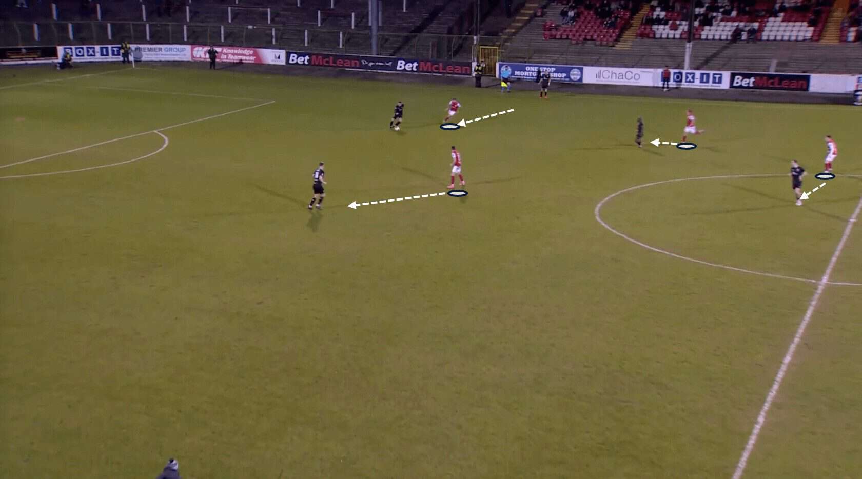This attracts the opponents to move towards the Larne players, leading to spaces in more central areas that can be exploited.