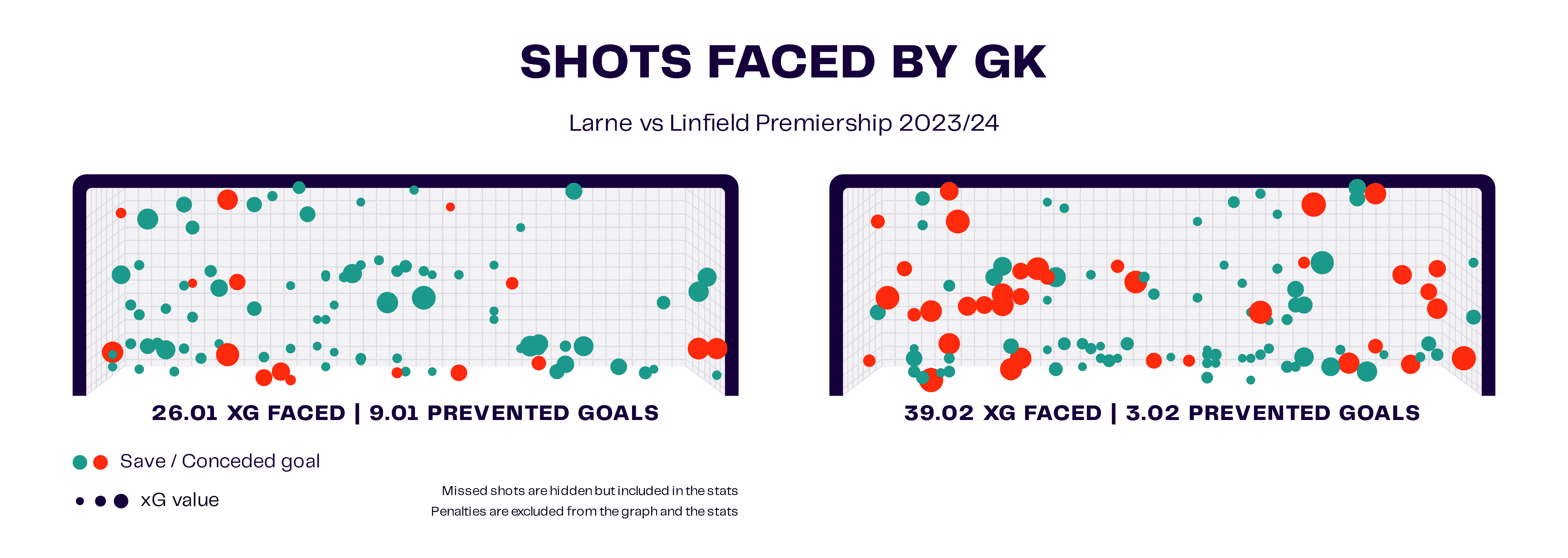 We can see that Larne have faced an xG of 26.01 compared to Linfield’s 39.02.