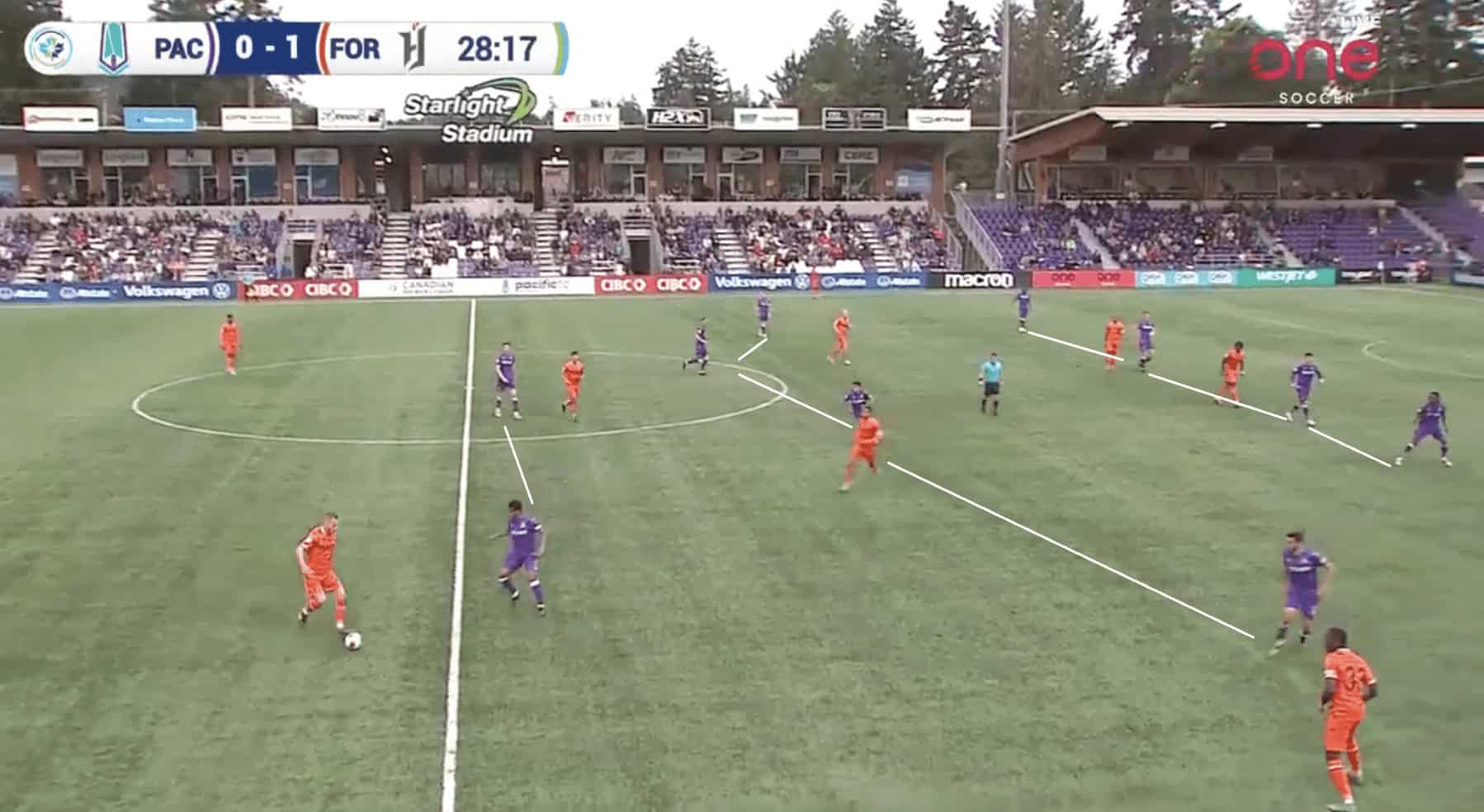 Here, we can see that Pacific does engage in a press, though it must be stated they are not a high-pressing team. The Tridents have a PPDA of 12.87 which is below the league average of 11.1 and well below the likes of Calvary FC and Valour FC who have a PPDA of 6.87 and 7.72 respectively.