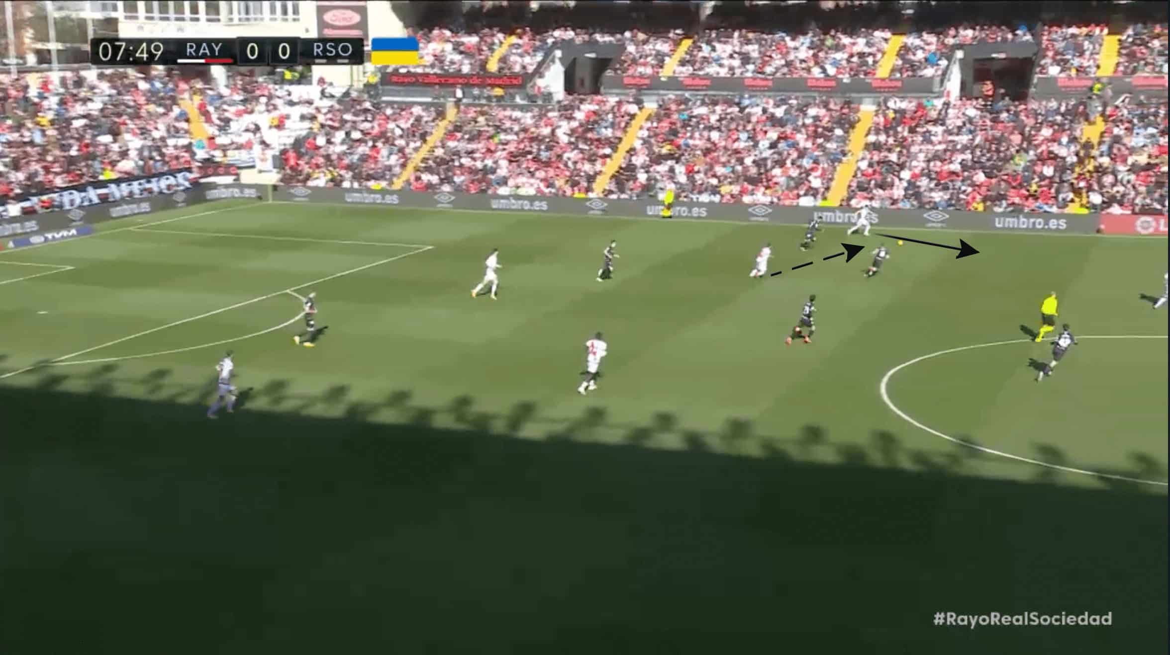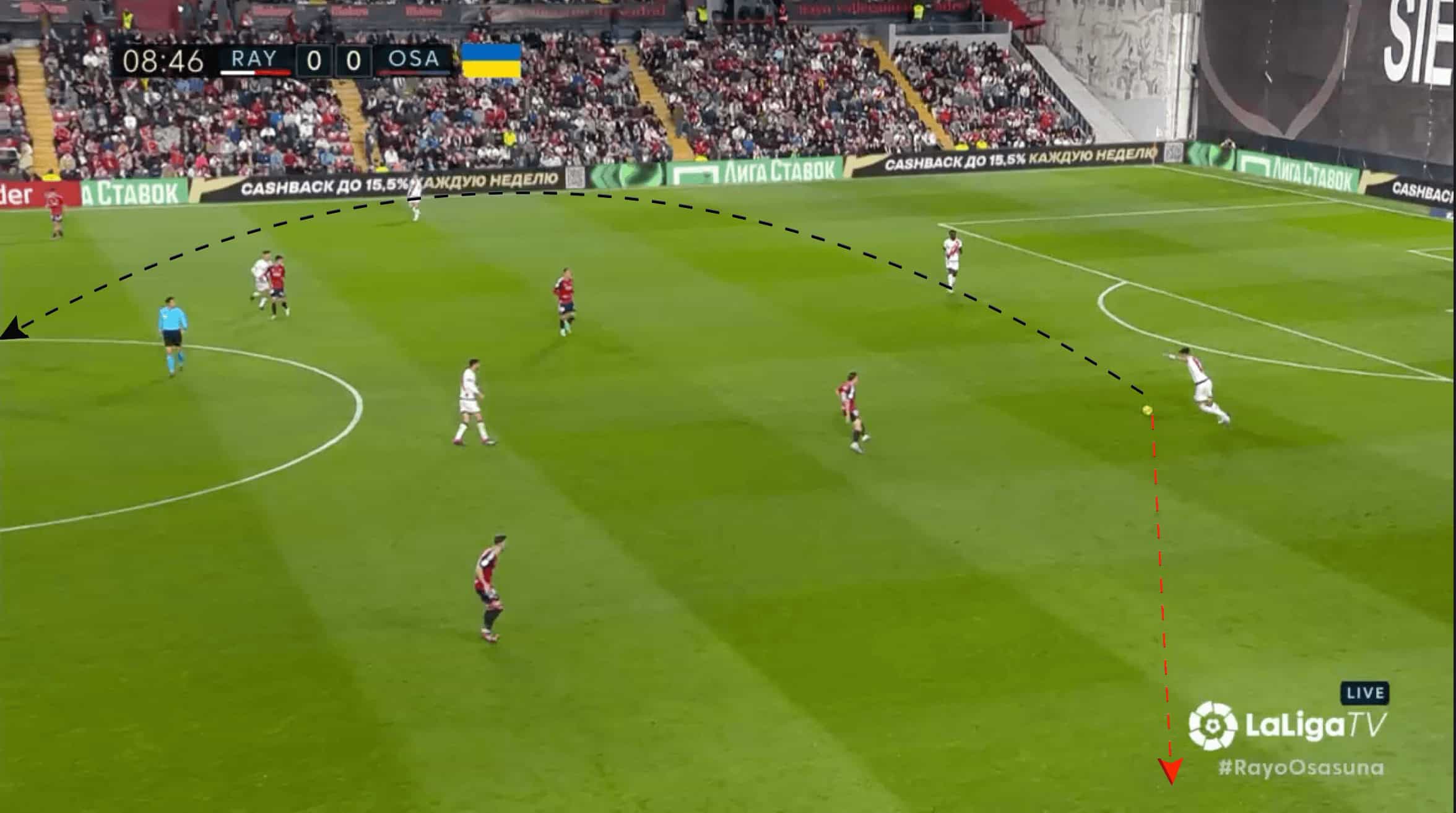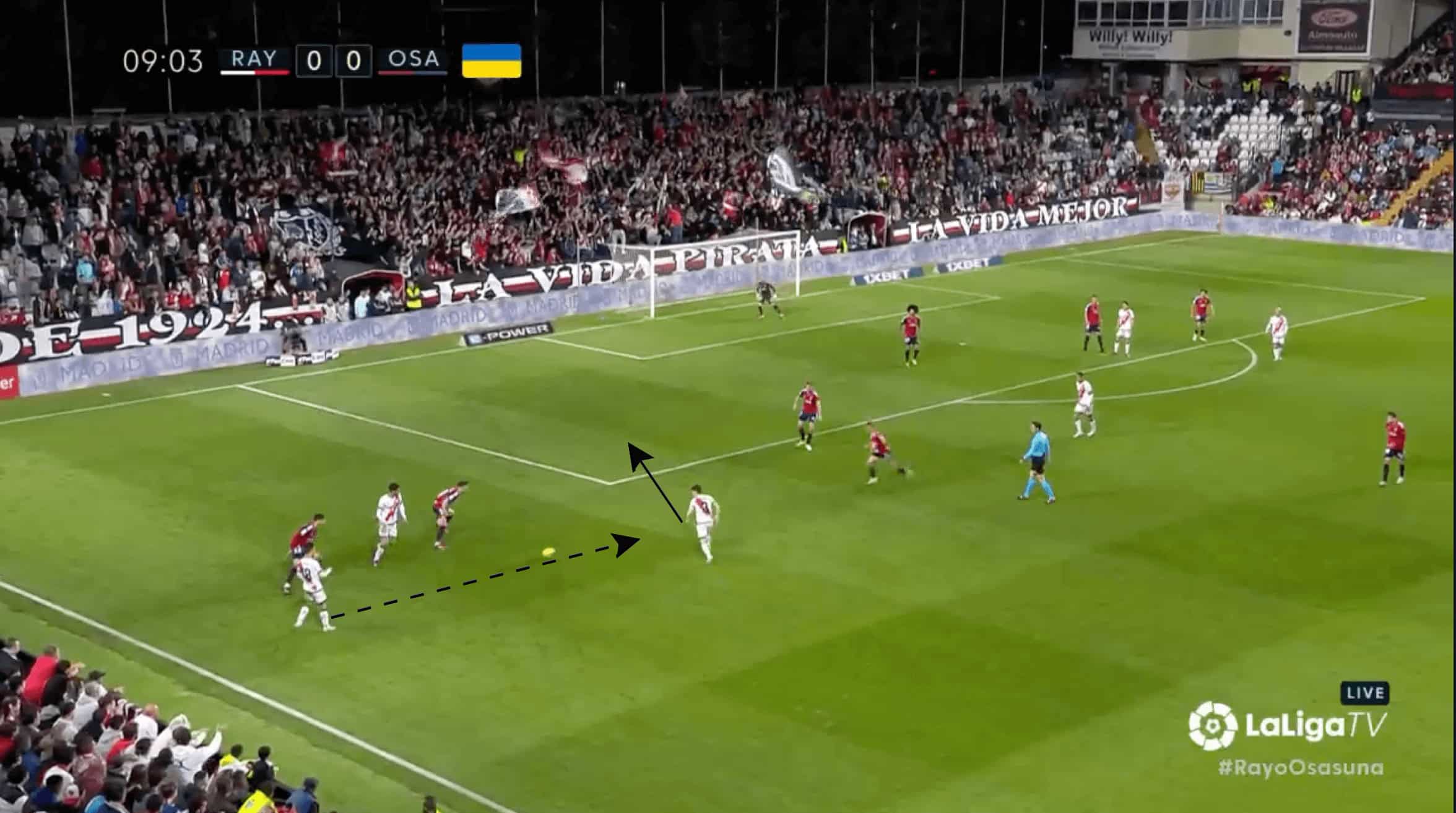 This method of playing the ball in behind to Álvaro Garcí has the potential of creating two beneficial situations for Vallecano.