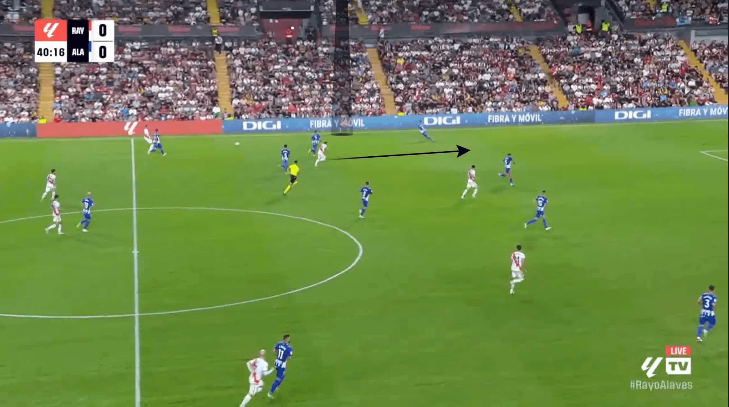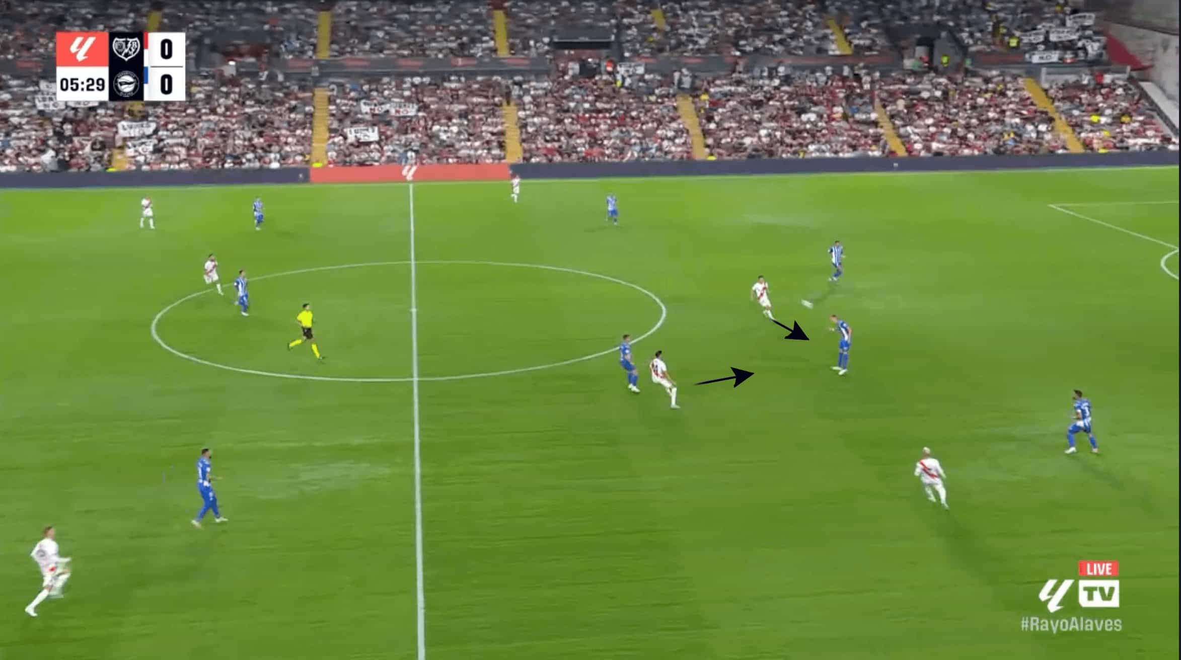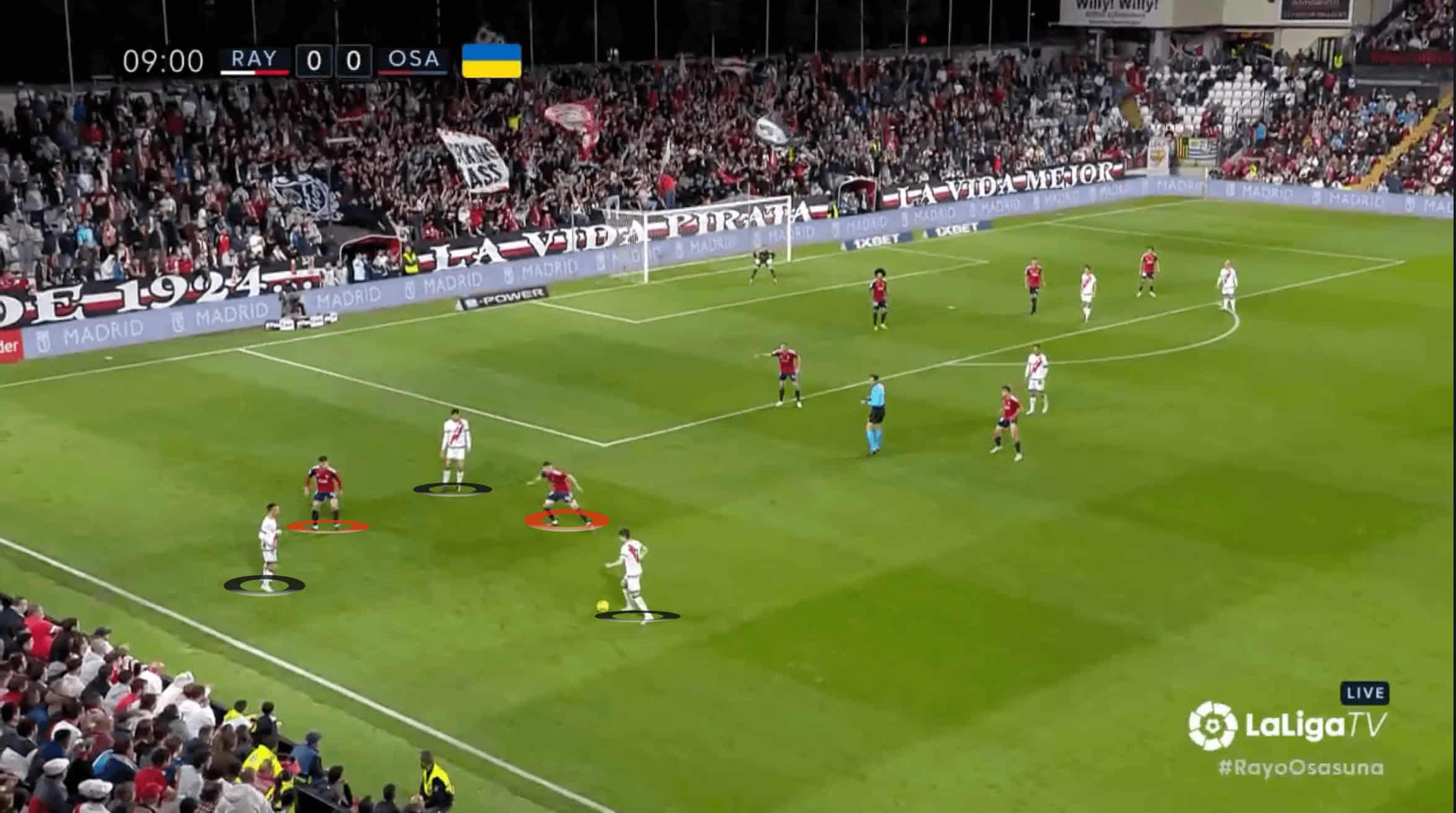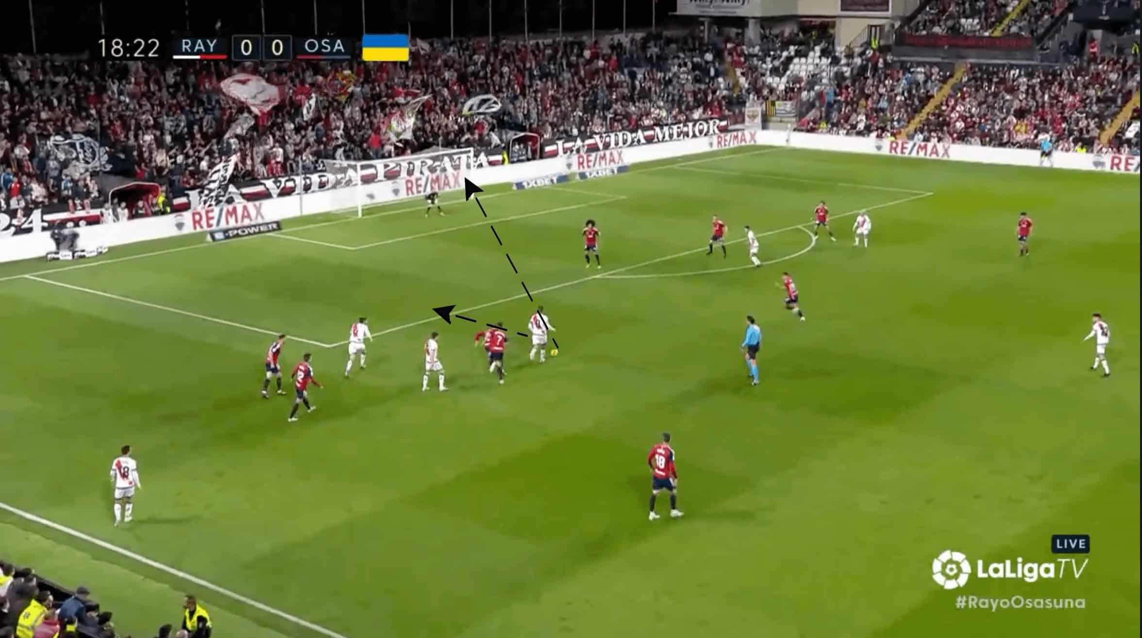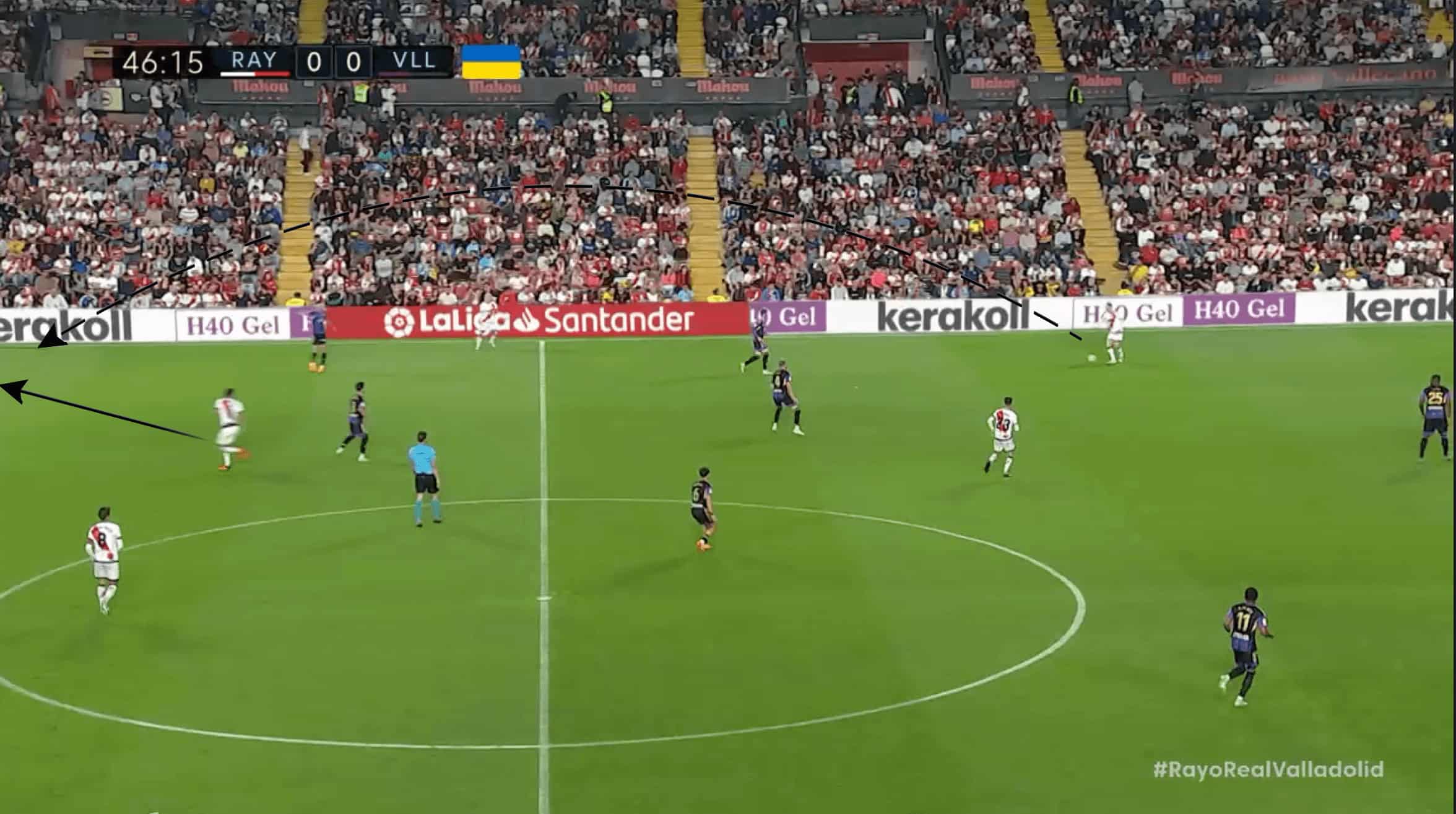 Although capable of creating good supporting angles and utilising this aspect and space to progress the ball, Vallecano under Iraola coaching style did not try and do this even when they had opportunities to do so.