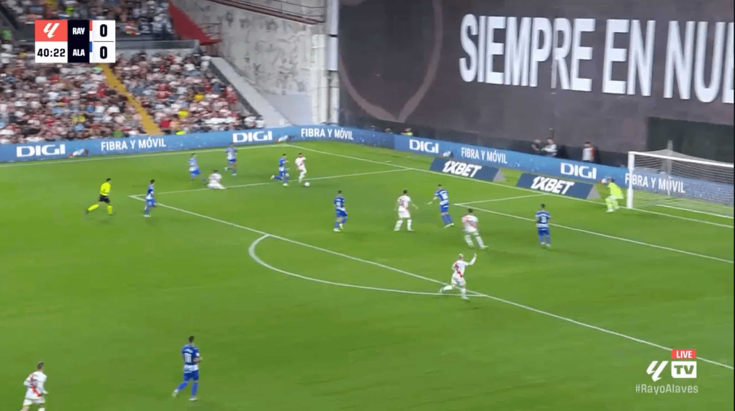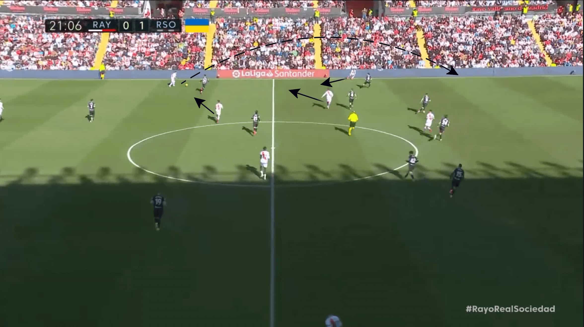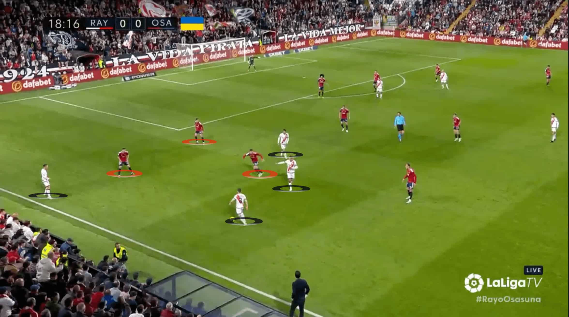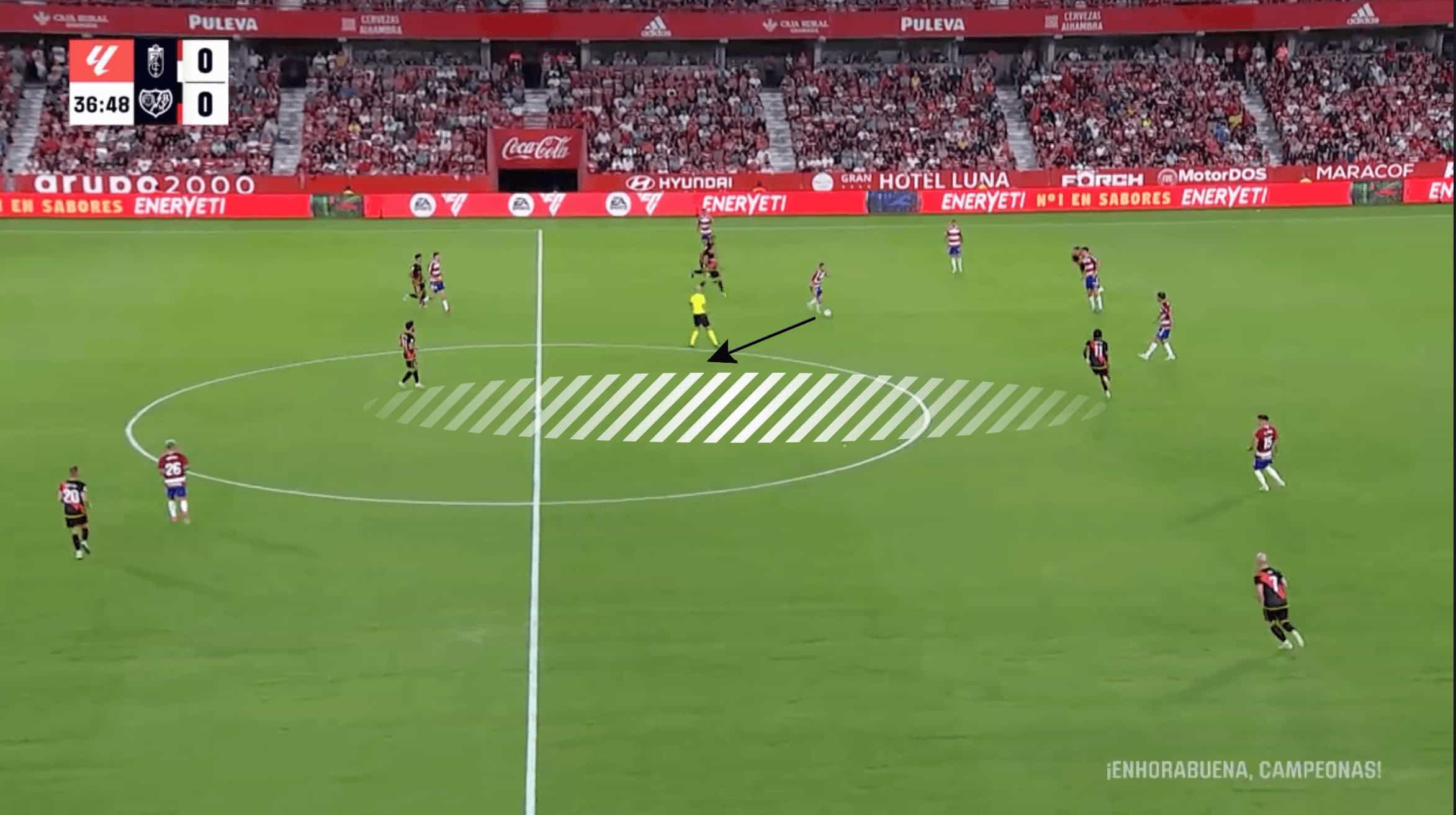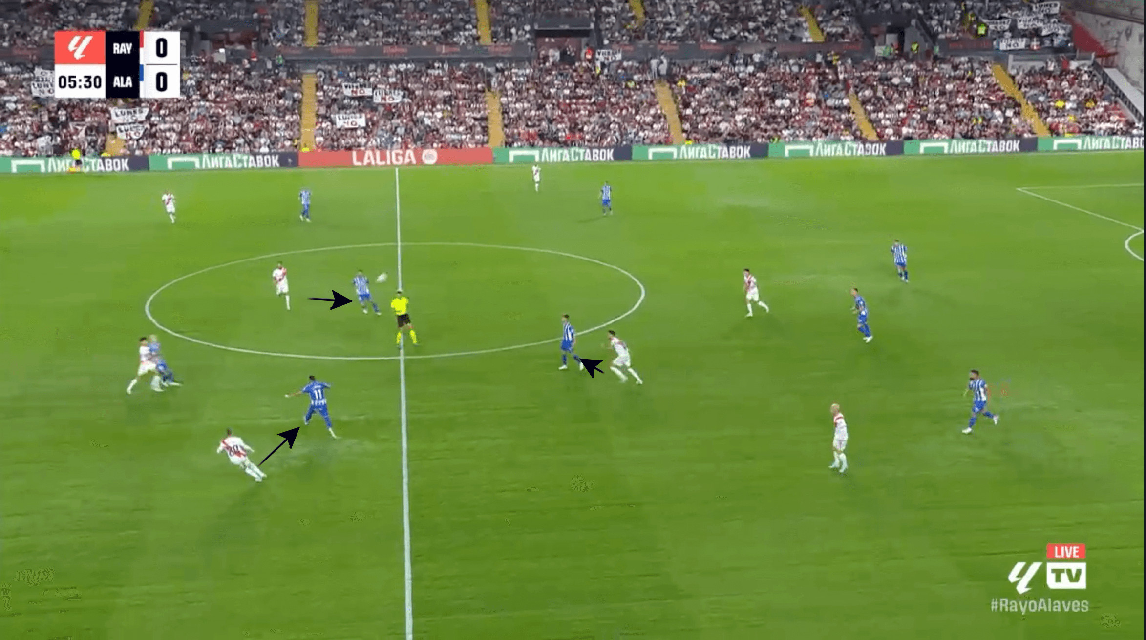 Although capable of creating good supporting angles and utilising this aspect and space to progress the ball, Vallecano under Iraola coaching style did not try and do this even when they had opportunities to do so.