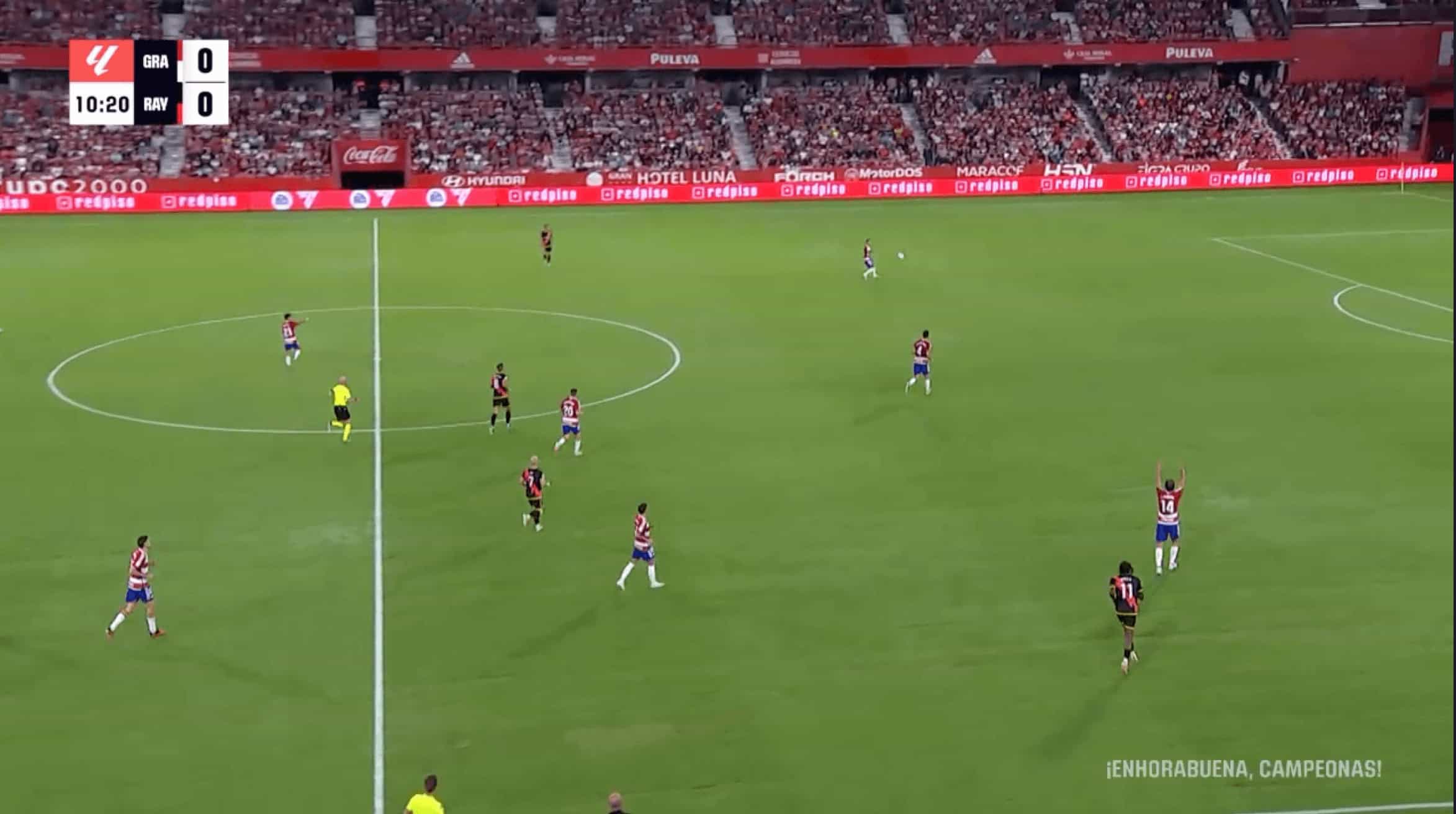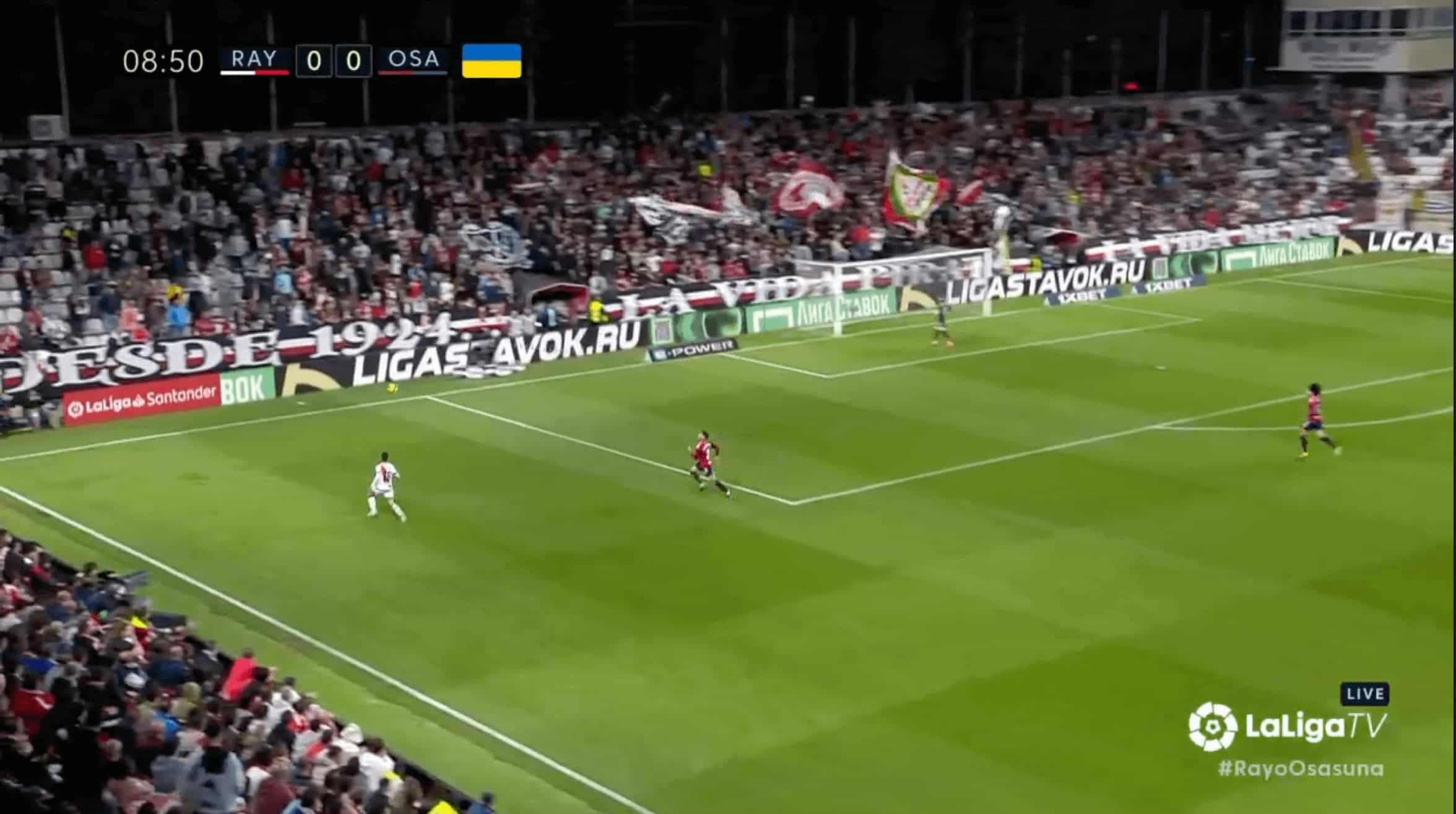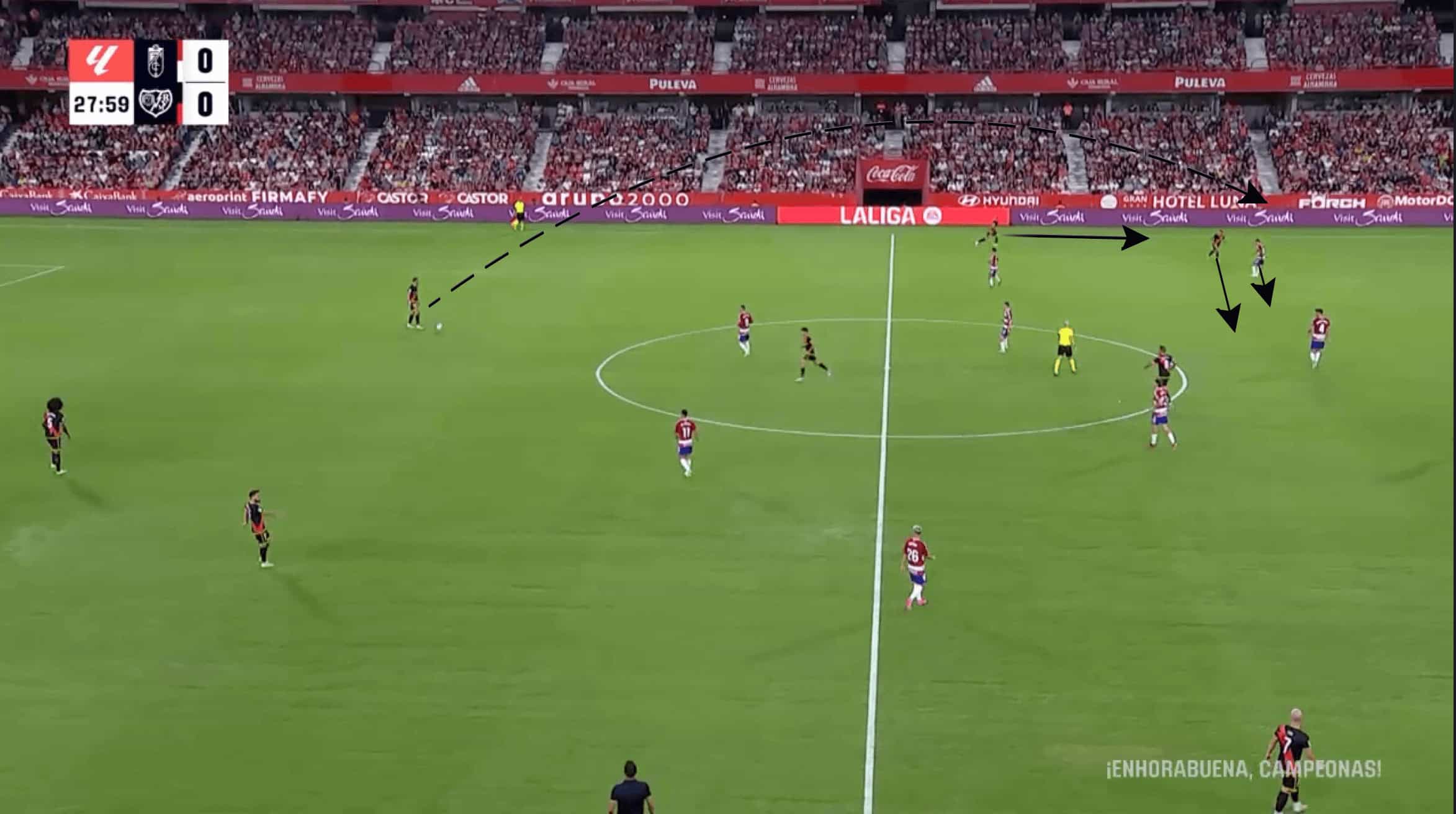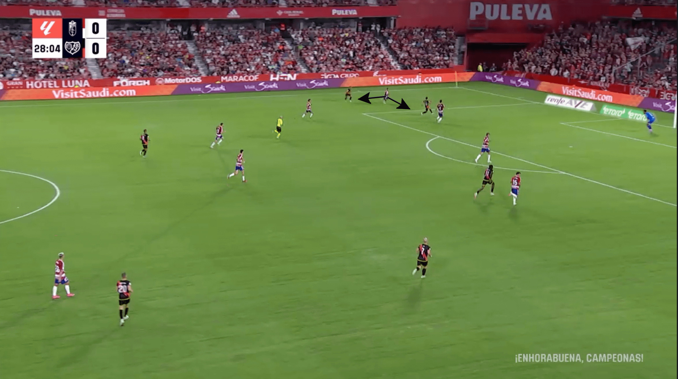 Once again, Vallecano could utilise the space well and continually move to create even more space for others and create good passing angles, allowing them to combine and exploit the holes in the opposition’s defence.