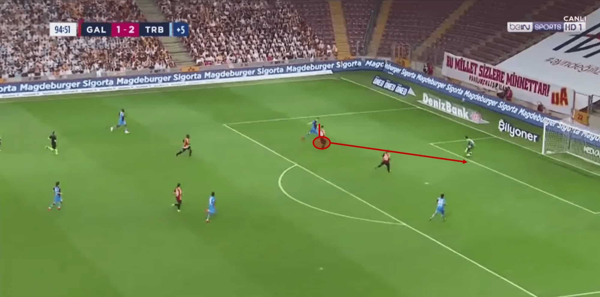 His ability to isolate and create space for his teammates is a key feature of his game. By drawing focus away from his teammates and onto himself, the forward backs himself to get out of tight situations due to his superior size and strength to make space. So far this season, this part of his skill set has been used to great effect, helping to unlock defences that play a high line with a good level of success.
