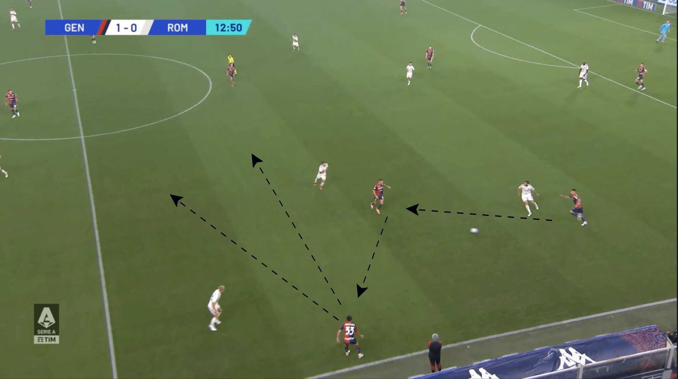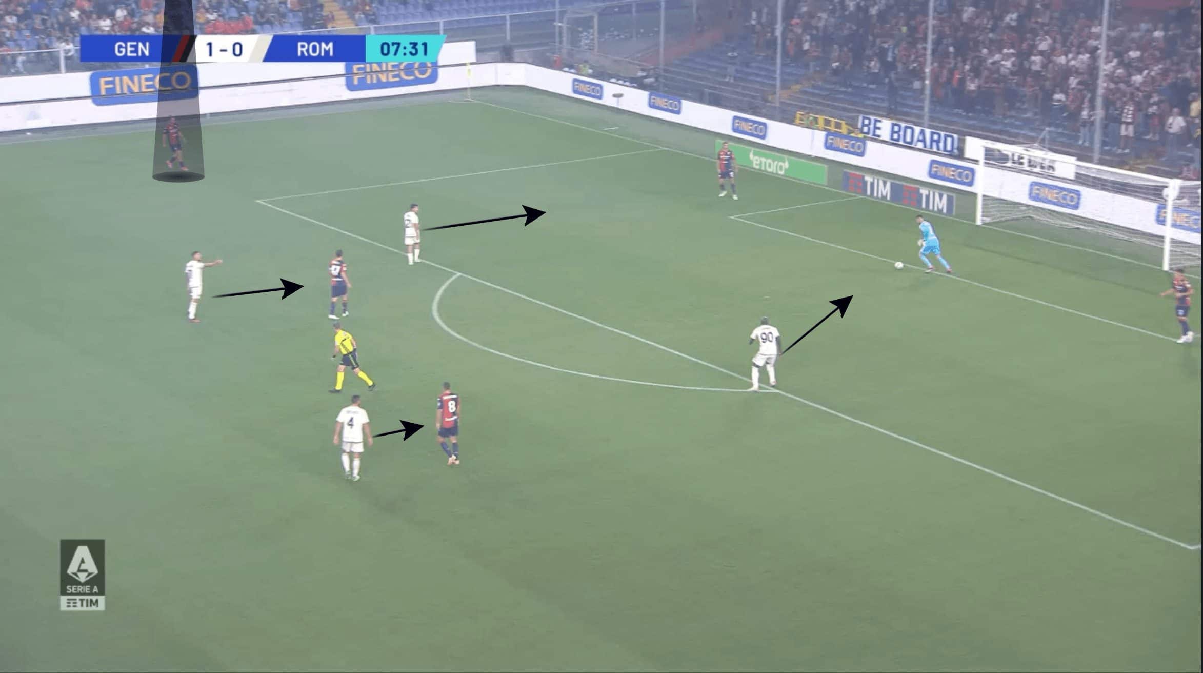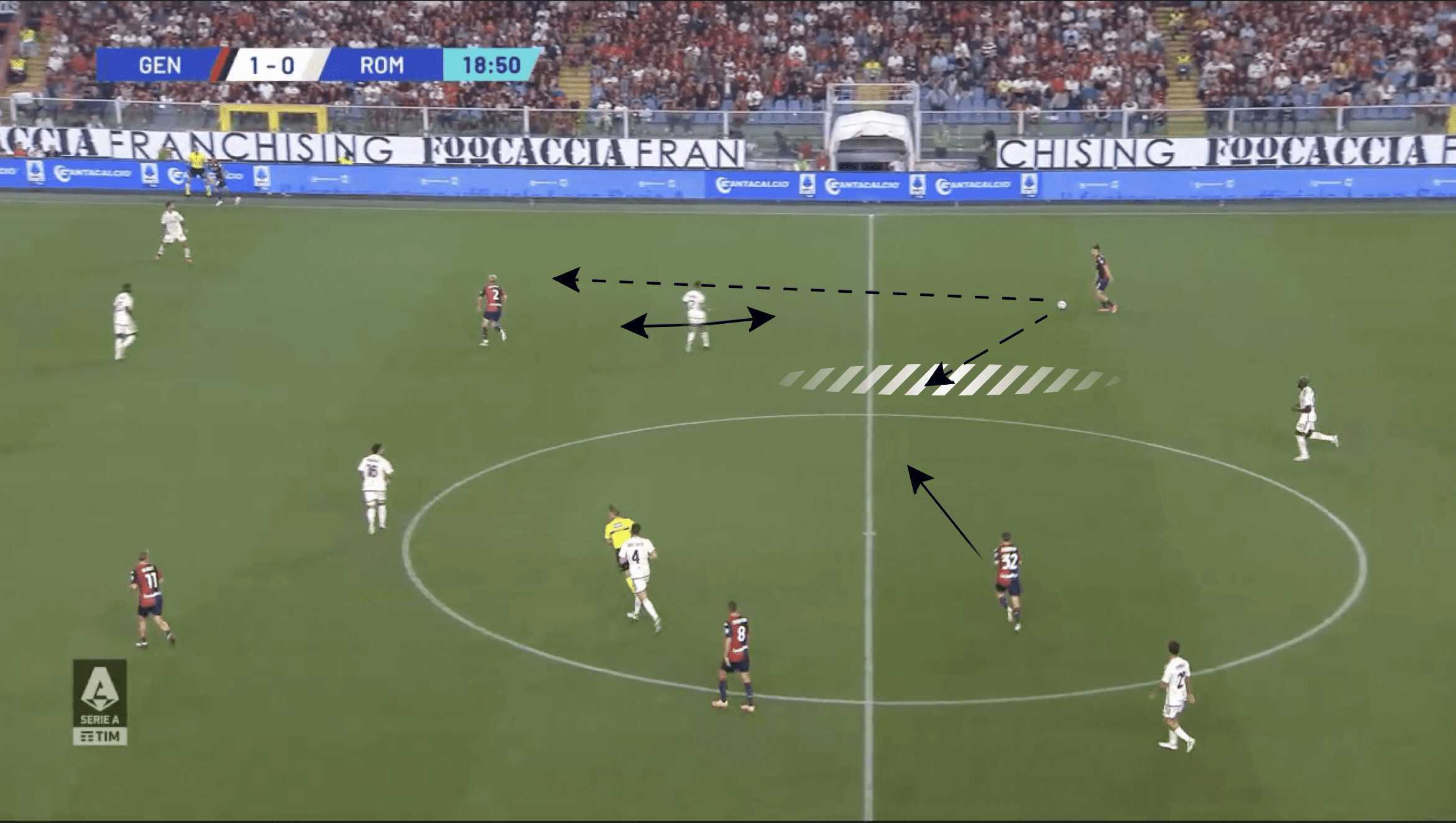 As a result, Genoa could easily progress the ball past the first two lines of Roma’s defence.