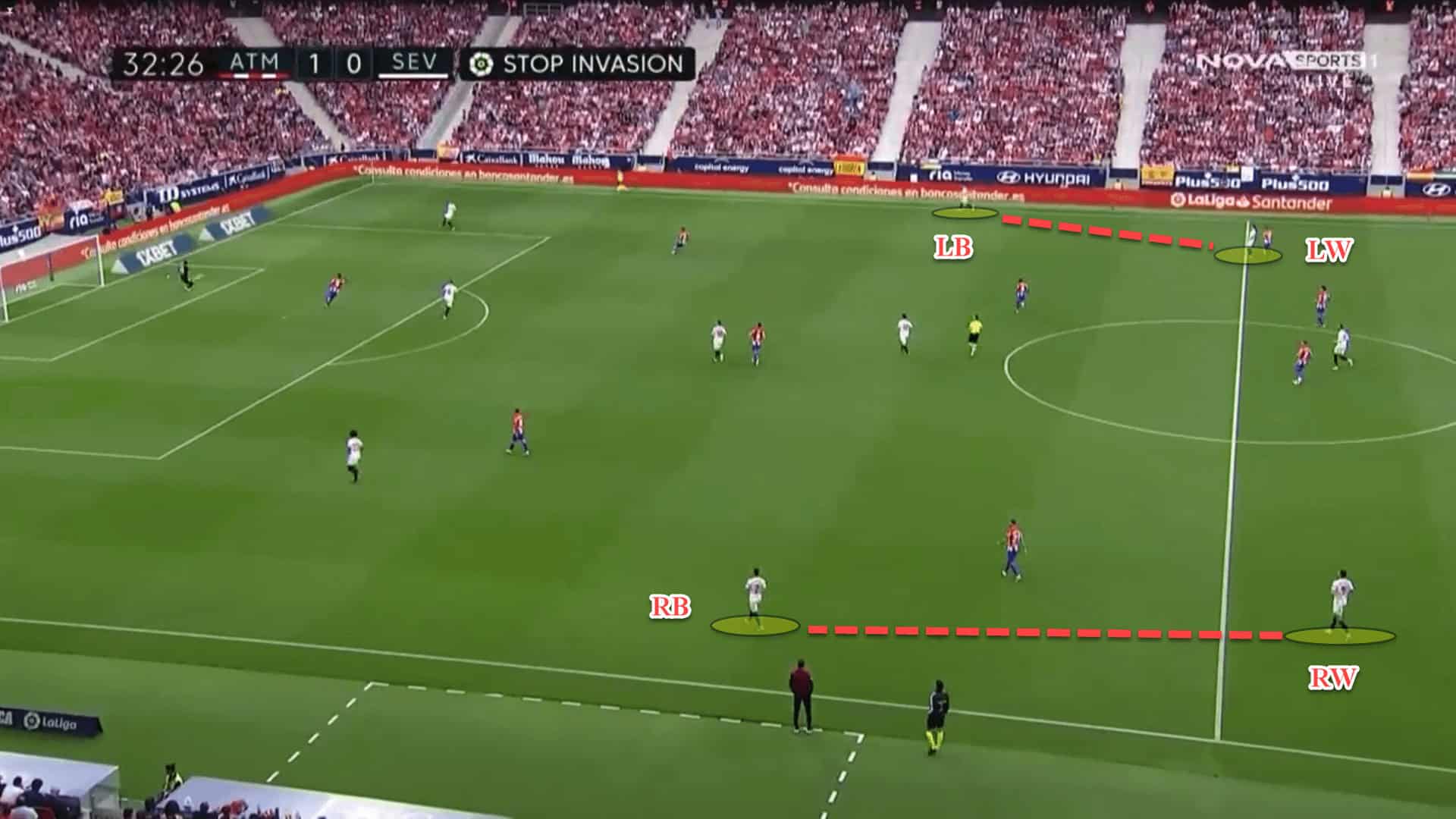 Sevilla’s wingers position themselves very wide, often to combine with others on the flanks during wide overloads, instead of coming inside between the lines.