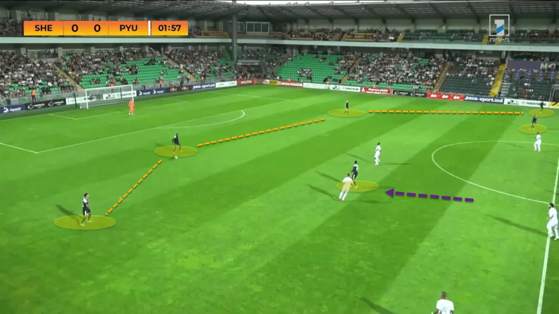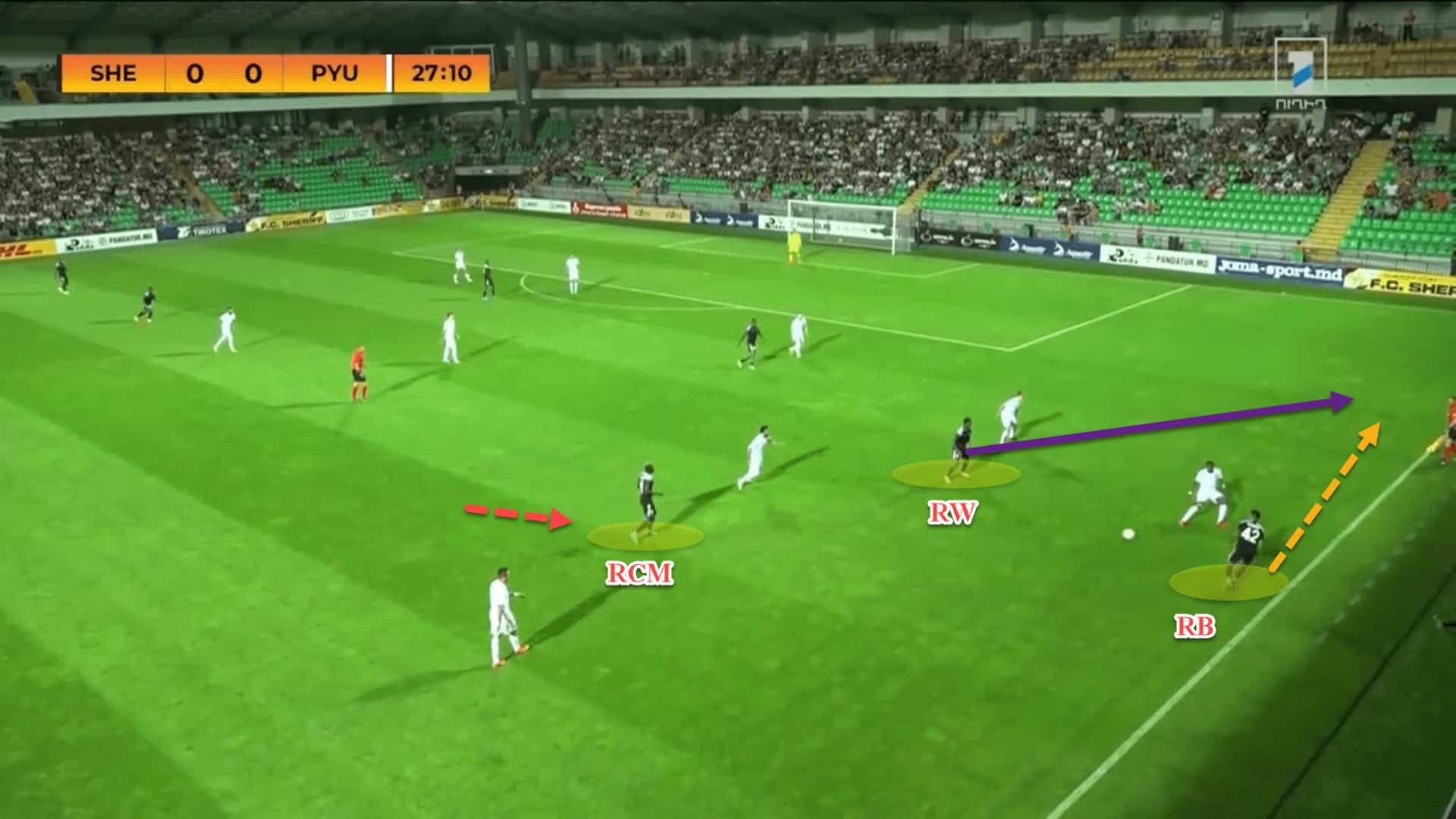 Last season, Vernydub was adamant about deploying the 4-2-3-1, giving Sheriff more defensive balance in the middle of the park. This conventional system was used in 58 percent of the Moldovan champions’ games.