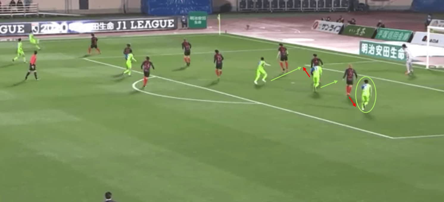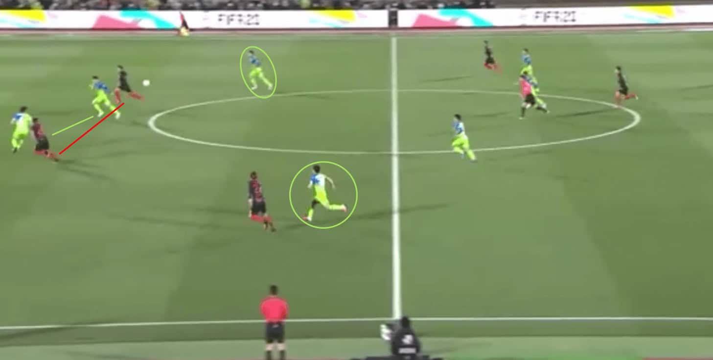 However, their speed on the transition is far too slow when moving back into their out-of-possession shape, although perhaps that is a trade-off for Ukishima where he gains attacking potency but loses something in defensive stability.