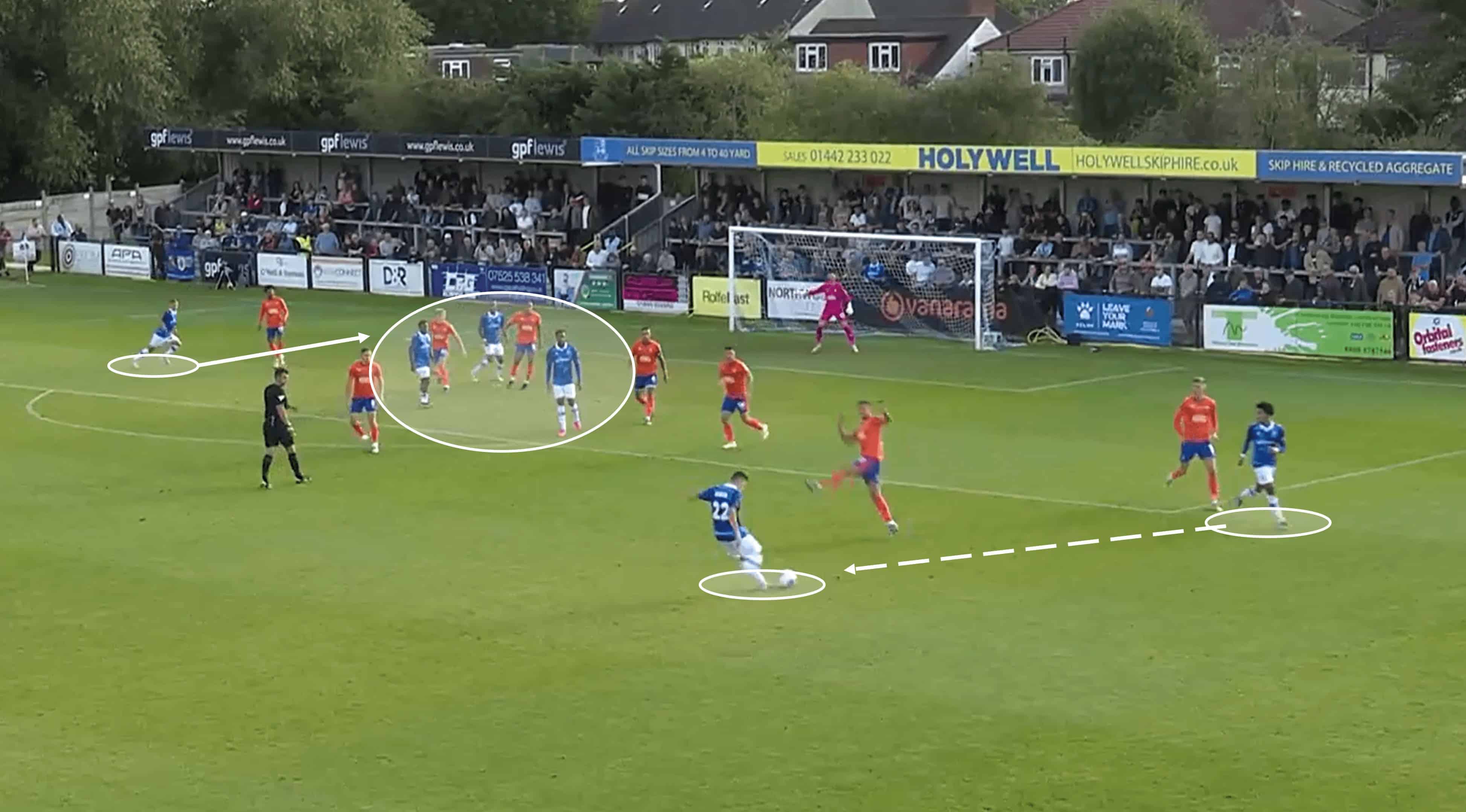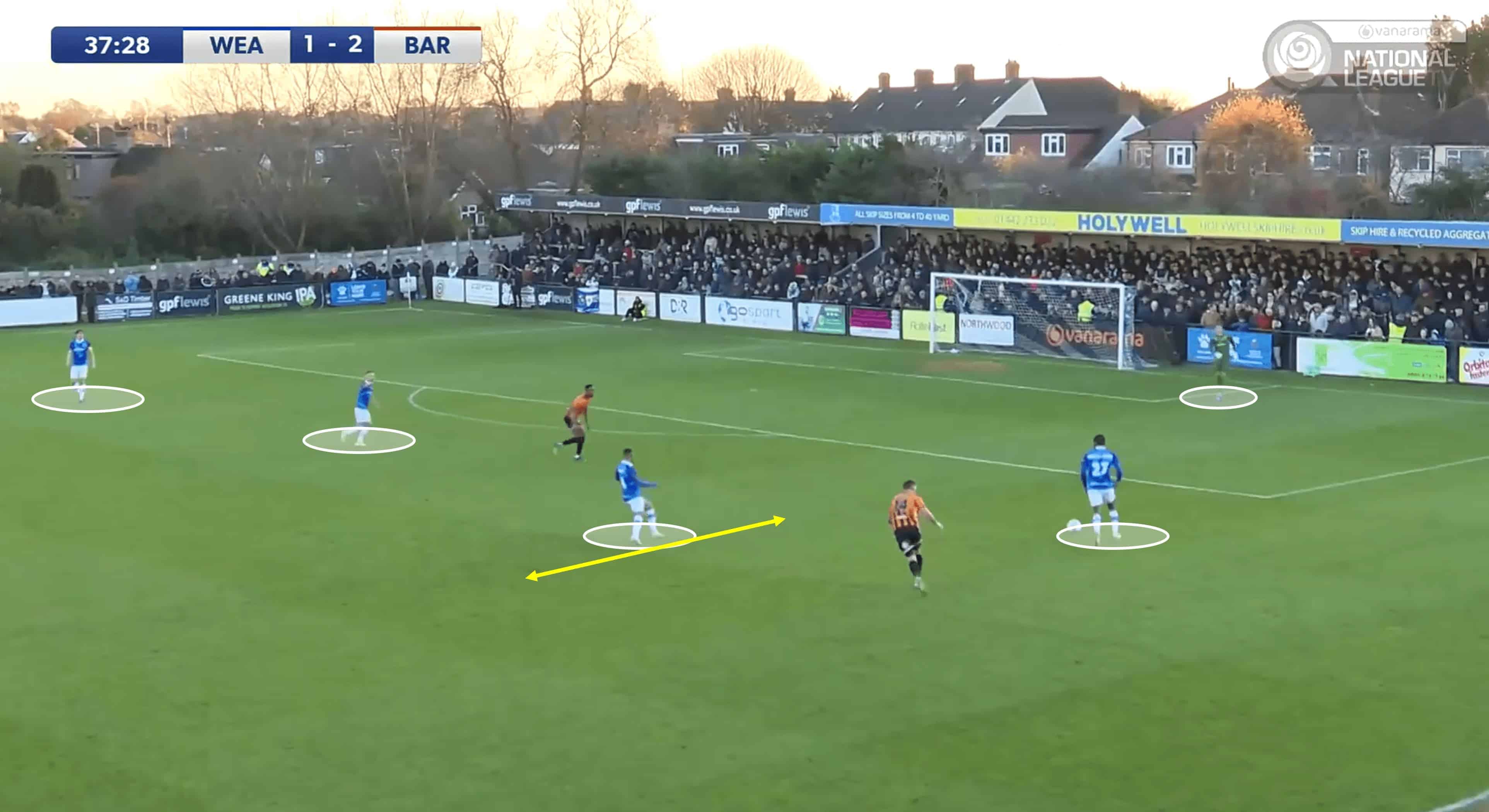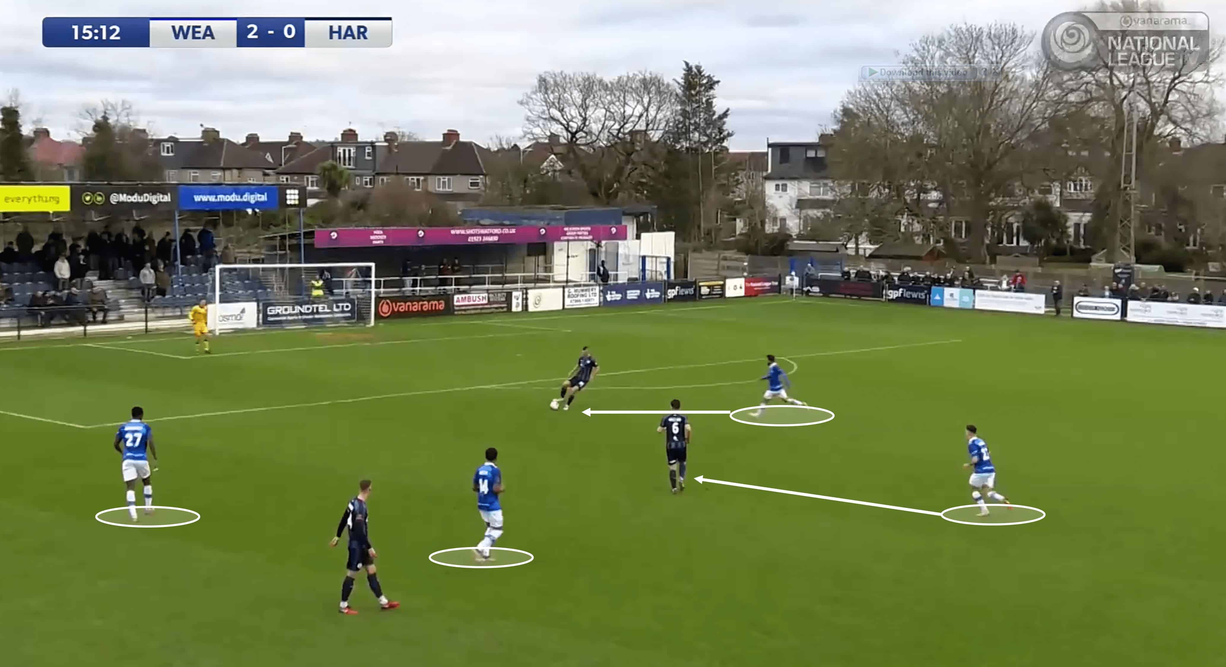 For context, the midfield were in this high position after a Wealdstone CB sent the ball long, with the ball eventually finding its way to where you see it above.