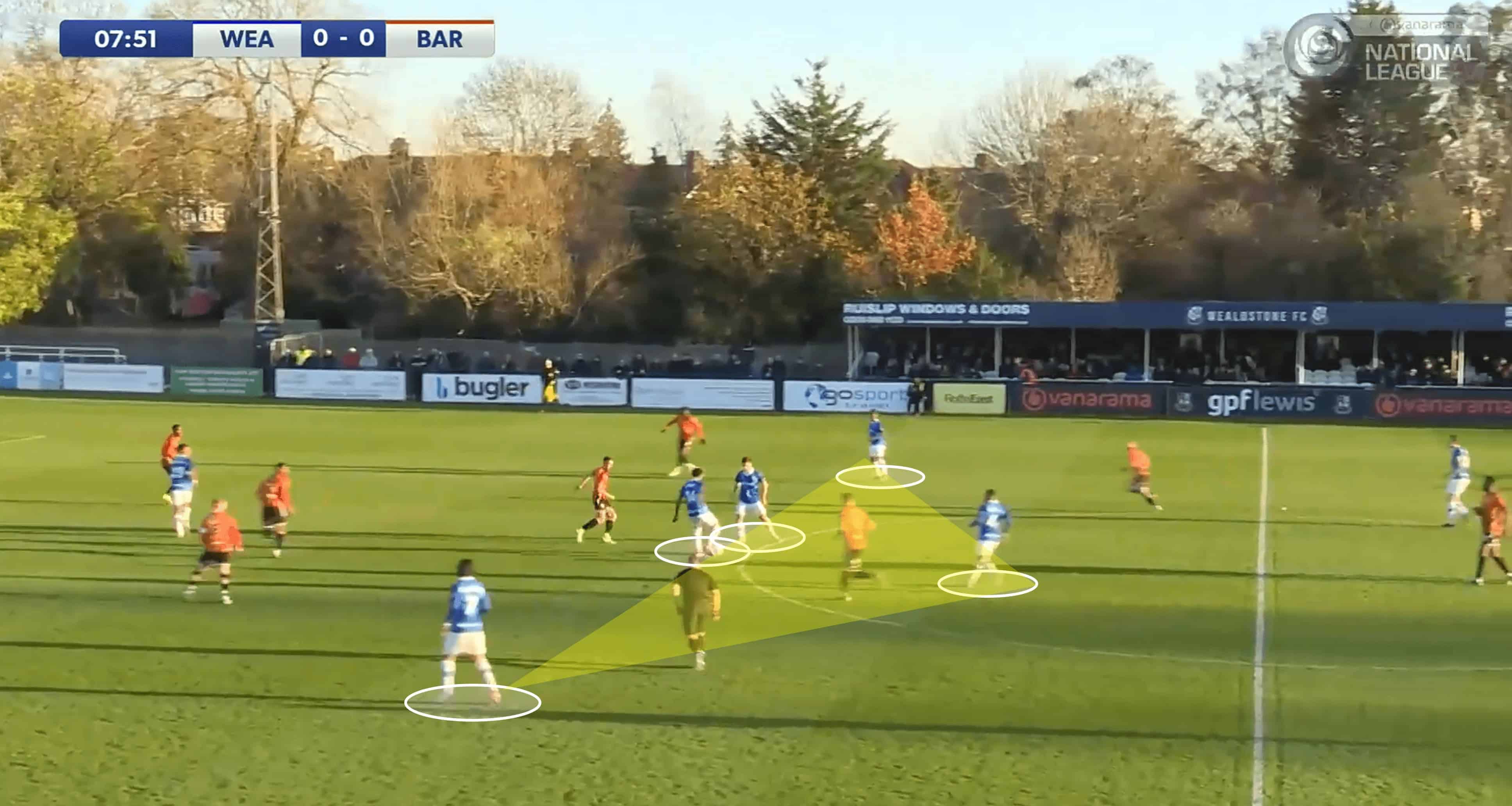 Of course, the CB and even the GK act as options to recycle the possession if Wealdstone want to play it safe and restart.